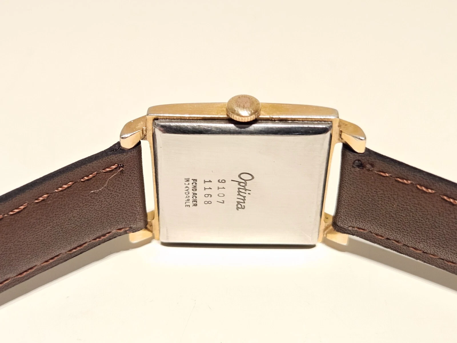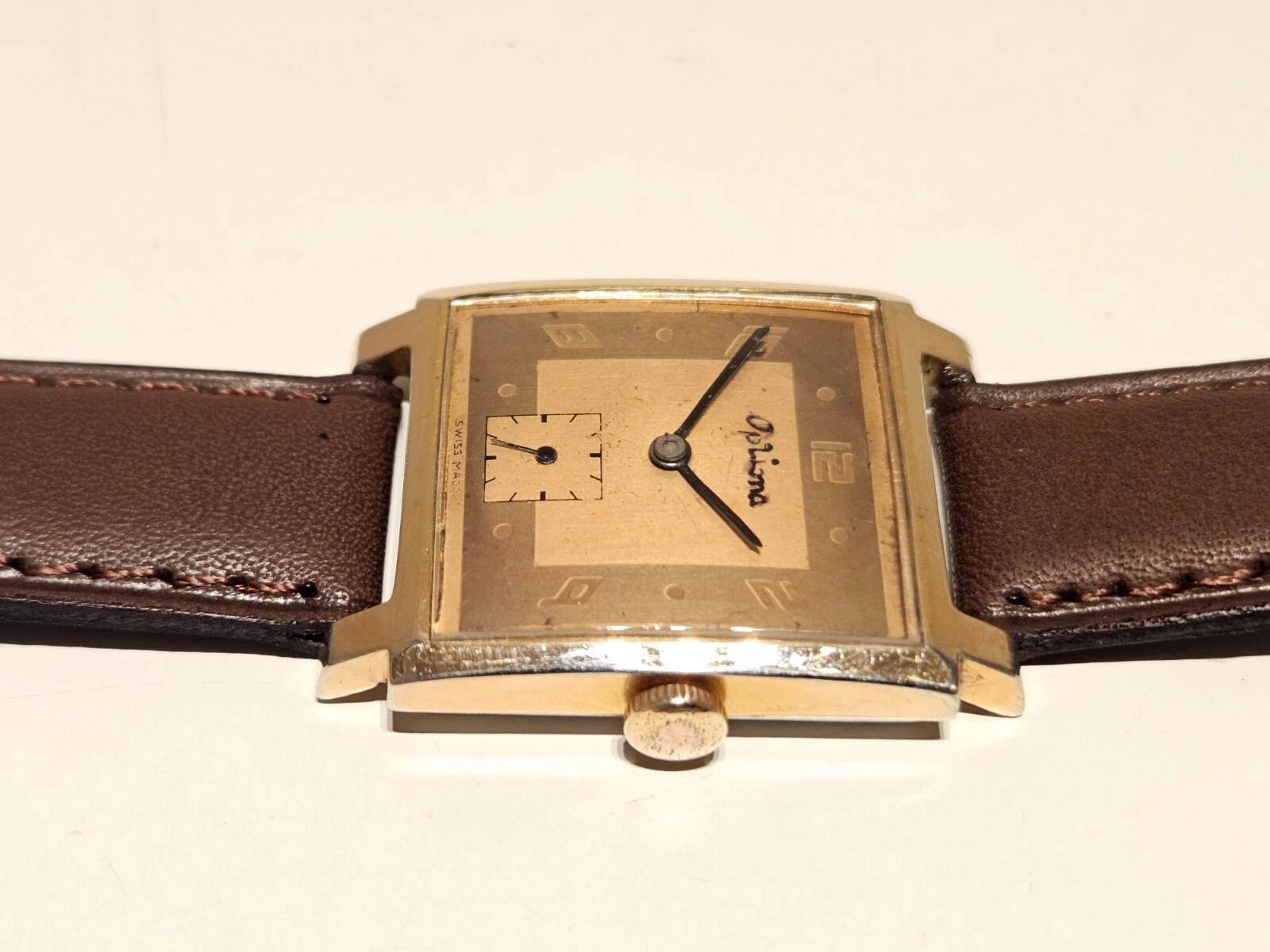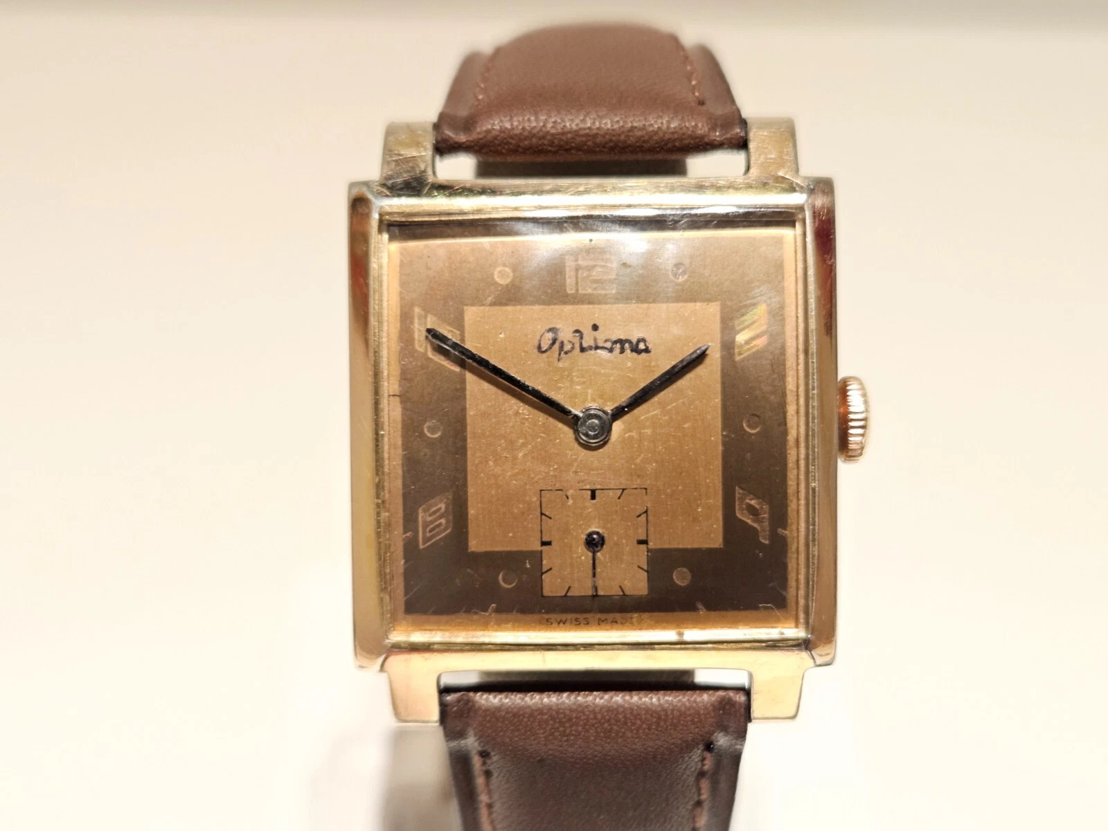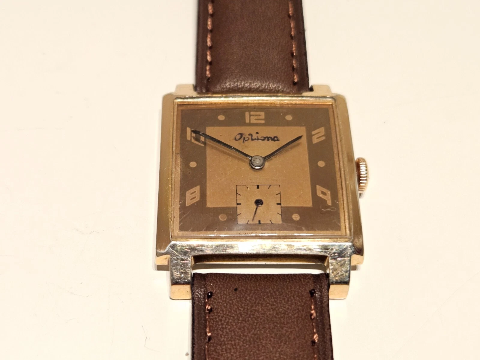 VINTAGE RARE WW2 SQUARE SWISS GOLD PLATED LUXURY MEN'S MECHANICAL WATCH "OPTIMA"