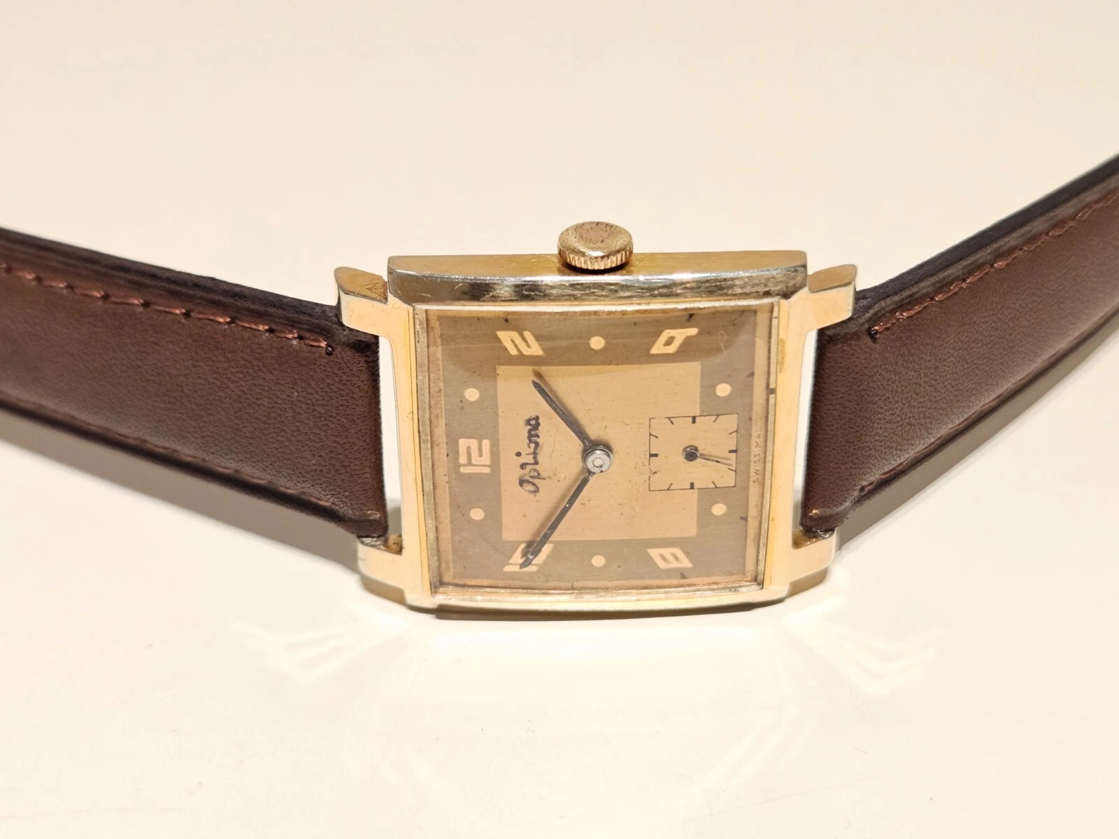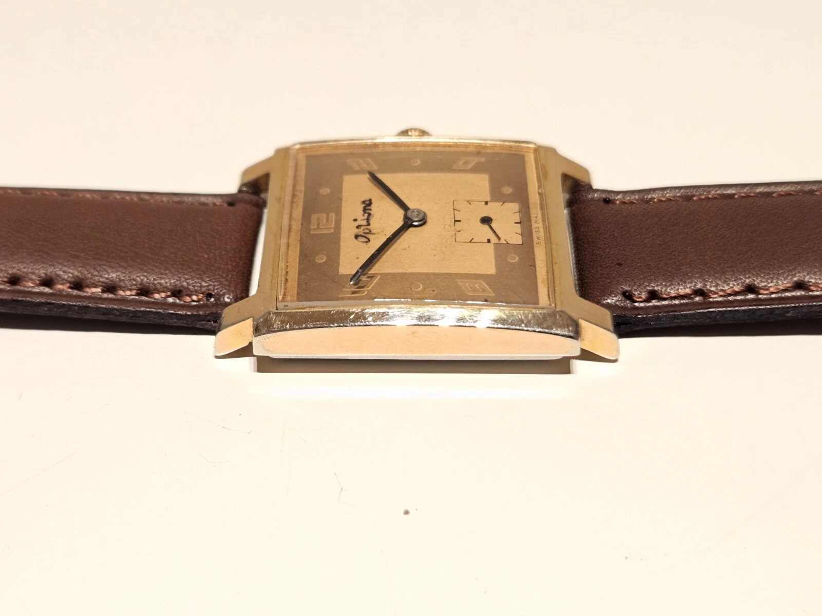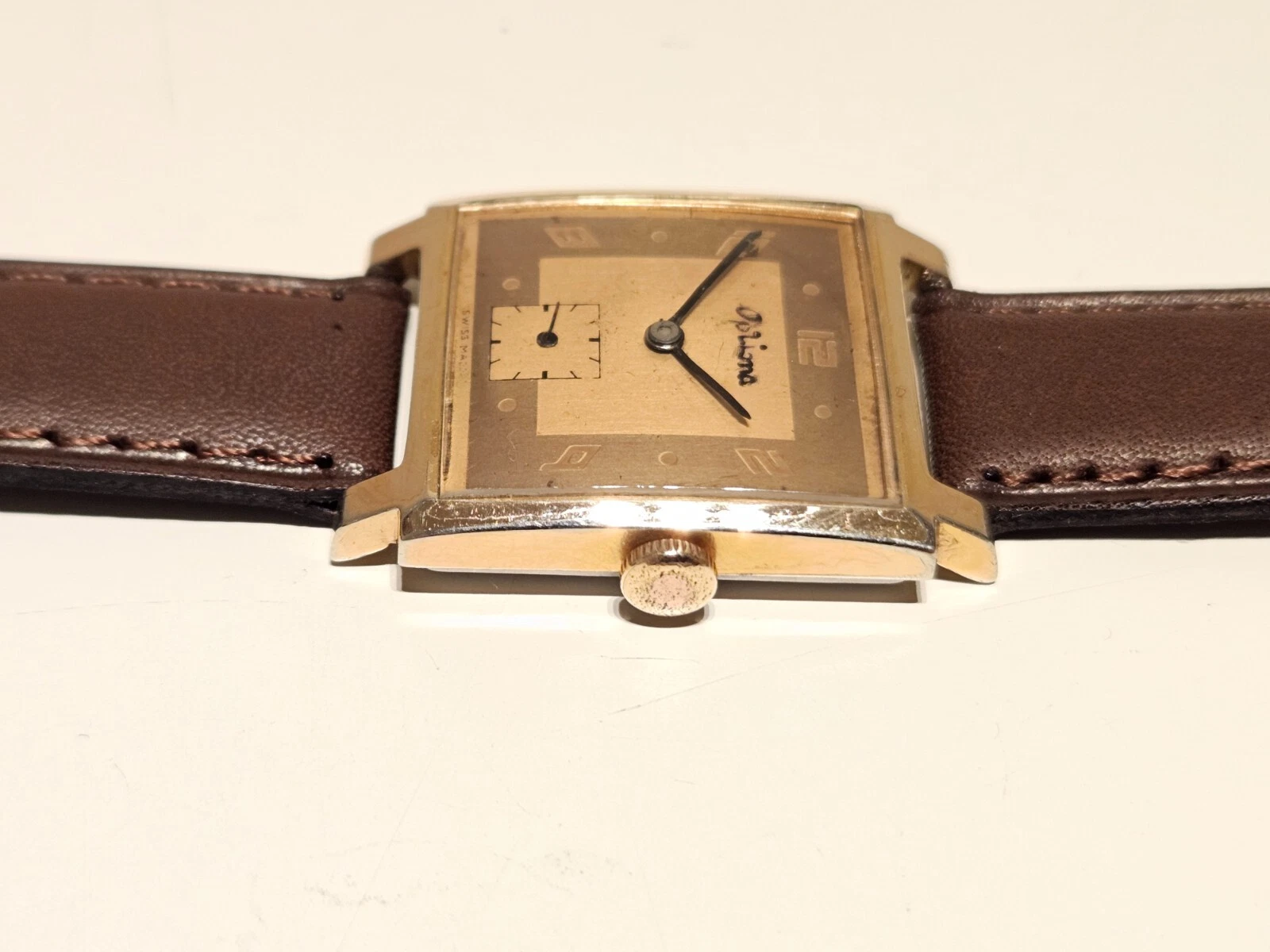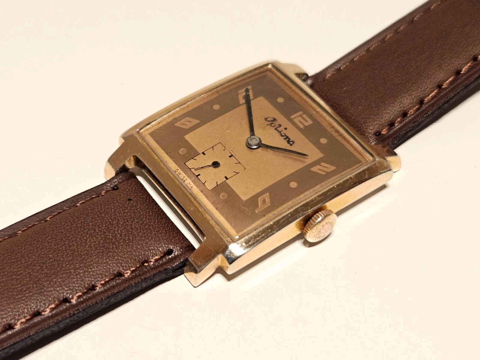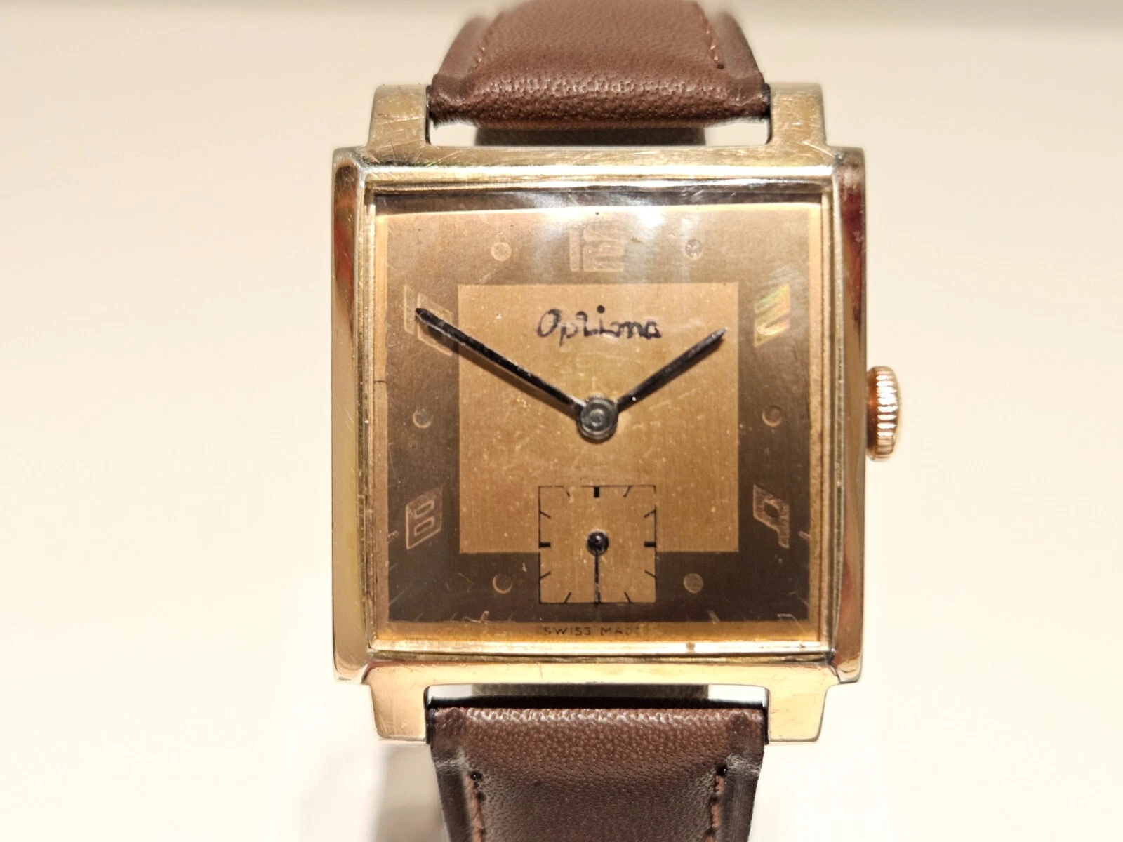 VINTAGE RARE WW2 SQUARE SWISS GOLD PLATED LUXURY MEN'S MECHANICAL WATCH "OPTIMA"
