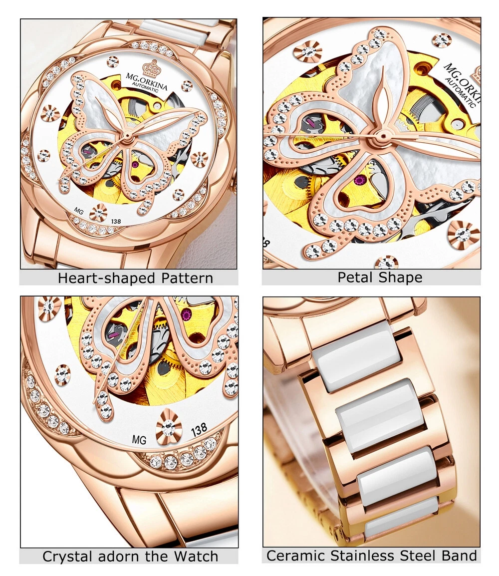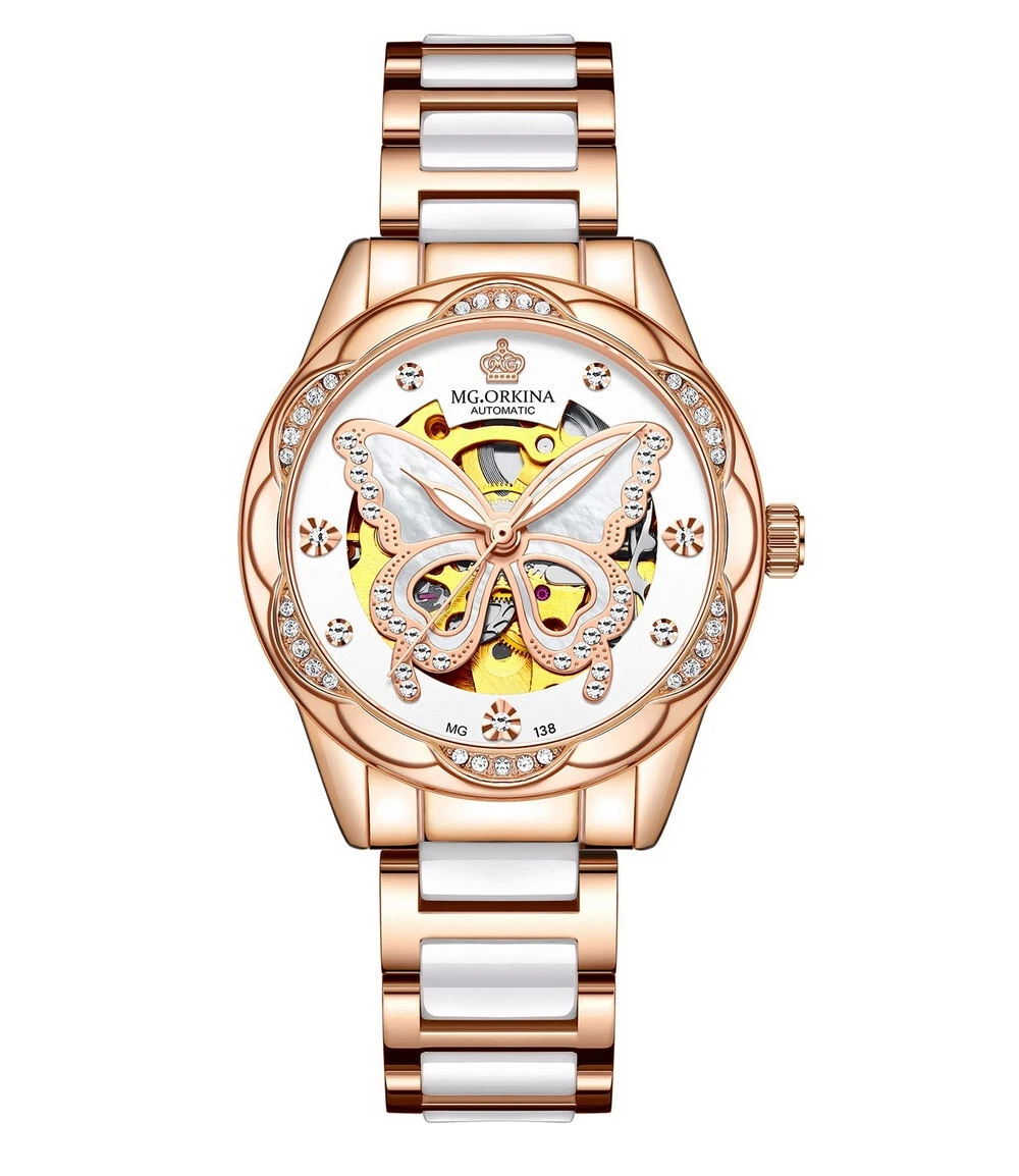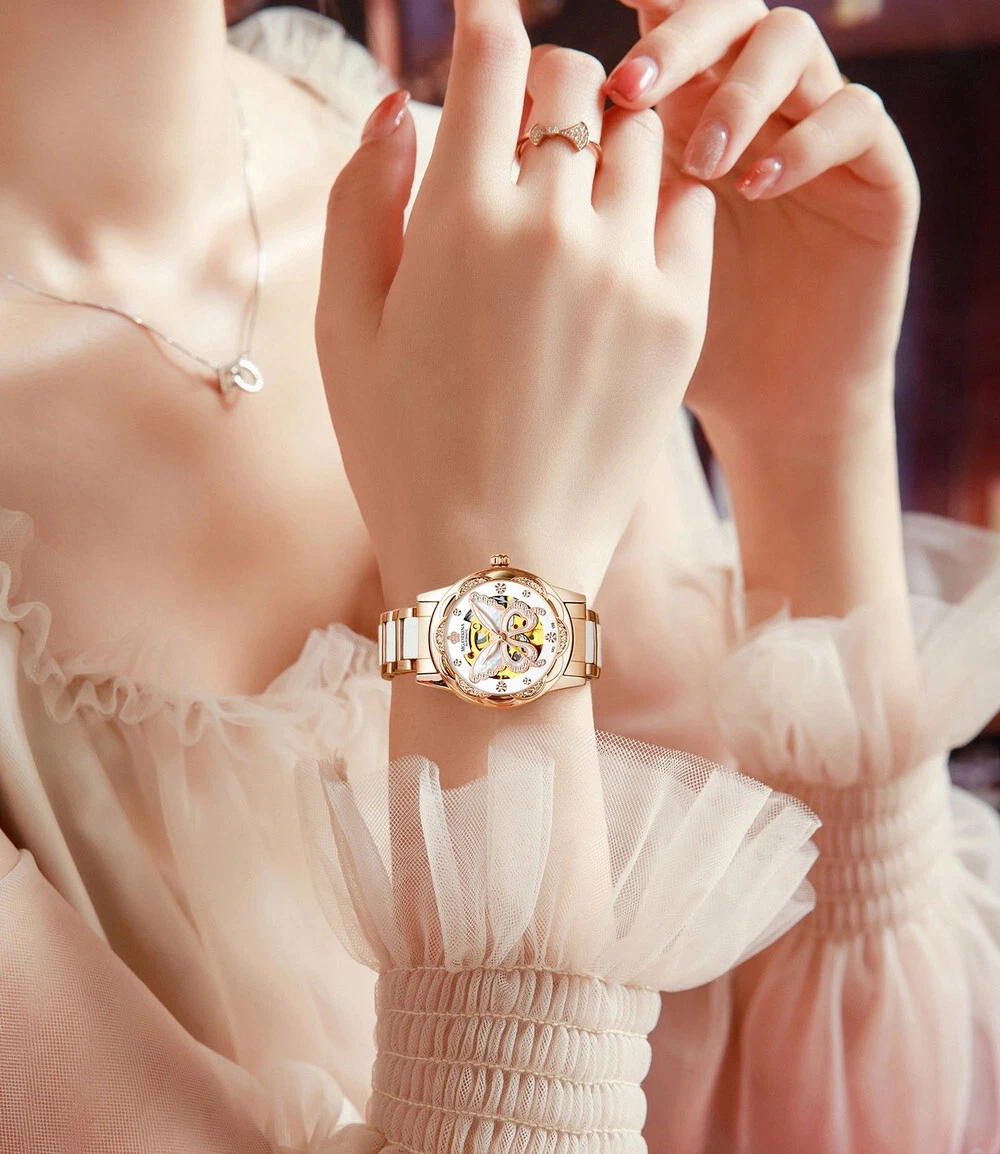 Women' s Mother of Pearl Dial Stone Marker Rose-gold Ceramic Mechanical Watch