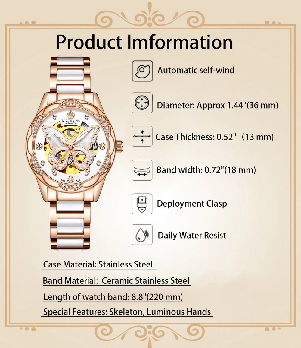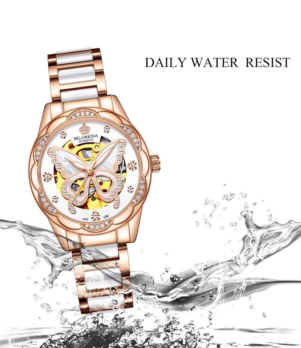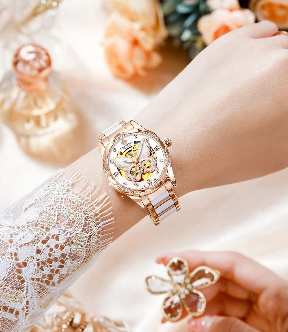 Women' s Mother of Pearl Dial Stone Marker Rose-gold Ceramic Mechanical Watch