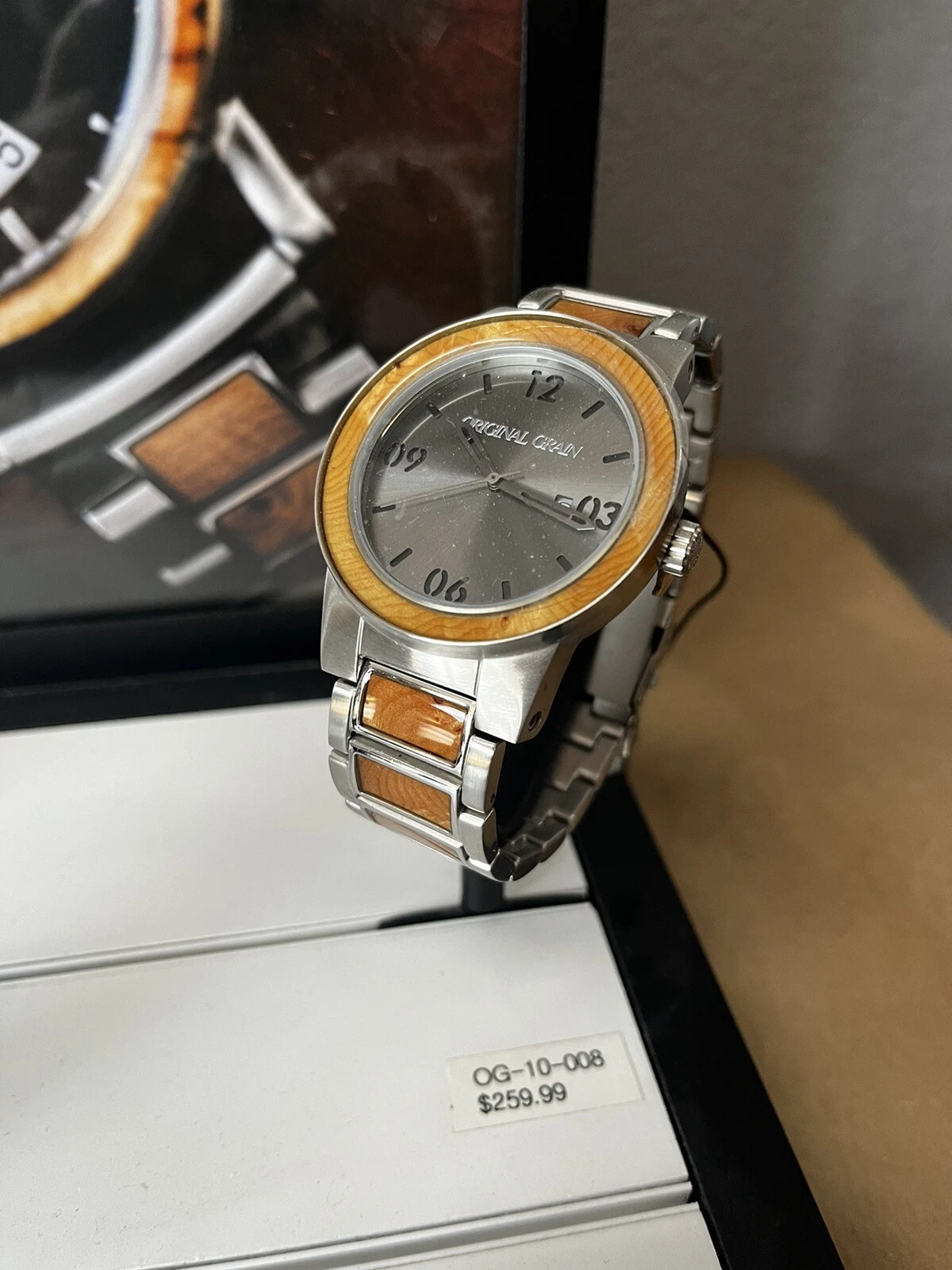 Original Grain Burlwood Barrel Black Dial Stainless Steel Men's Watch OG10008.