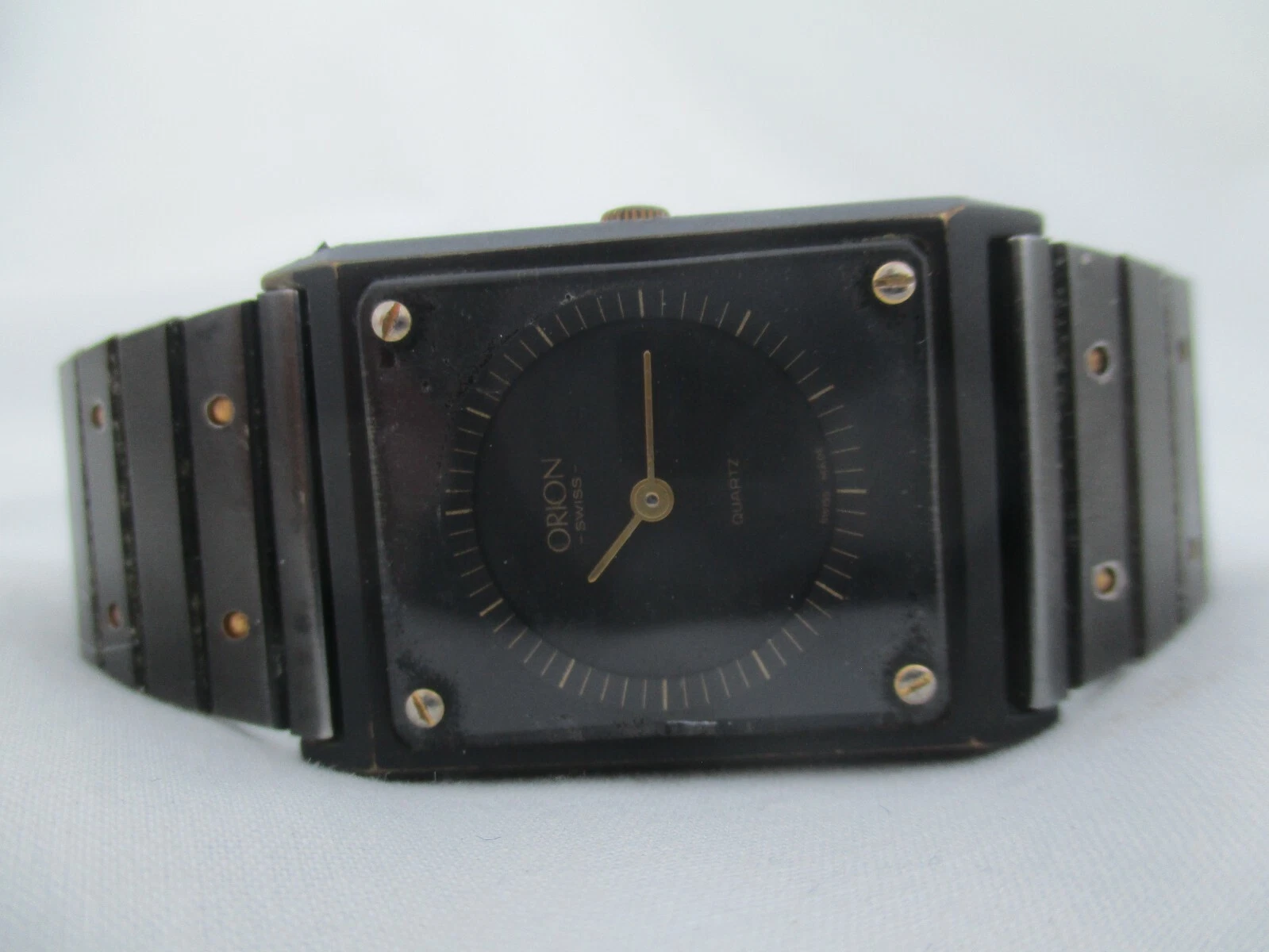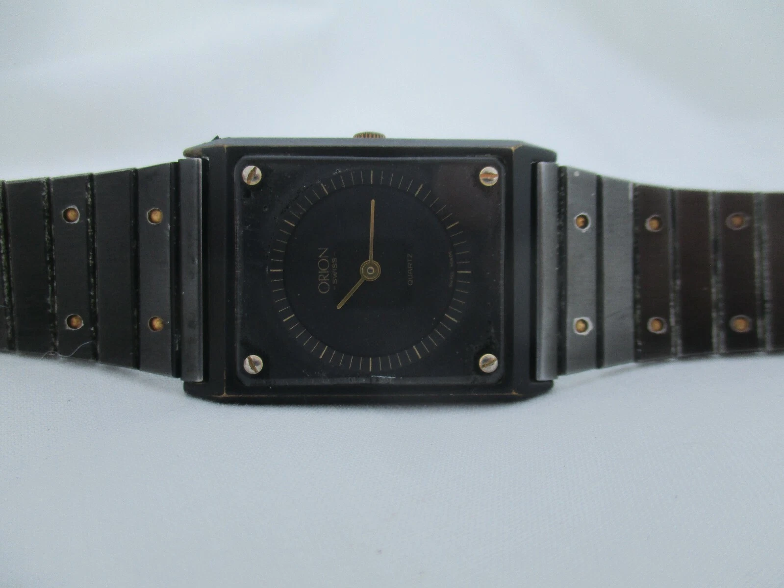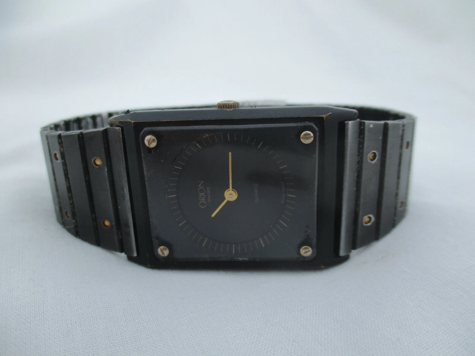 Orion Swiss Wristwatch Black & Gold Tone Stainless Steel Band Rectangular Face