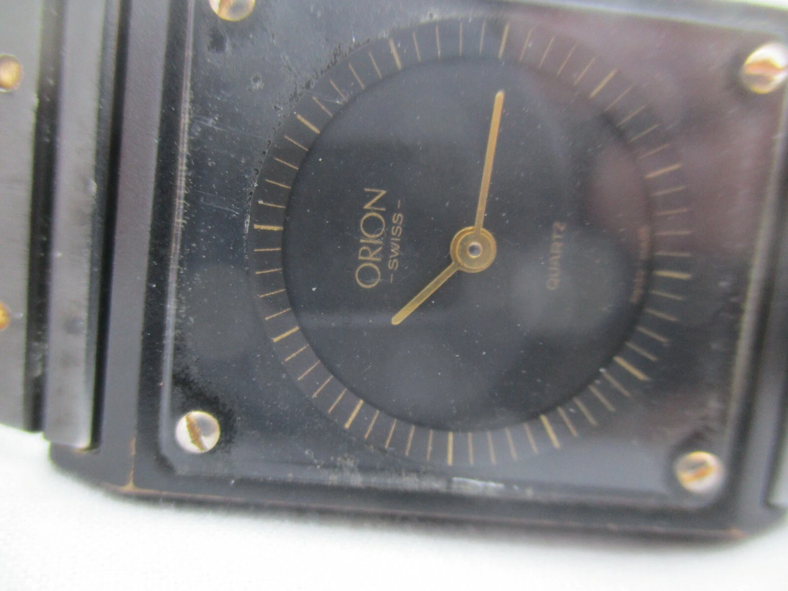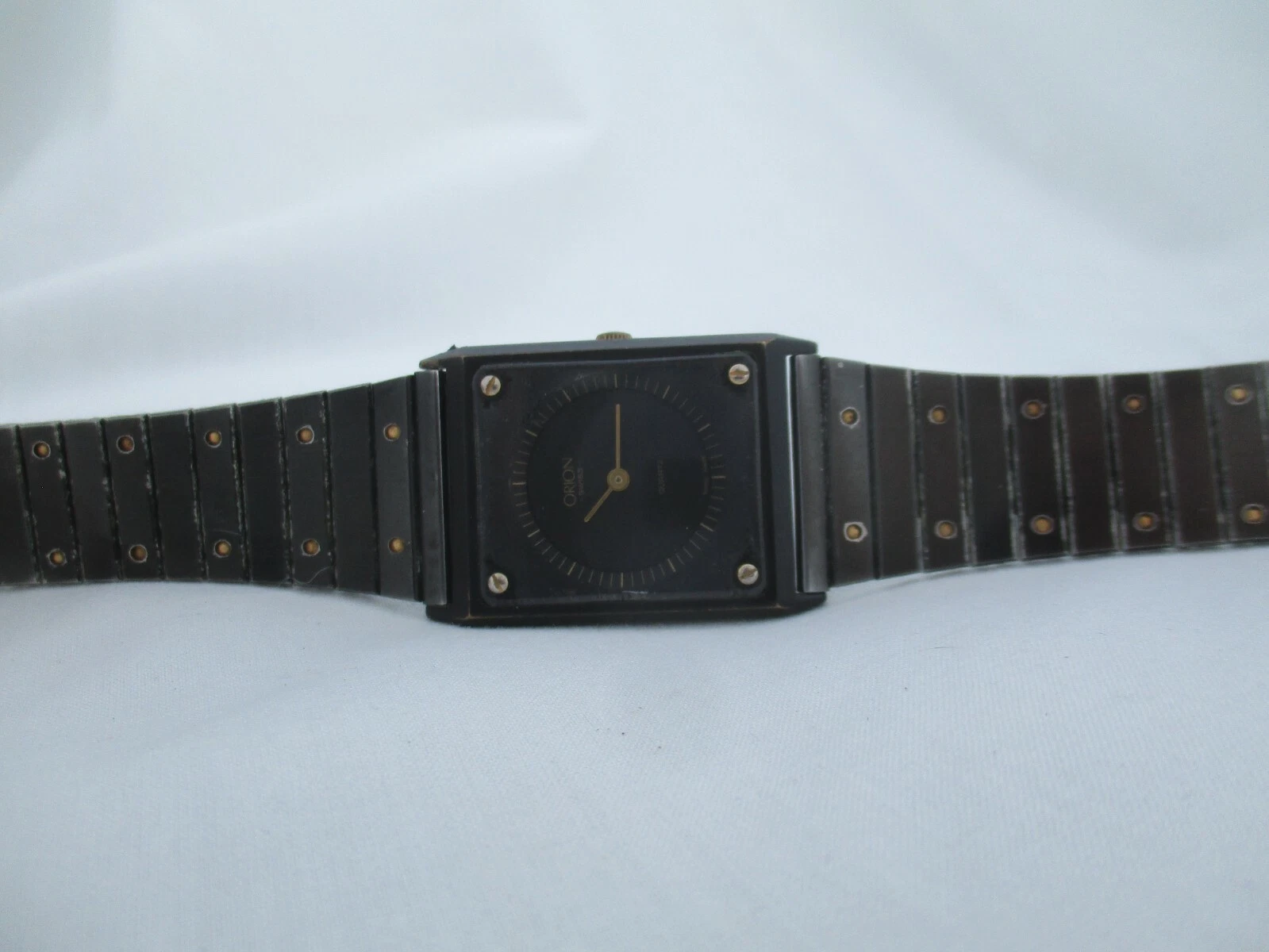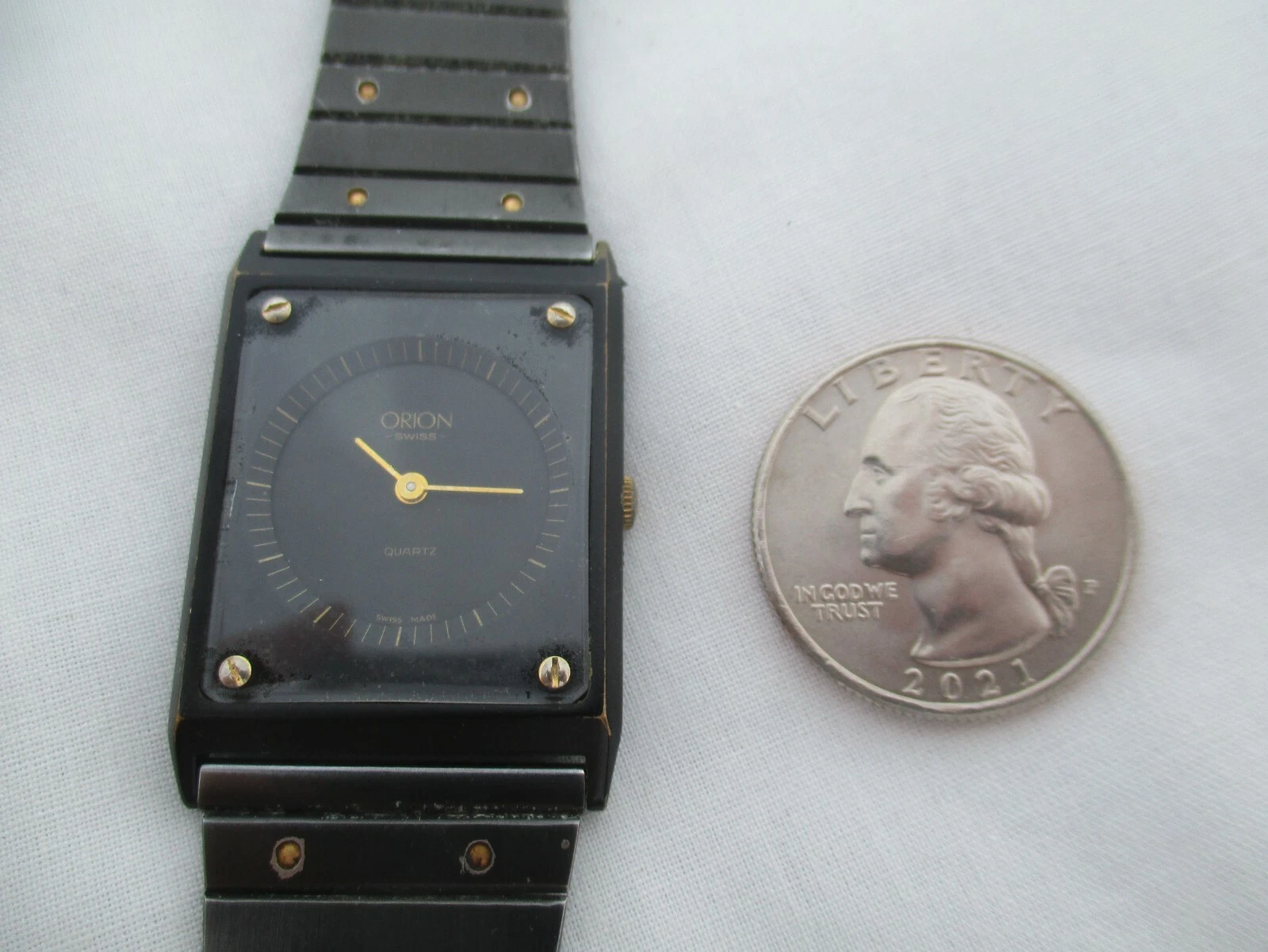 Orion Swiss Wristwatch Black & Gold Tone Stainless Steel Band Rectangular Face