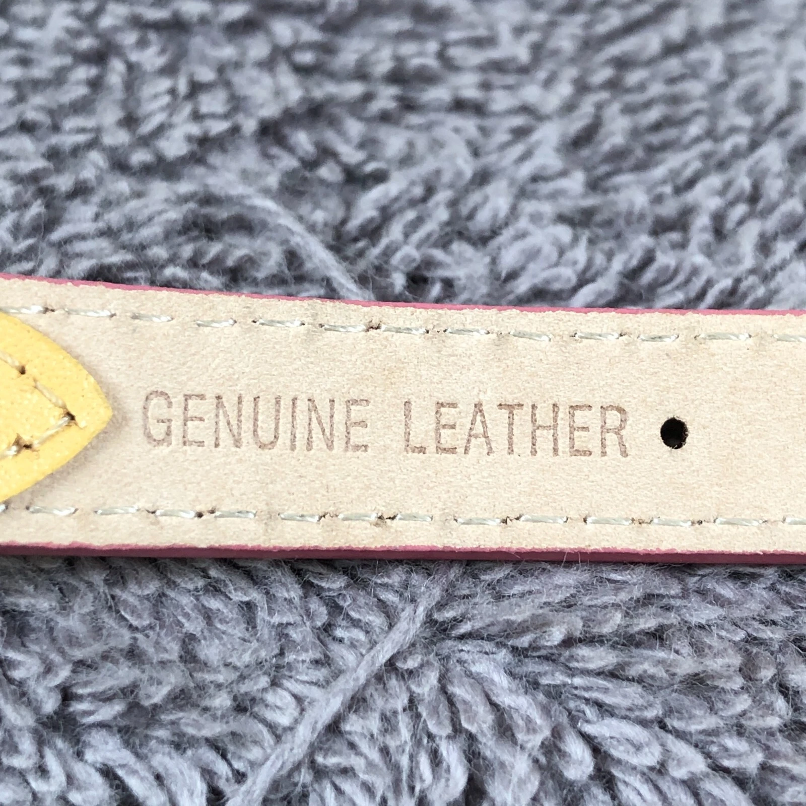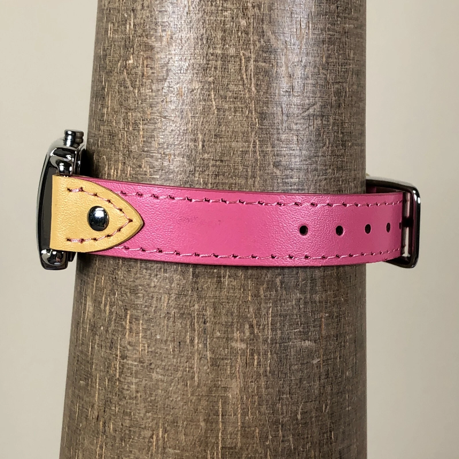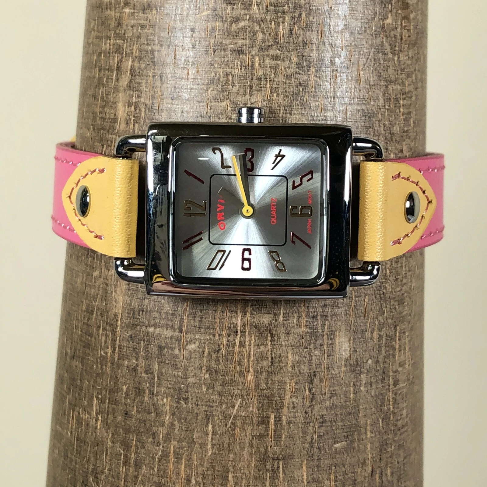 Orvis Women Silver Tone Yellow Pink Leather Strap 24mm Tank Quartz Watch 6 1/2"