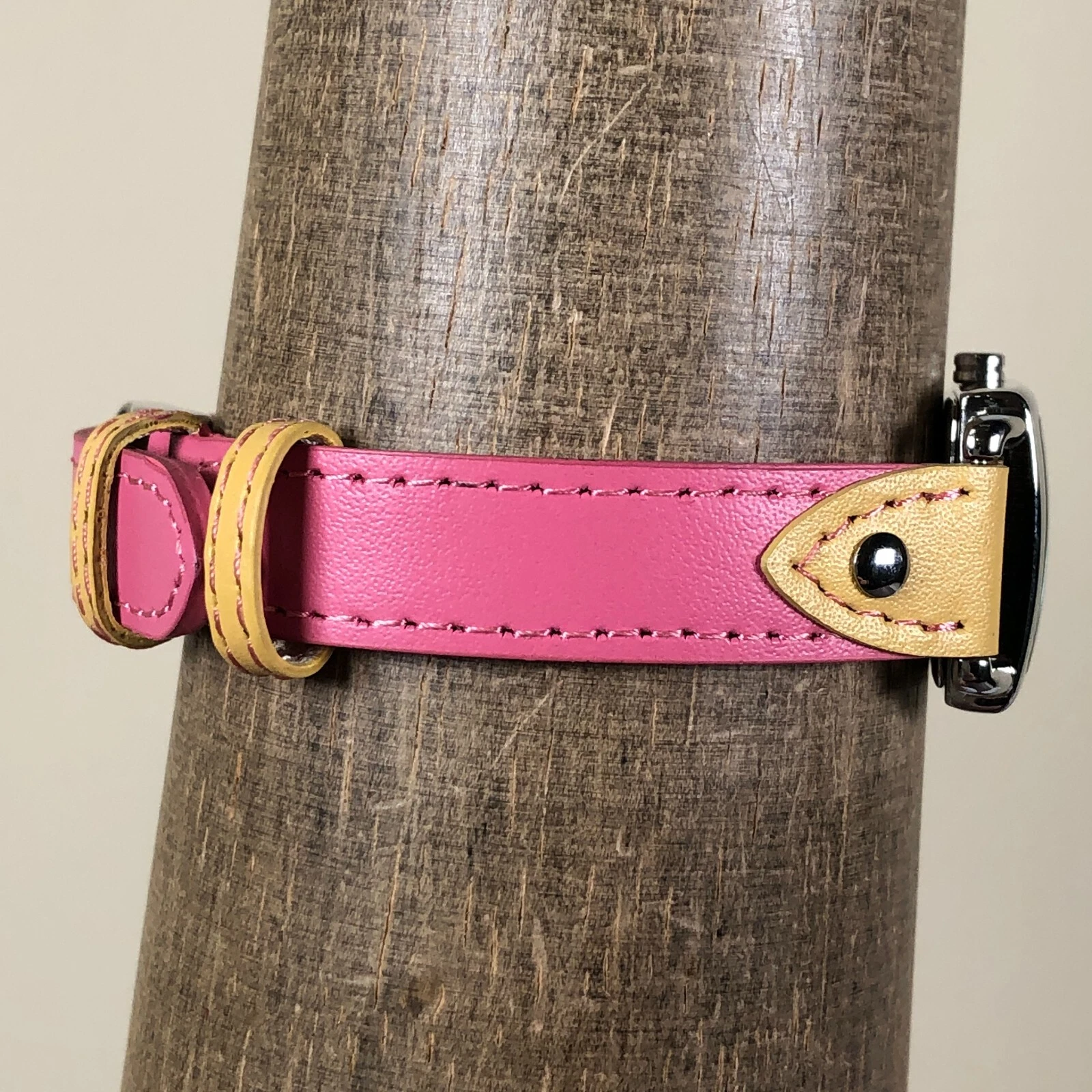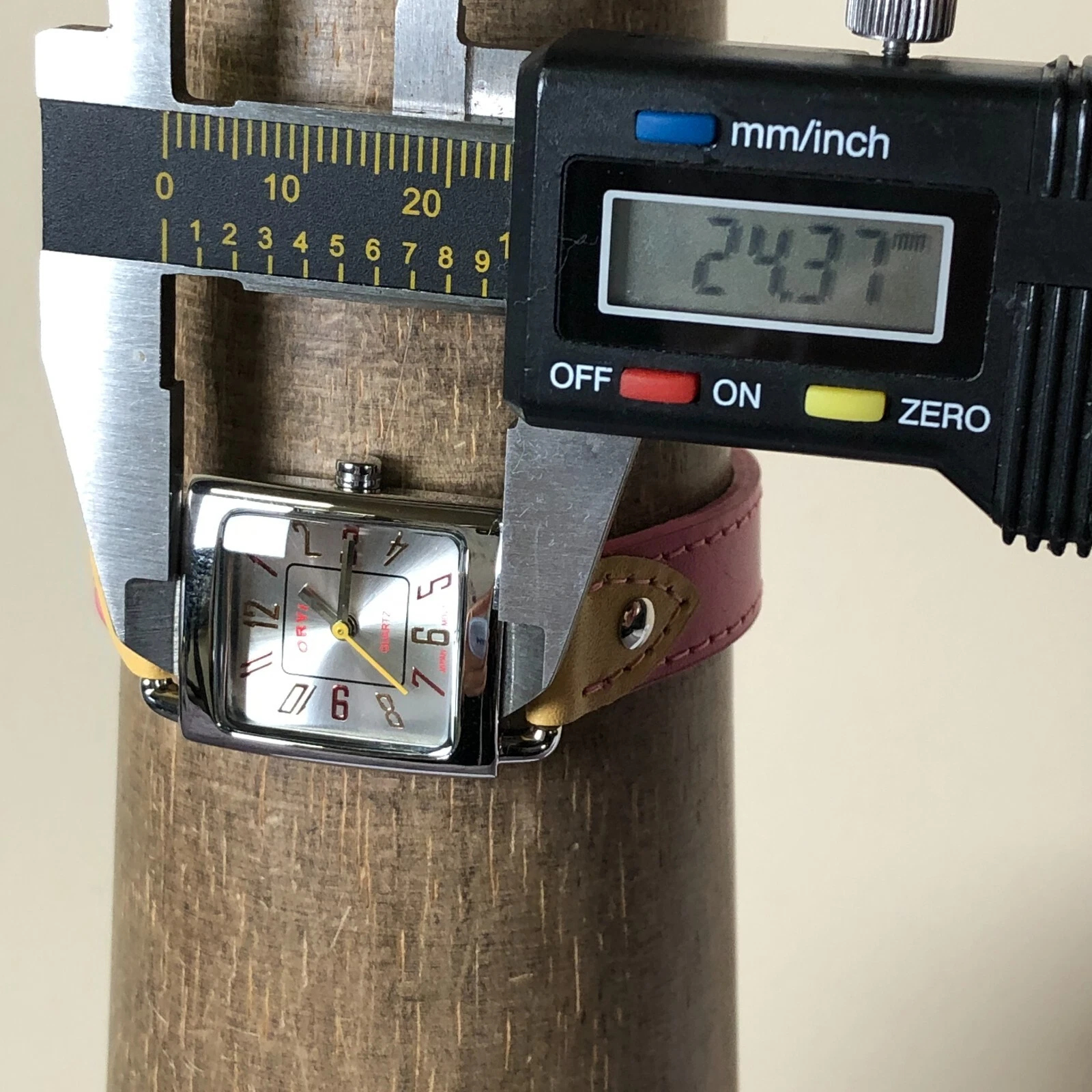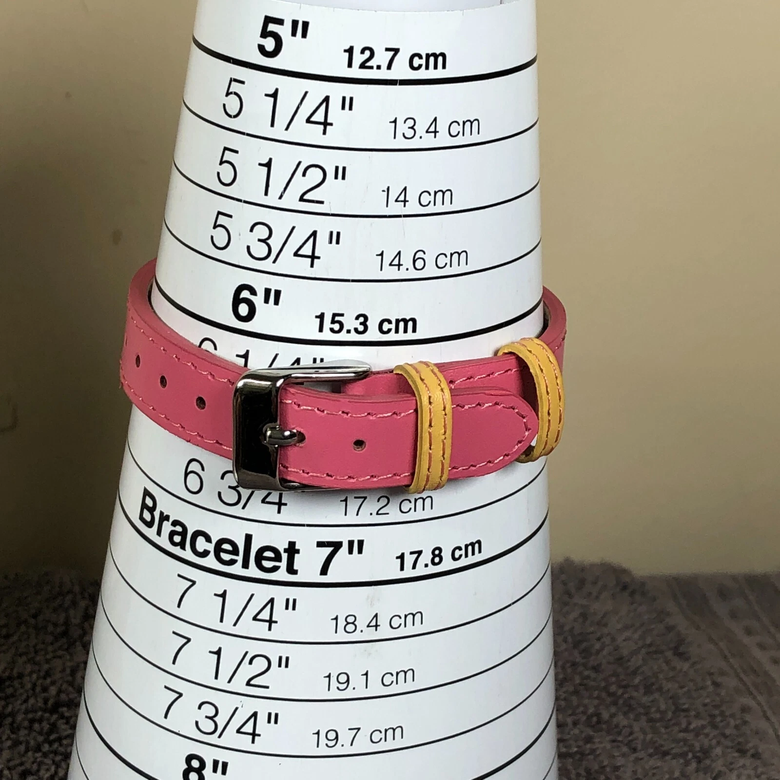 Orvis Women Silver Tone Yellow Pink Leather Strap 24mm Tank Quartz Watch 6 1/2"