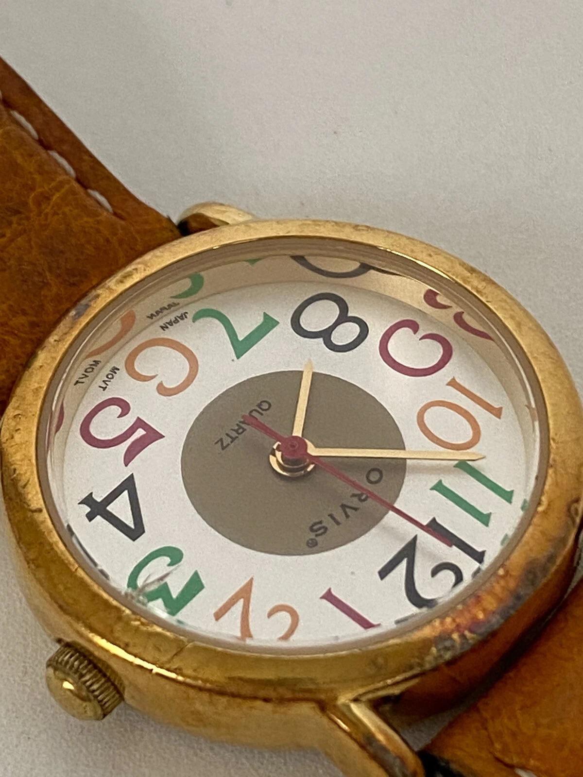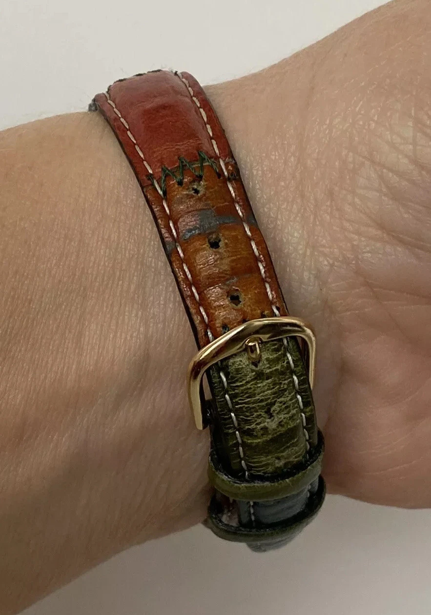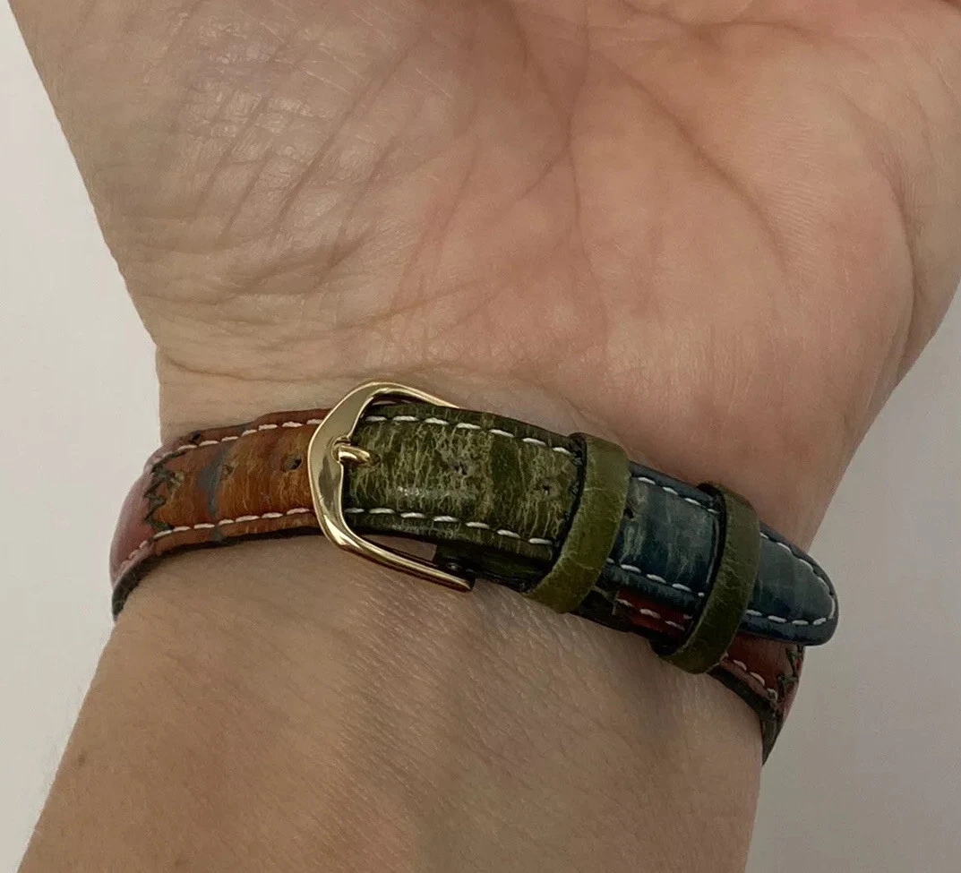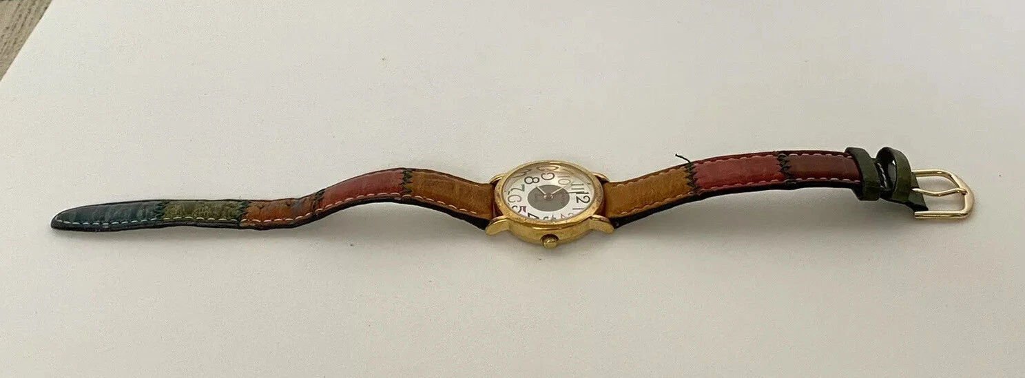 Vintage Orvis Women’s Wristwatch Multi-colored Watch Face Leather Watchband