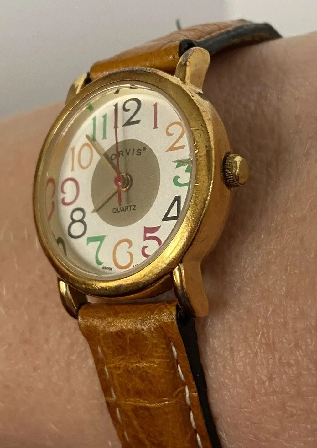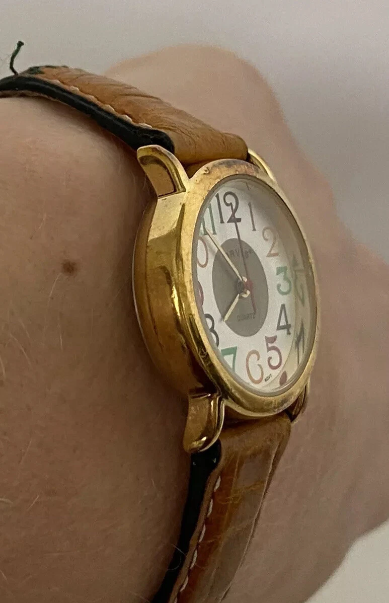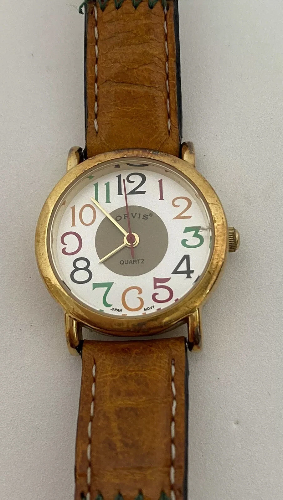 Vintage Orvis Women’s Wristwatch Multi-colored Watch Face Leather Watchband