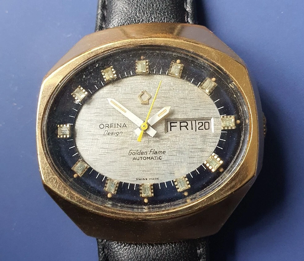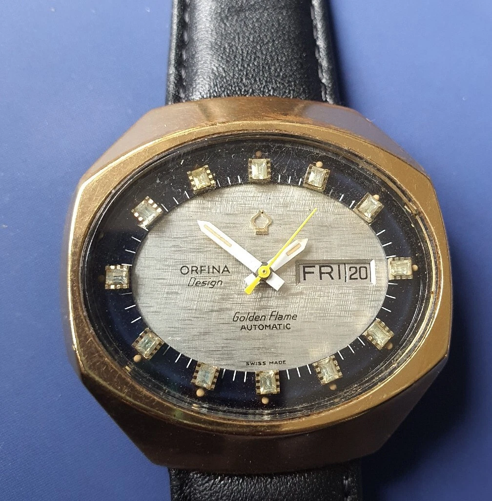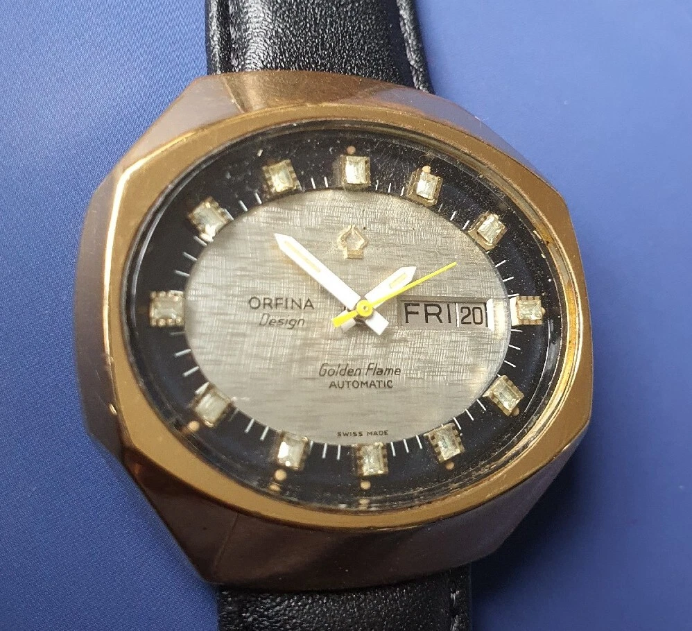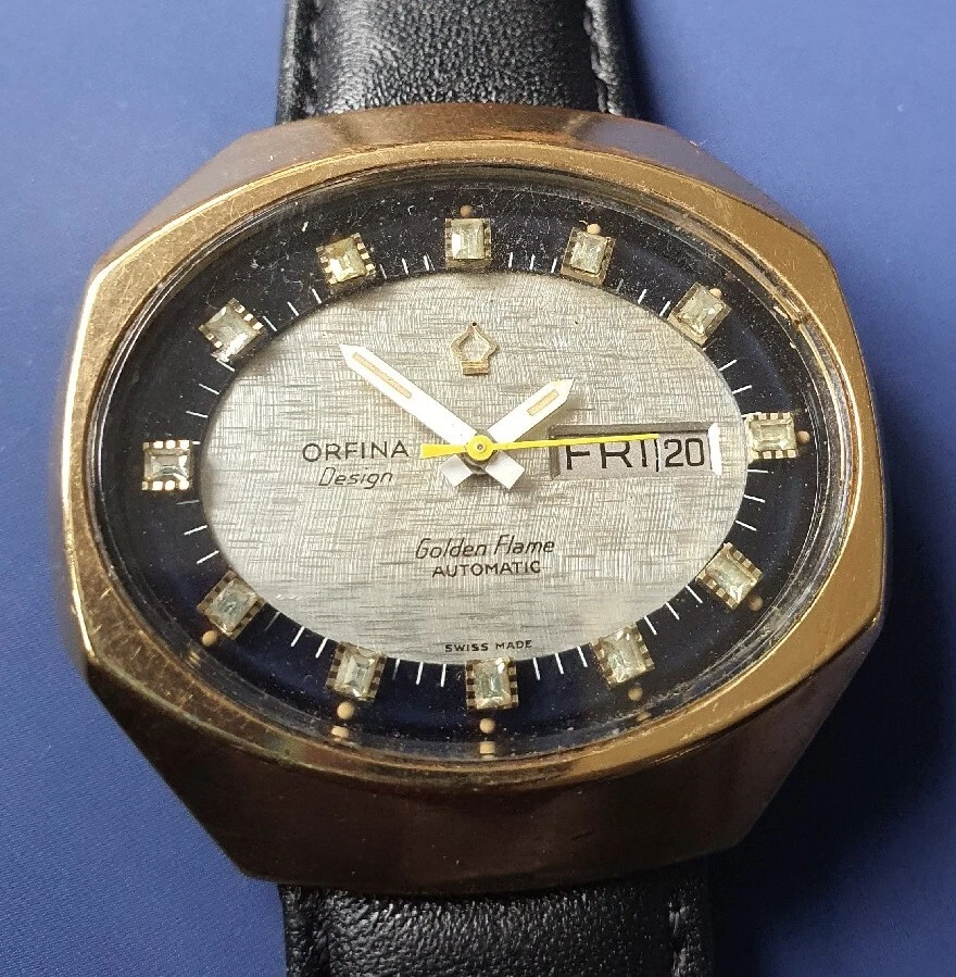 Vintage Orfina Design Golden Flame Swiss Watch Automatic Wristwatch