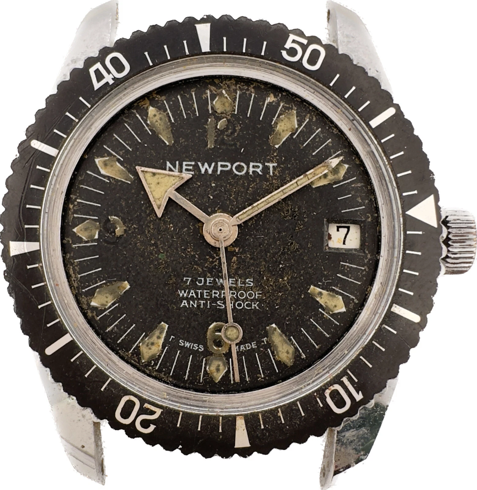 Vintage Newport Diver Men's Mechanical Wristwatch w Broad Arrow & Lollipop Hand
