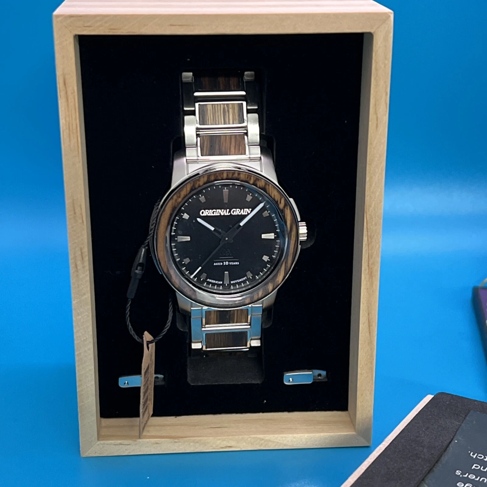 ORIGINAL GRAIN American Heritage Charred Oak Bourbon Barrel Silver 42mm