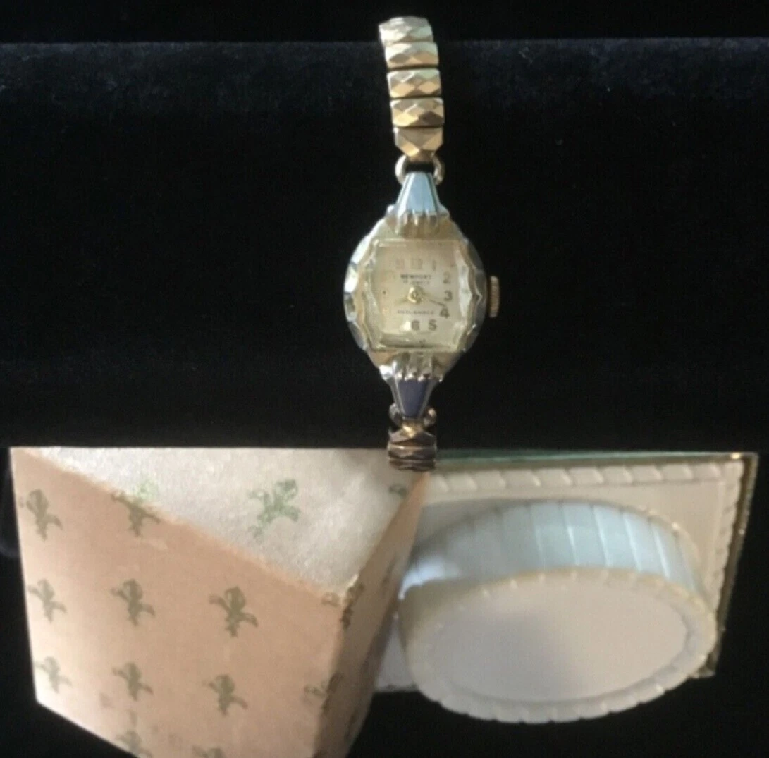 VTG NEWPORT 17 Jewels Swiss Made Ladies Watch Original Box Duchess Band untested