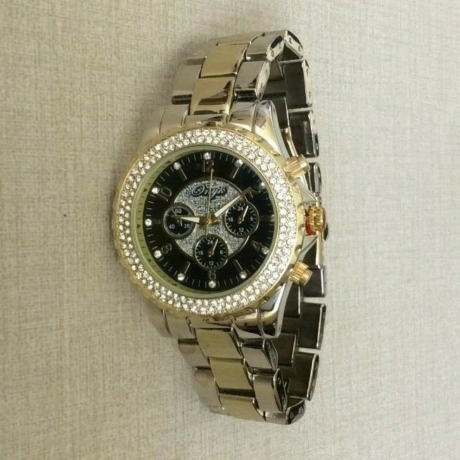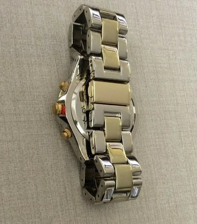 Onyk Mens Watch Crystal Round Easy to Read Dial Two Tone Linked Band Stylish New