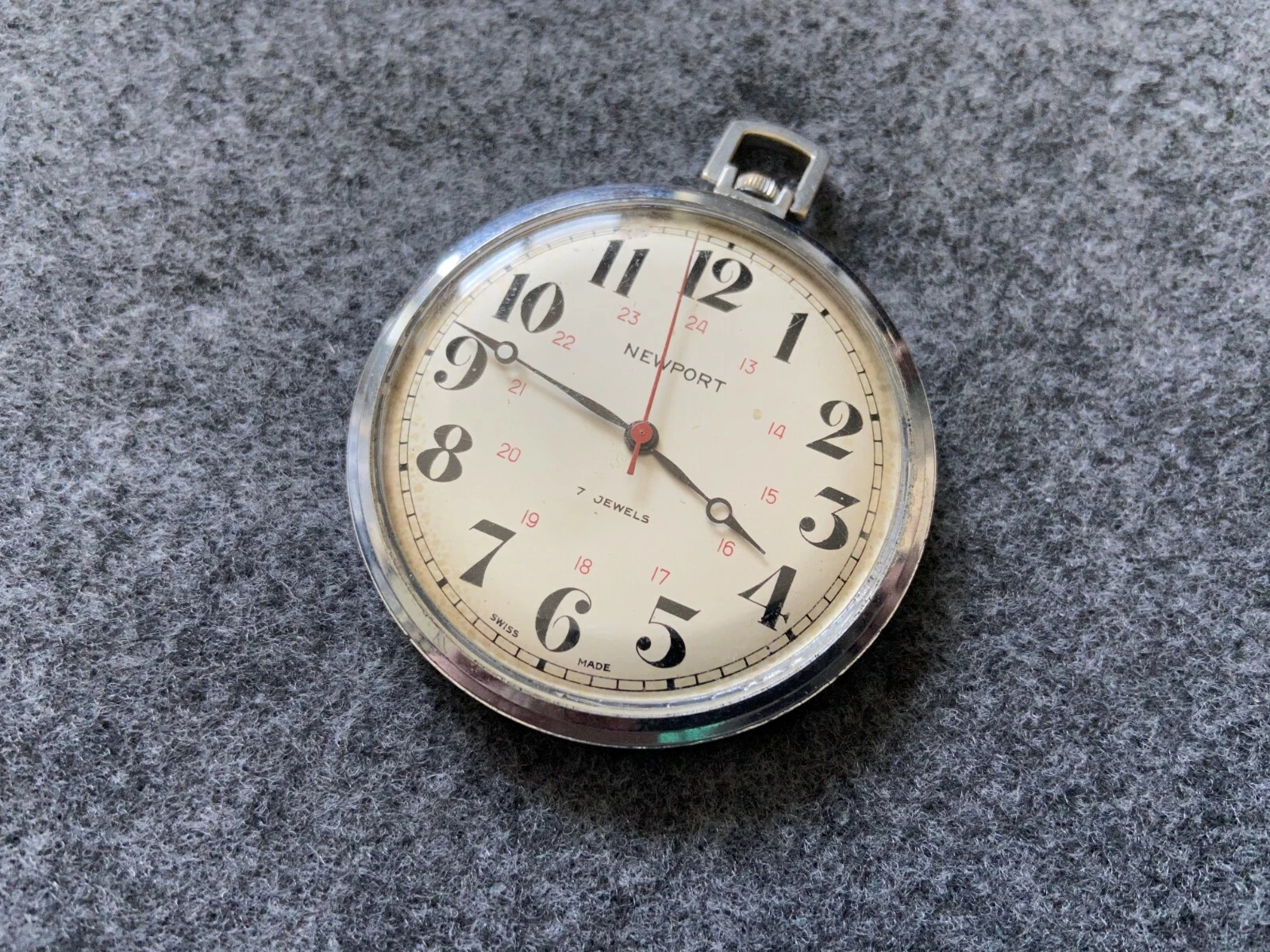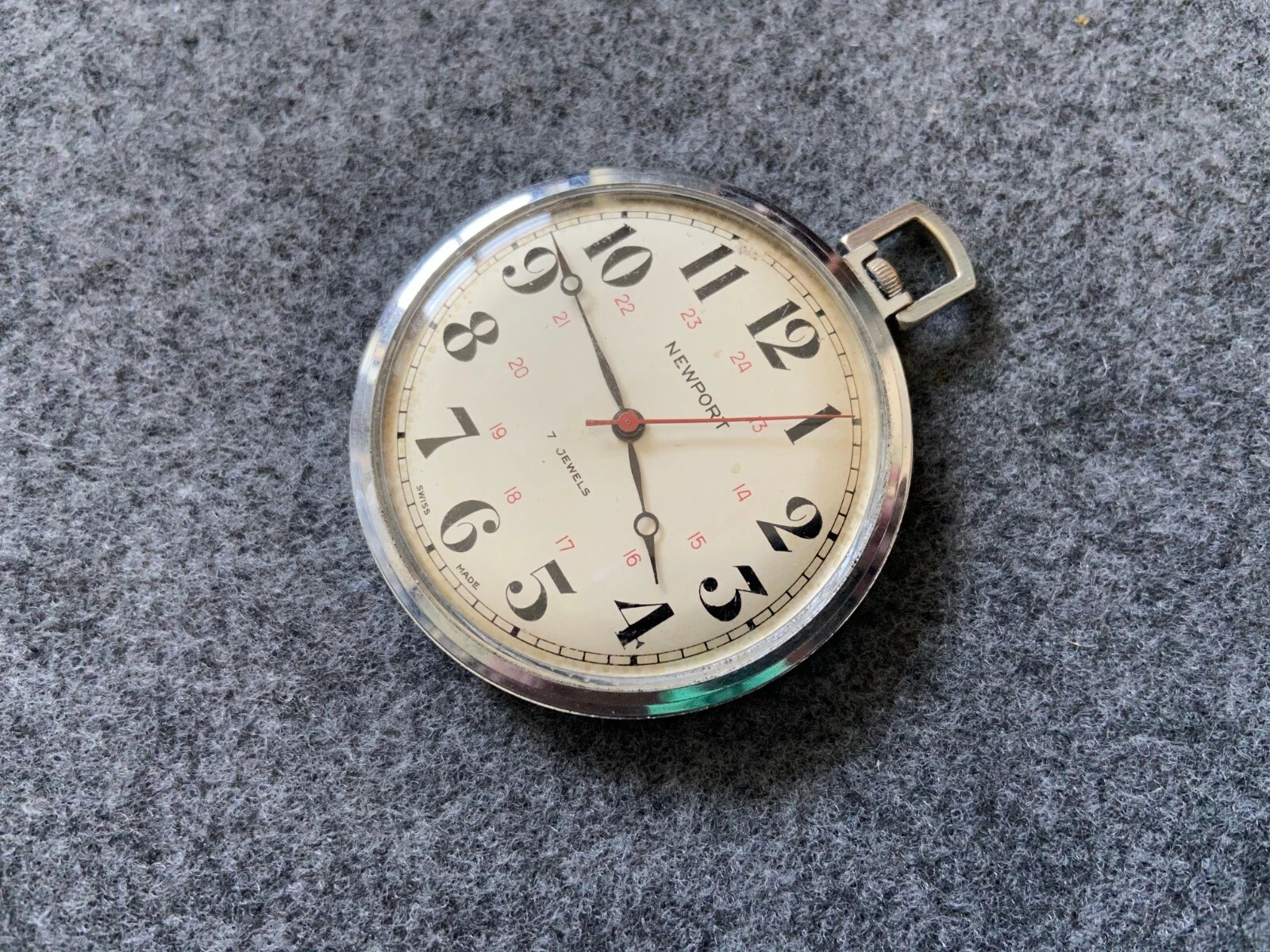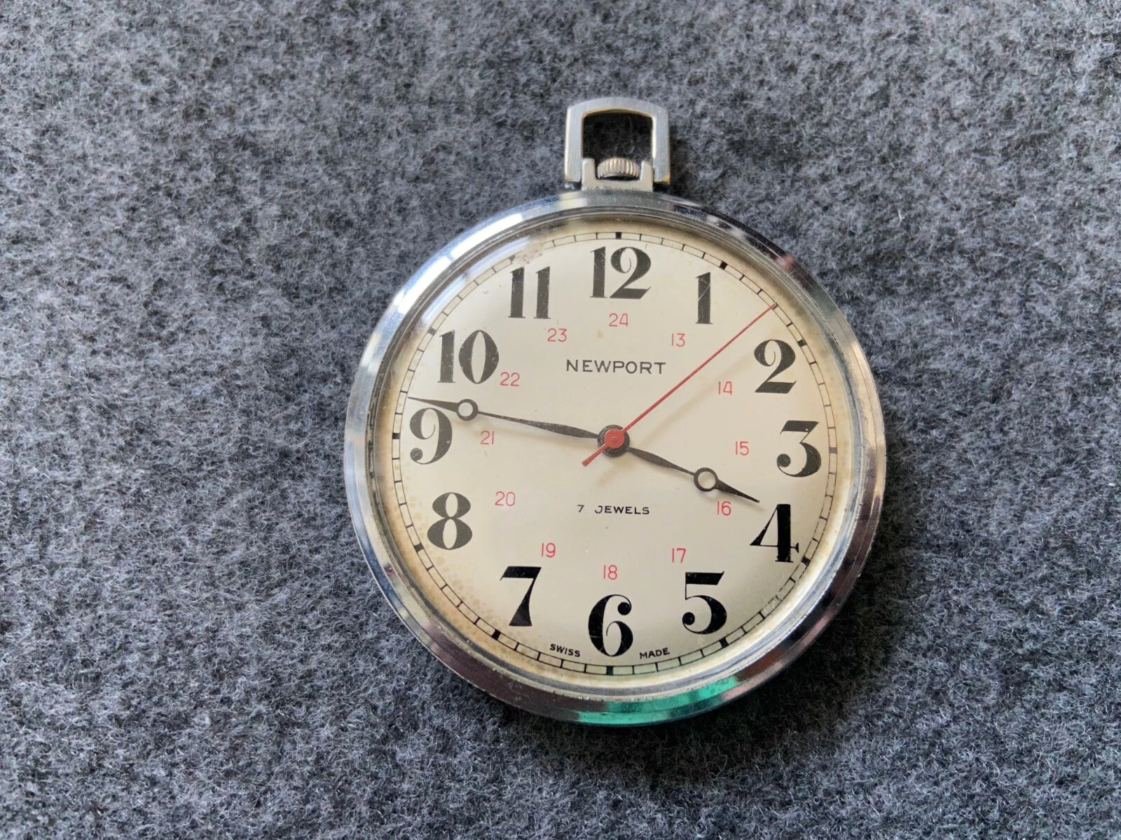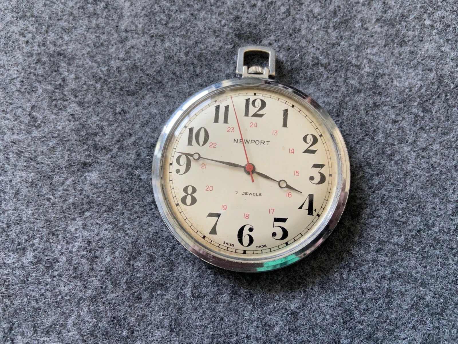 Vintage Swiss Made 7 Jewels Newport Mechanical Wind Up Pocket Watch