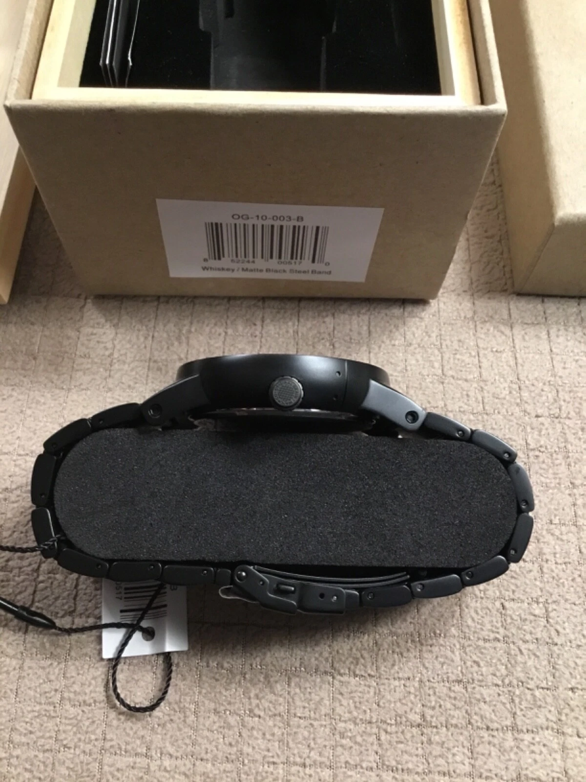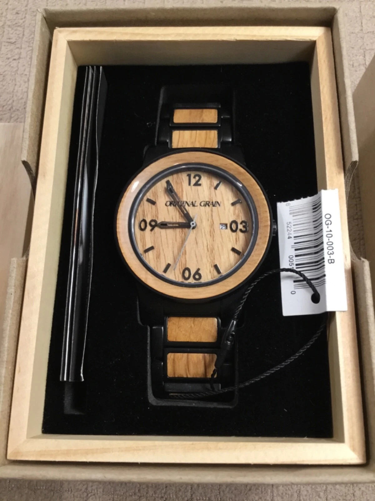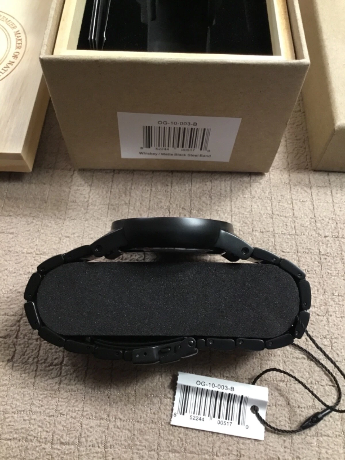 Original Grain 47mm Matte Black Steel & Reclaimed Whiskey Barrel Men's Watch