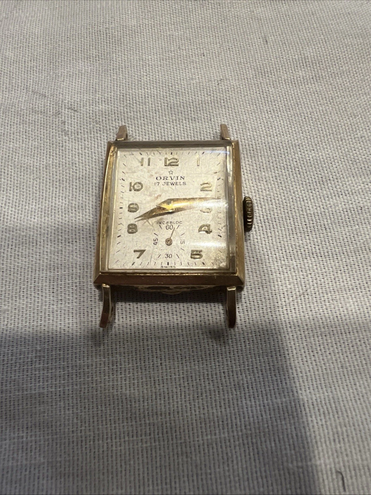 1/2 Oz Total Weight 14K ORVIN Watch, Bubble Crystal Won’t Wind But Hands Move