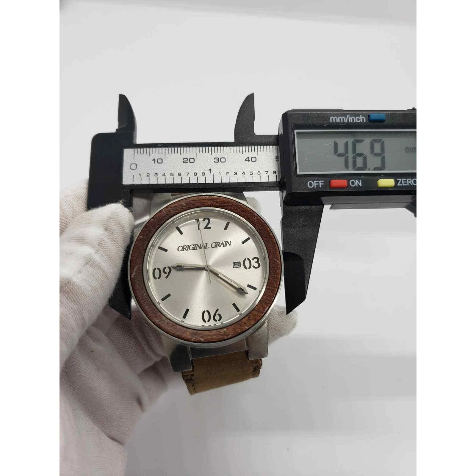 Original Grain Men's Stainless Steel Wood Watch 47mm Barrel