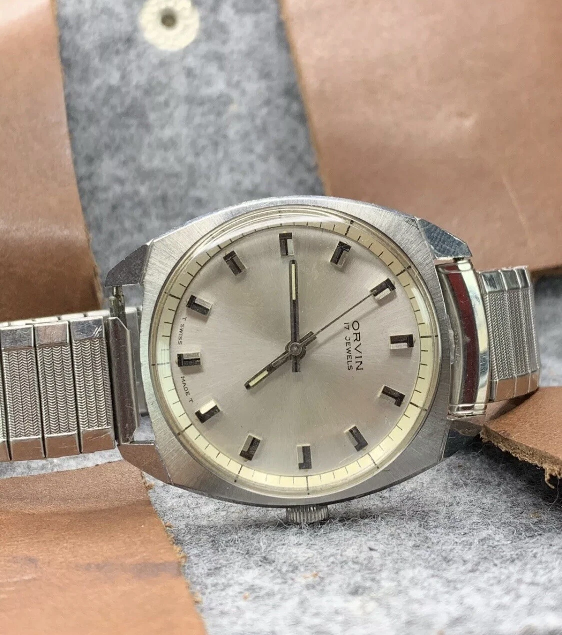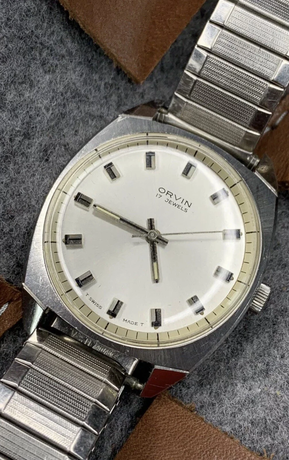 Vintage Unpolished T swiss '70 watch ORVIN all stainless steel