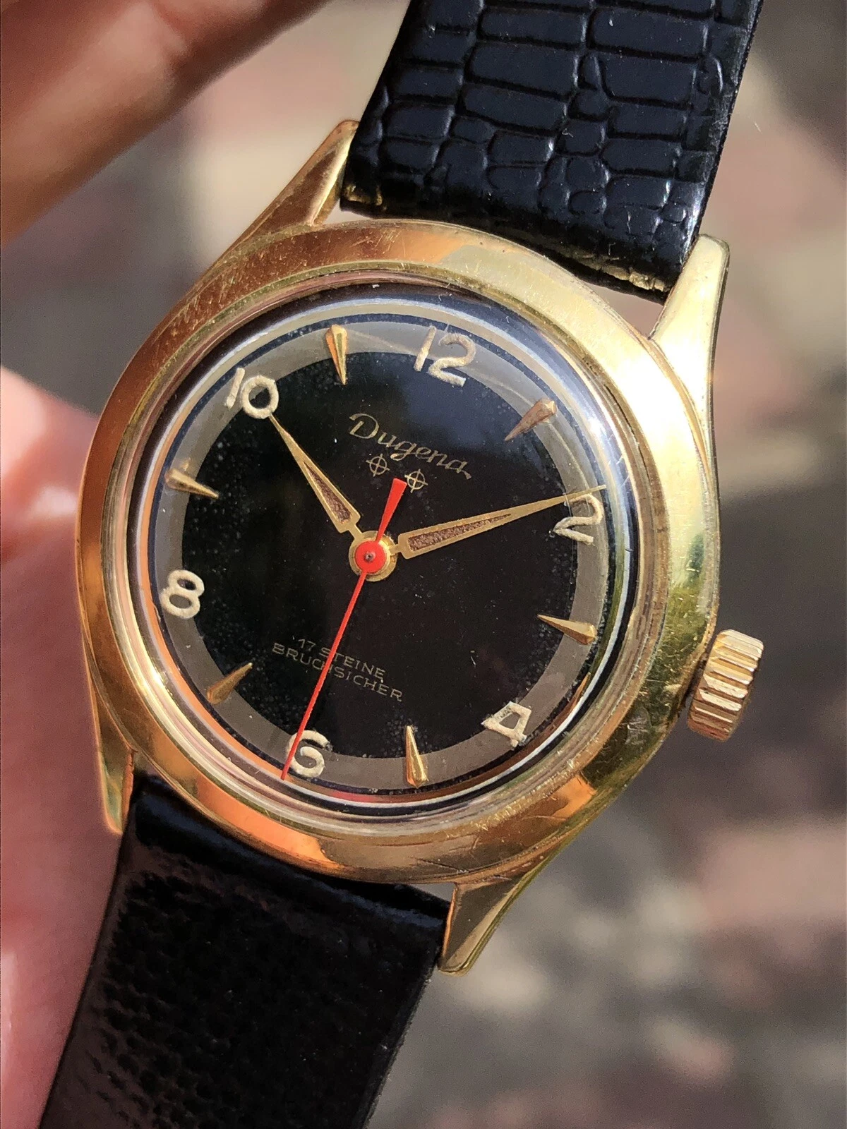 1940s Dugena Gold Plated Mens Watch 33mm Cal. Osco 52