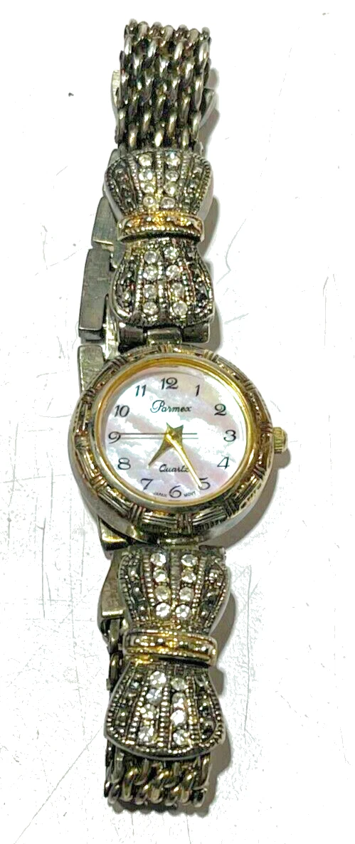 Vintage Ladies Parmex Watch Silver Toned Bow Band