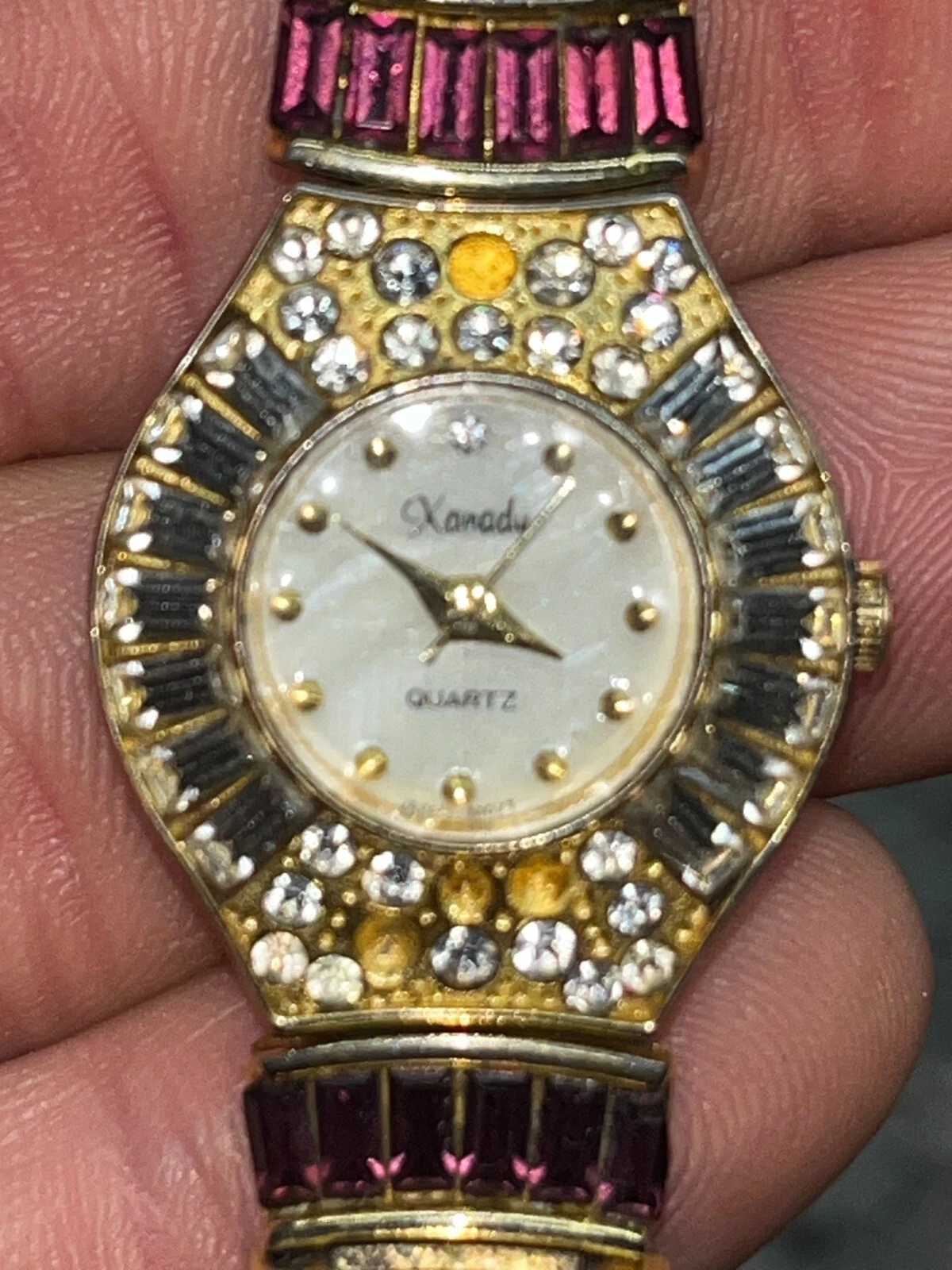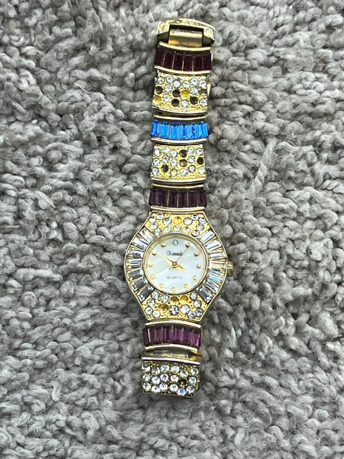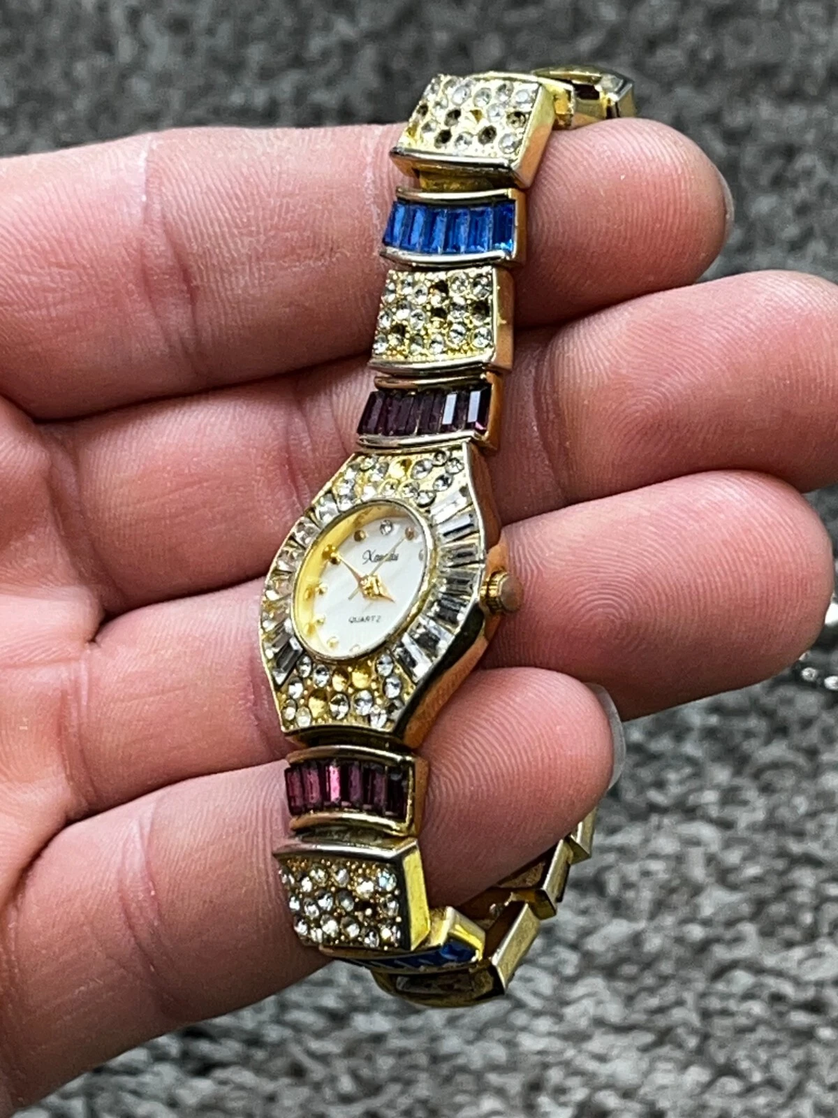 Parmex Gold Tone Rhinestone Ladies Bracelet Quartz Watch Vintage 3131