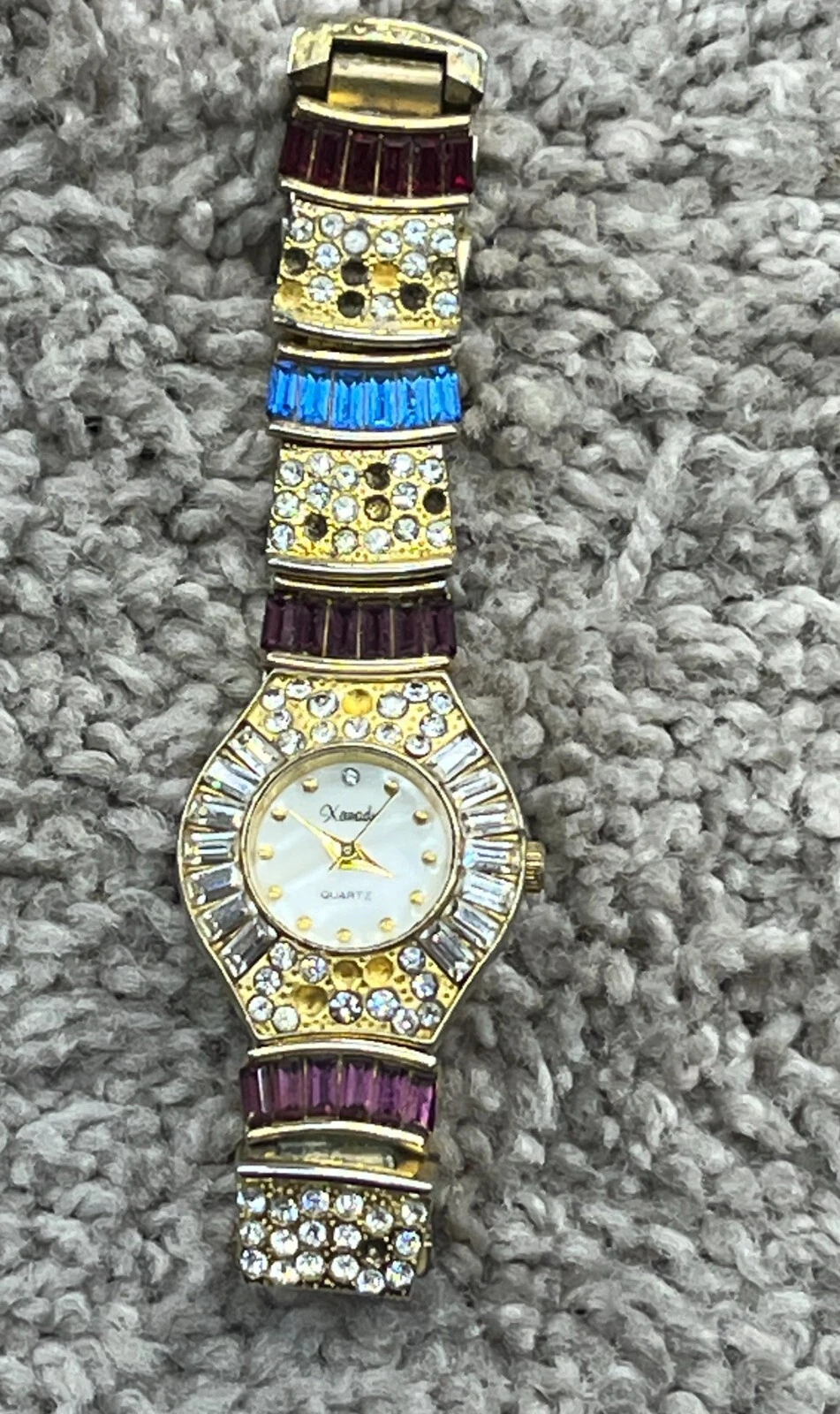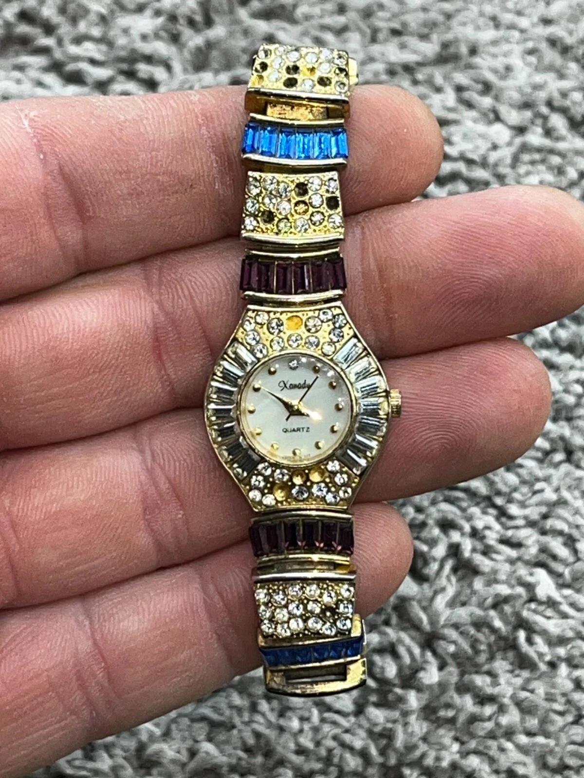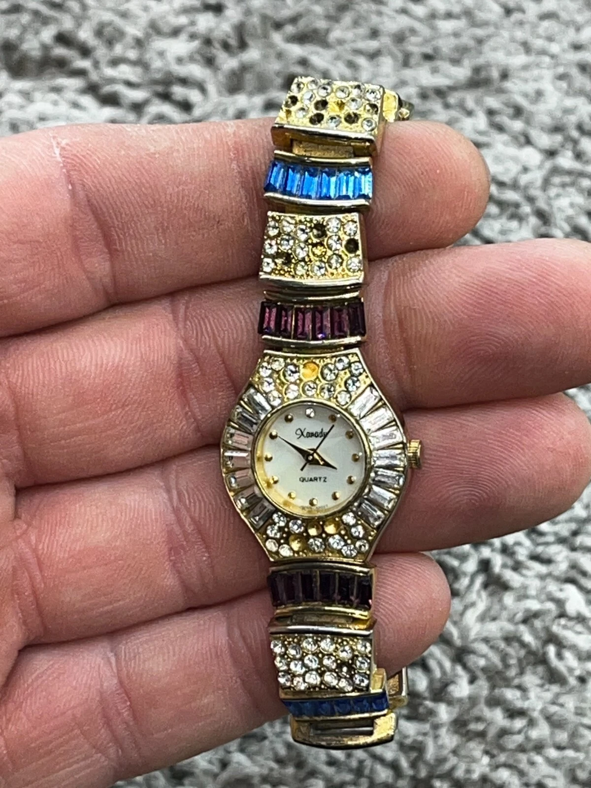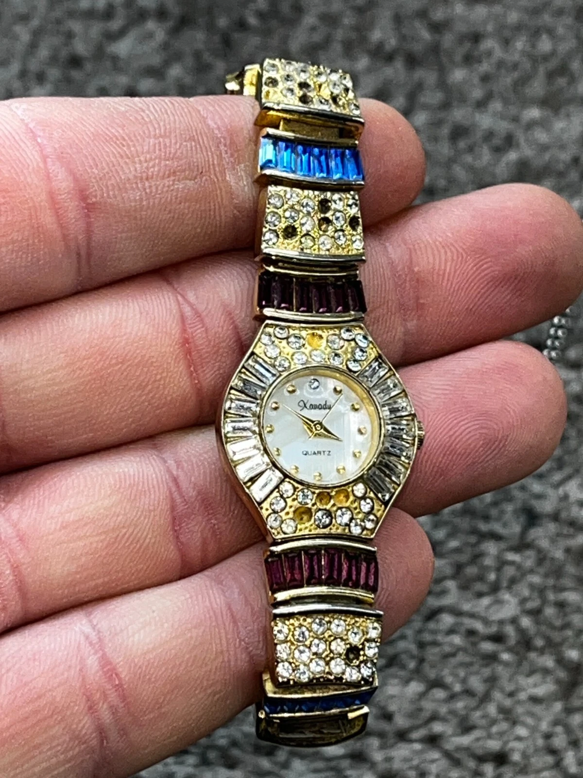 Parmex Gold Tone Rhinestone Ladies Bracelet Quartz Watch Vintage 3131