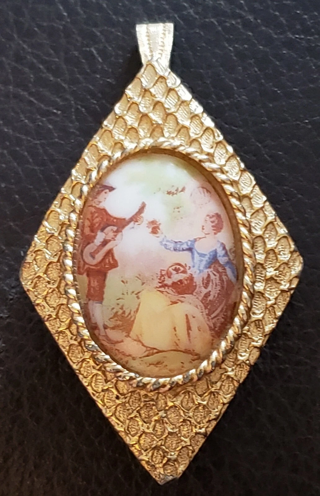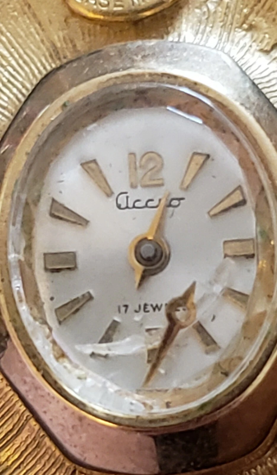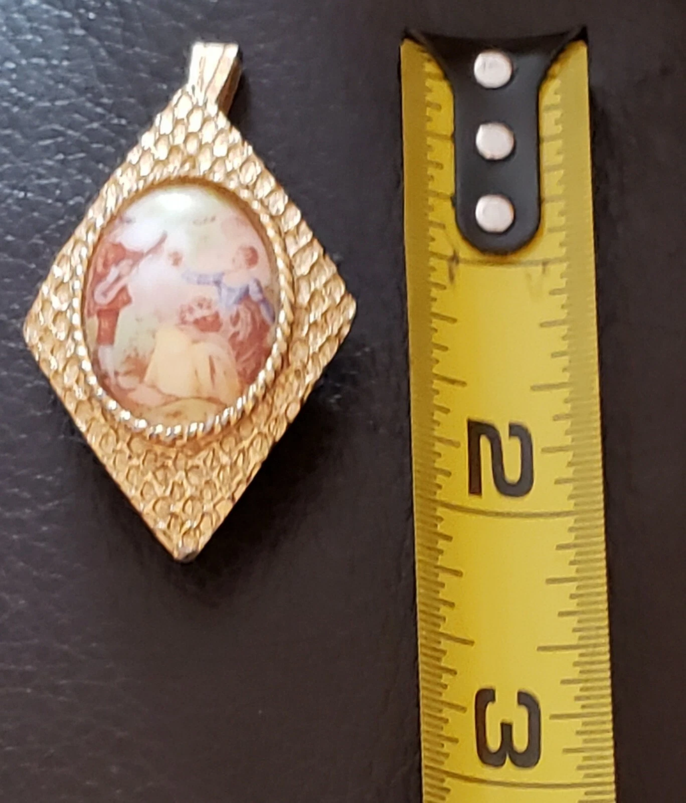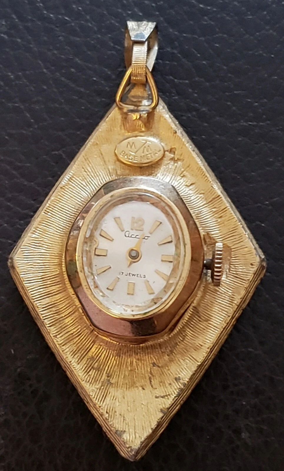 Vintage Accro Gold Tone 17 Jeweled Watch Pendant w/ Portrait, Needs Repair