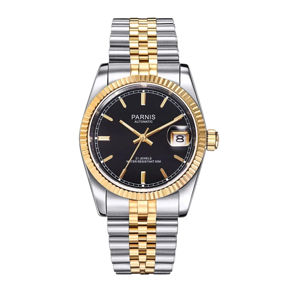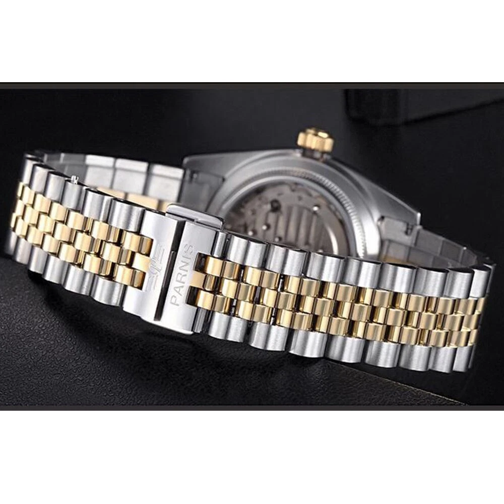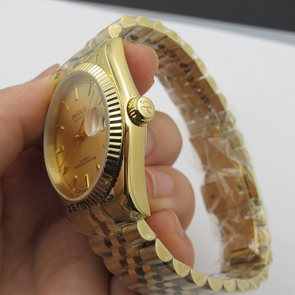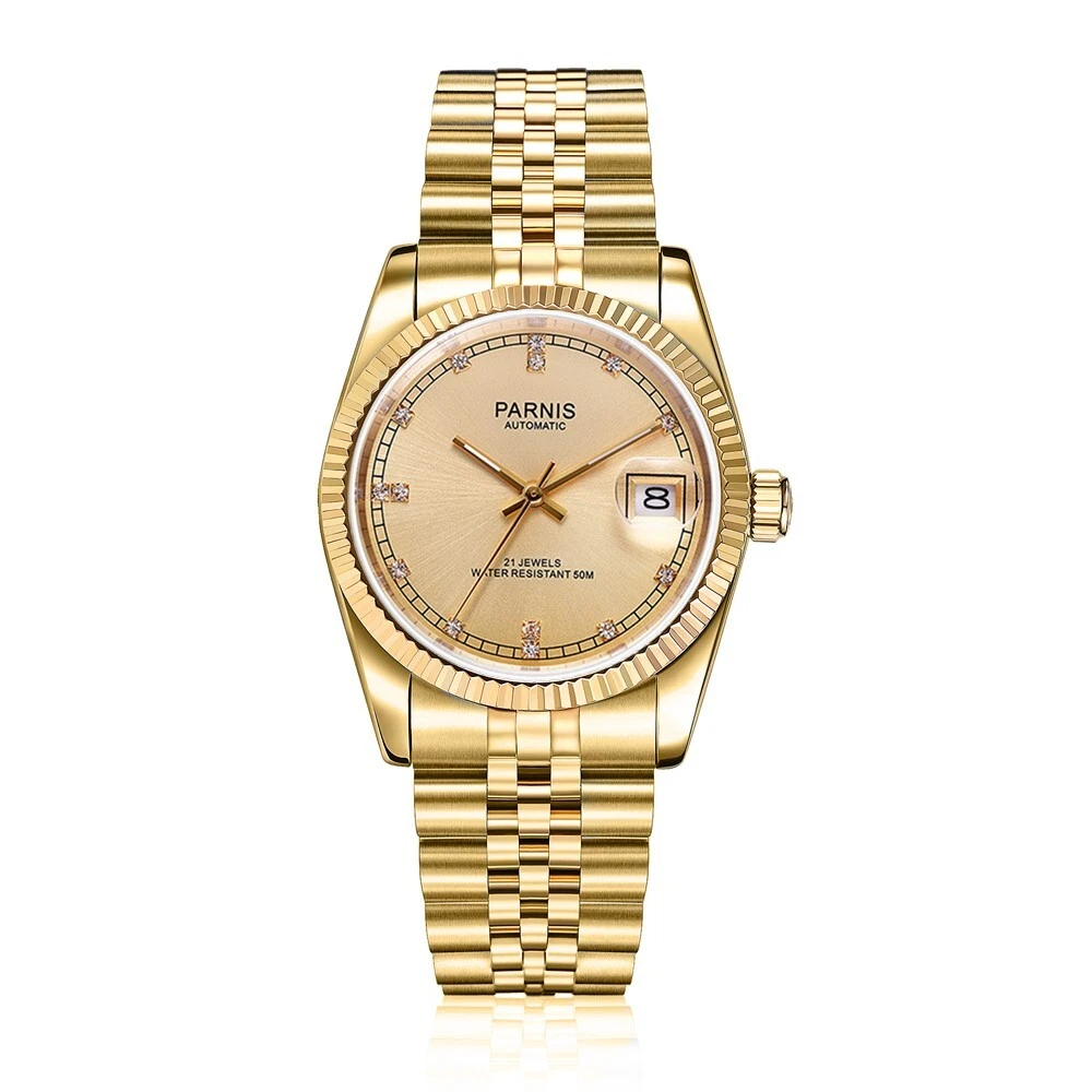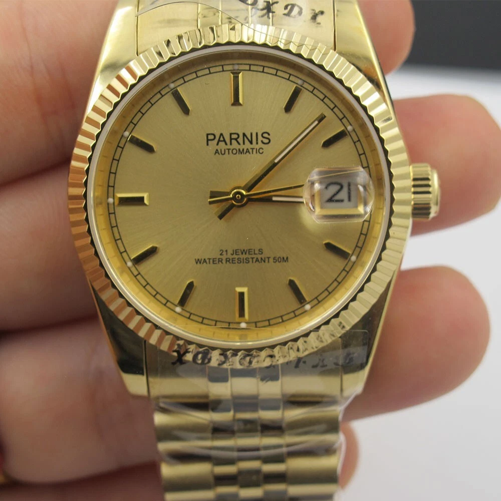36mm Parnis Miyota 21 Jewels Automatic Sapphire Crystal Gold Wristwatch