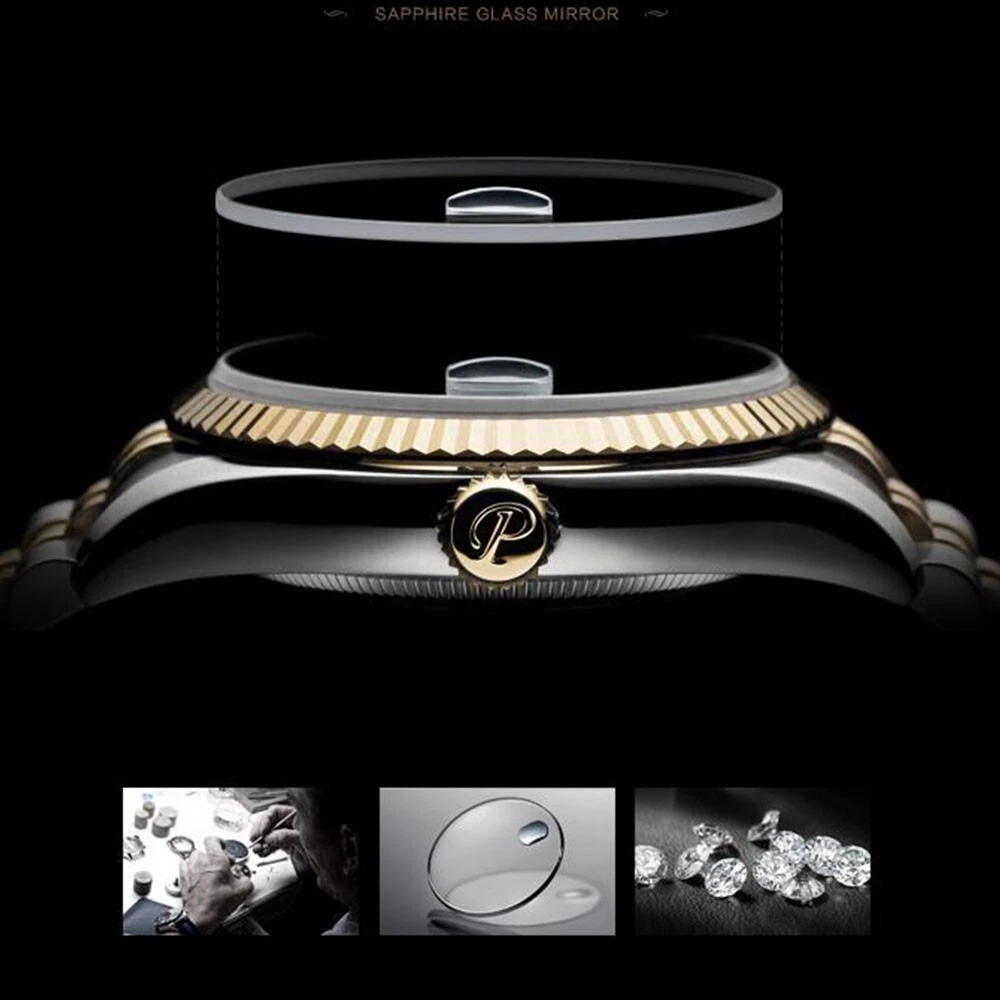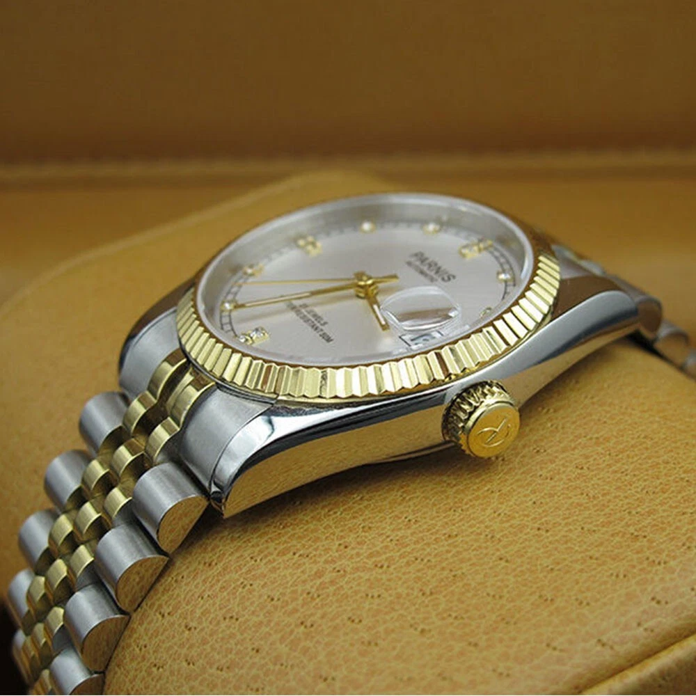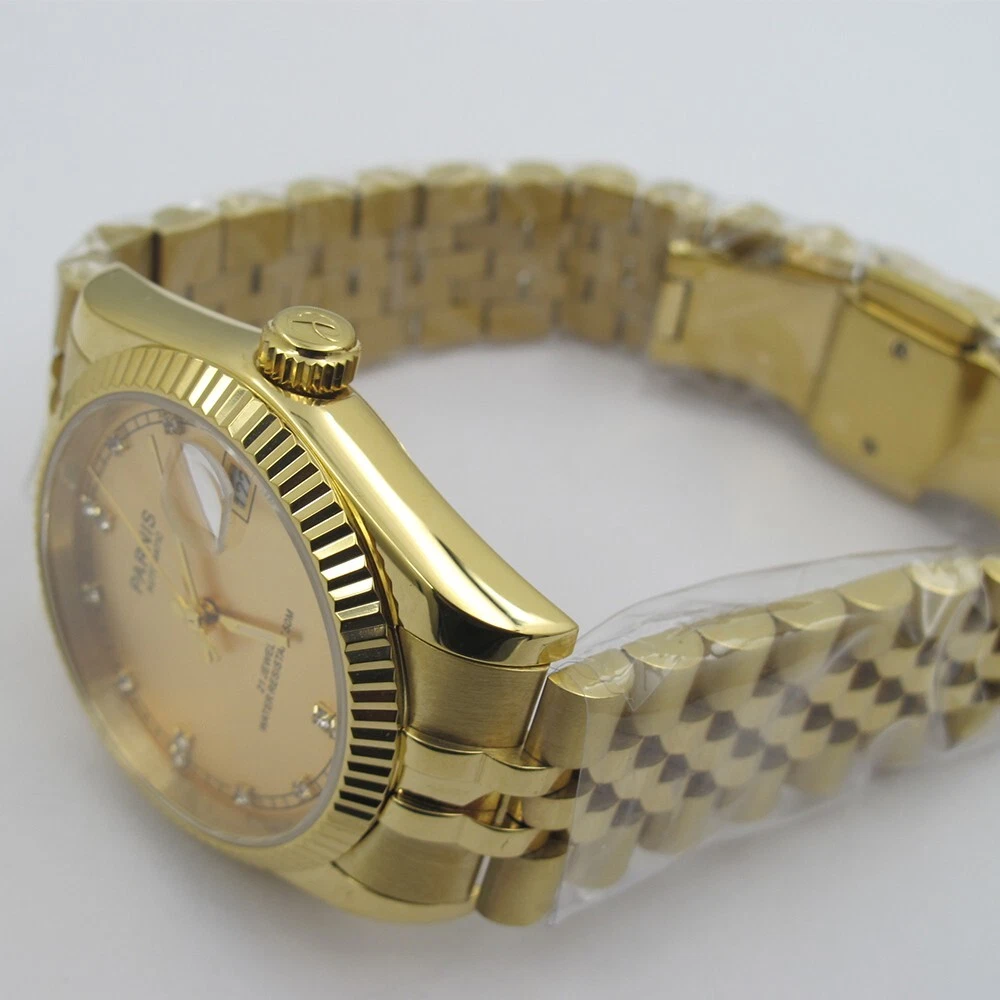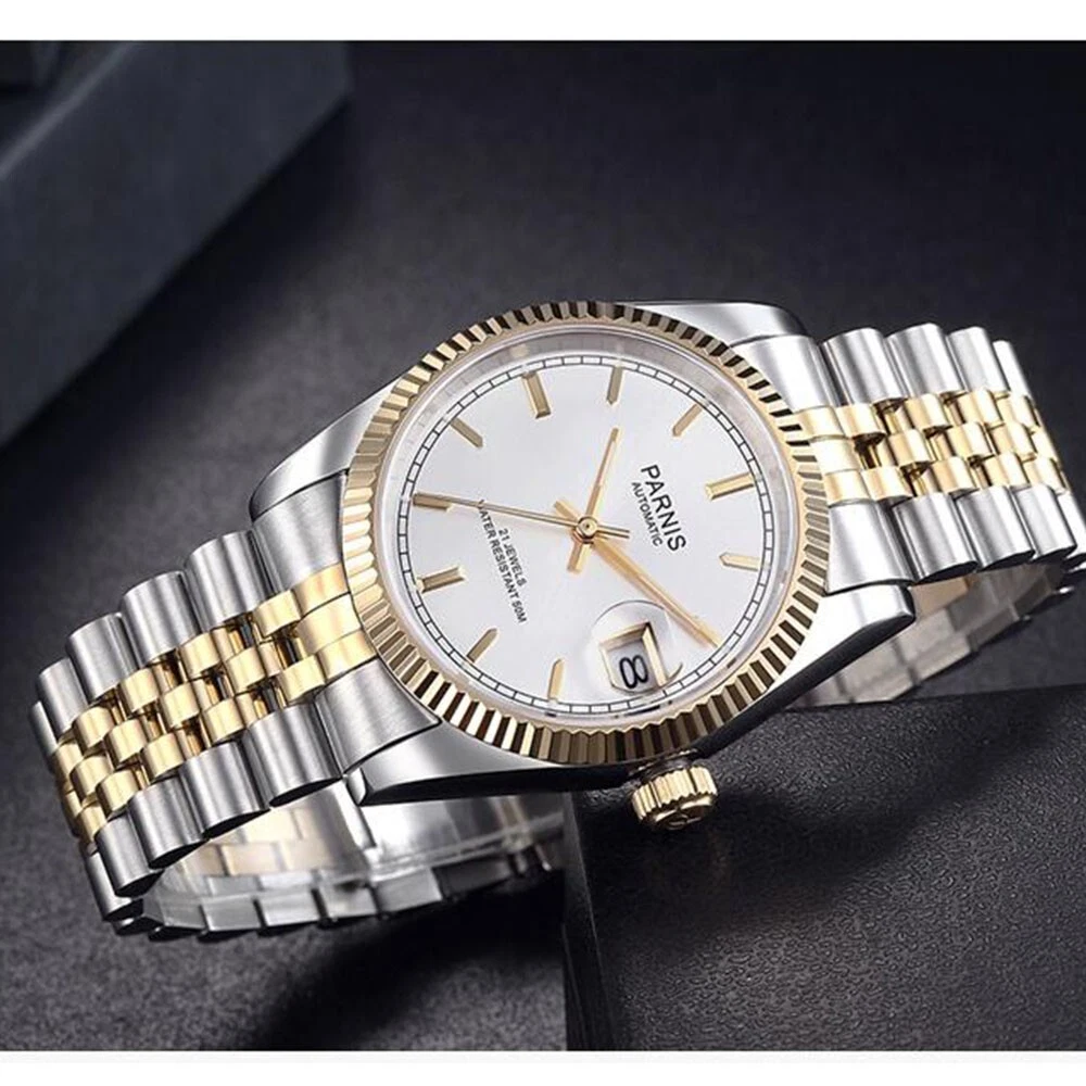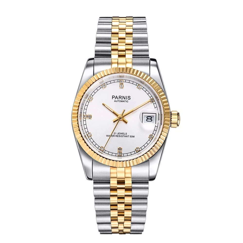 36mm Parnis Miyota 21 Jewels Automatic Sapphire Crystal Gold Wristwatch