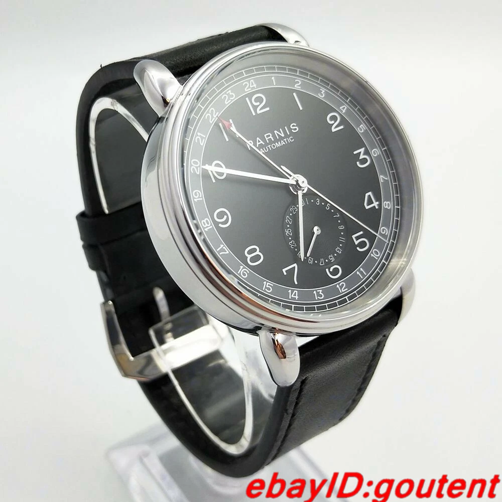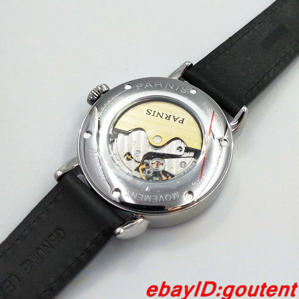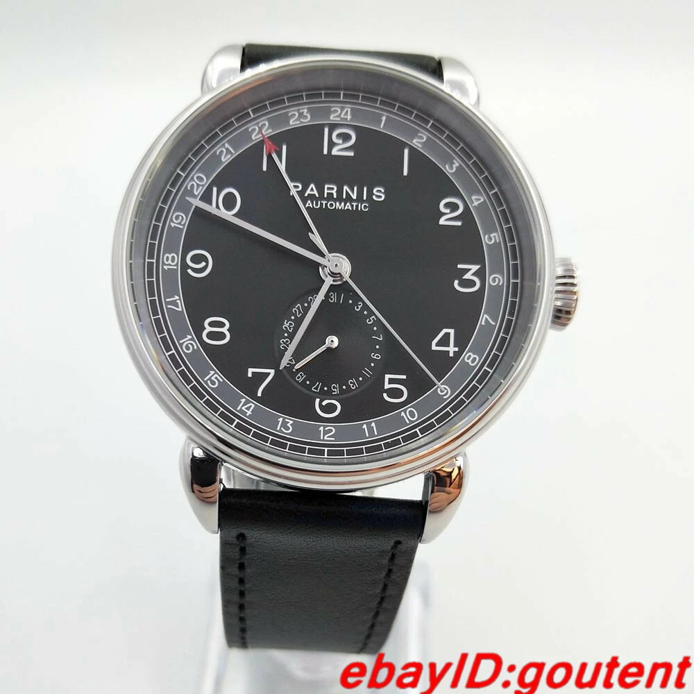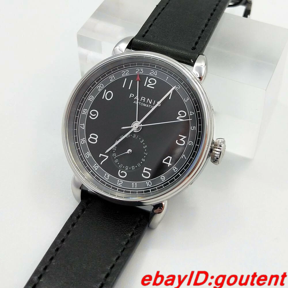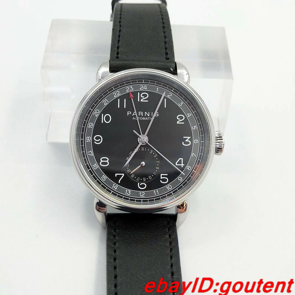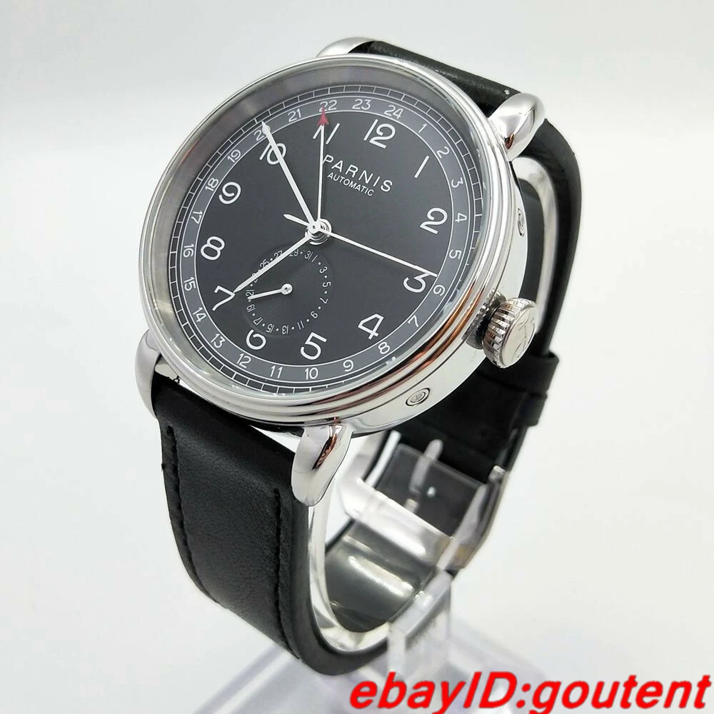 New 42mm PARNIS black dial silver Polished case date GMT Automatic mens watch
