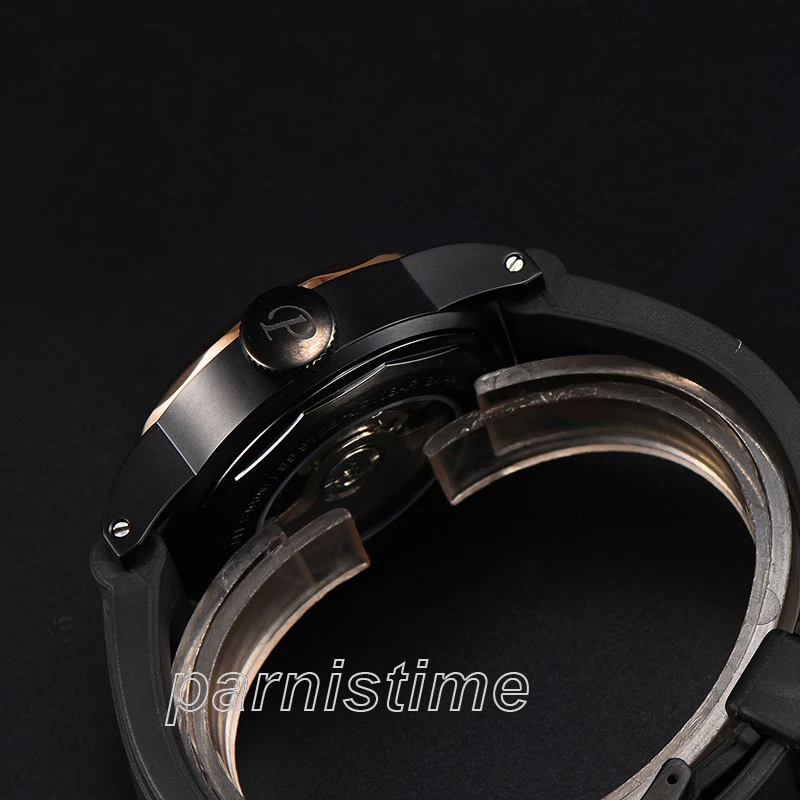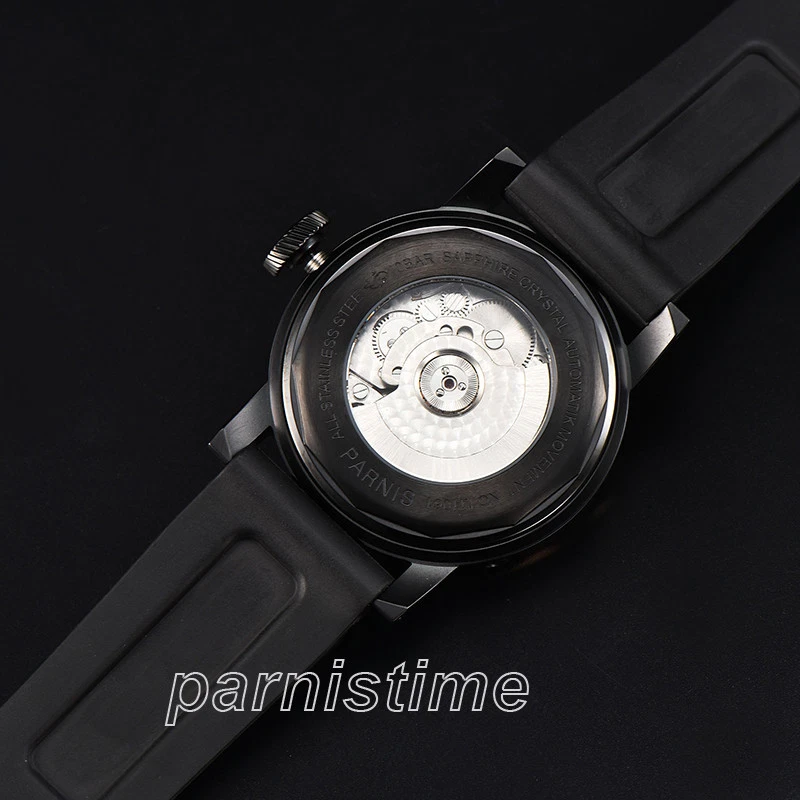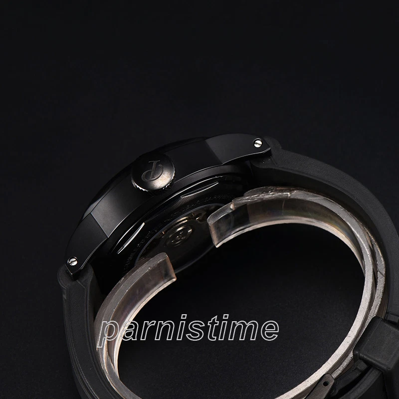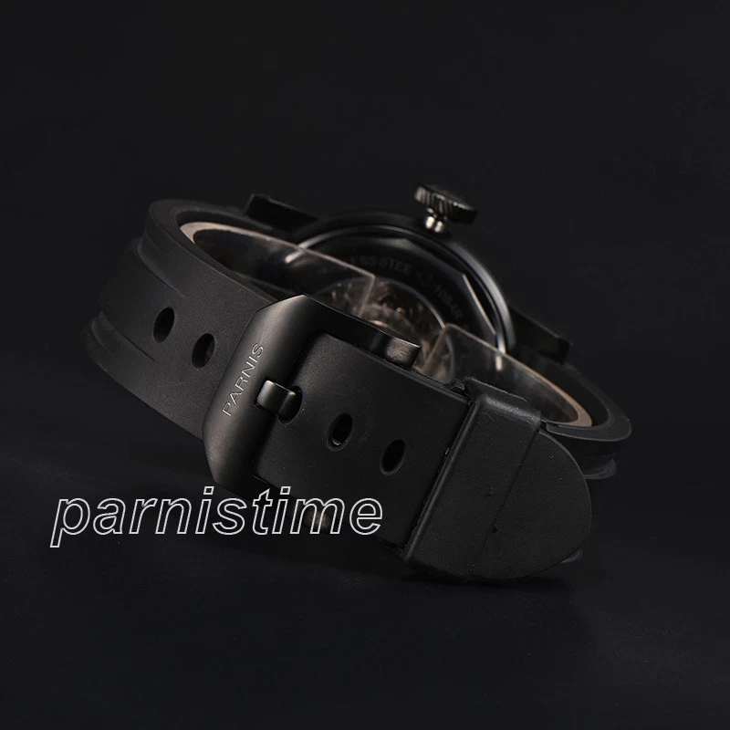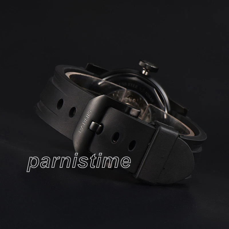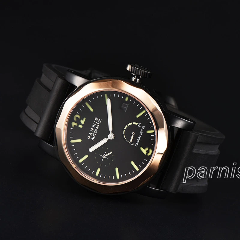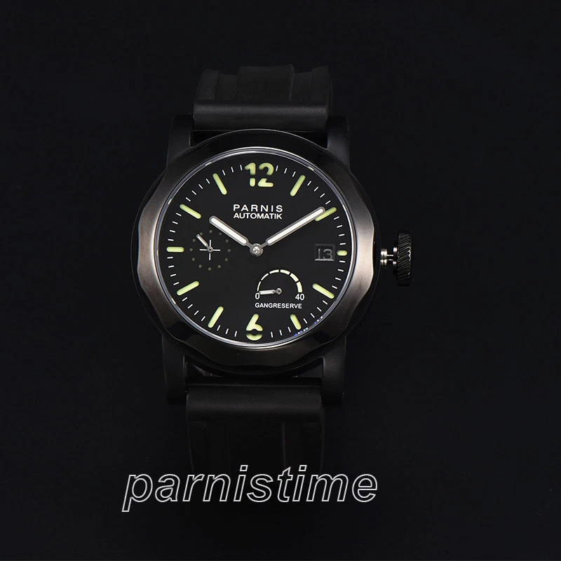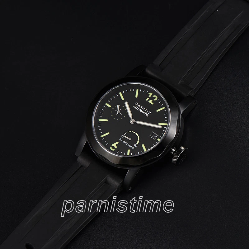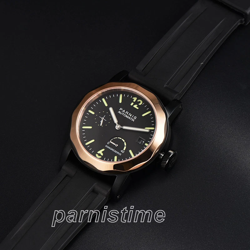 44mm Parnis Sapphire Crystal Power Reserve Automatic Men Watch Rubber Strap New