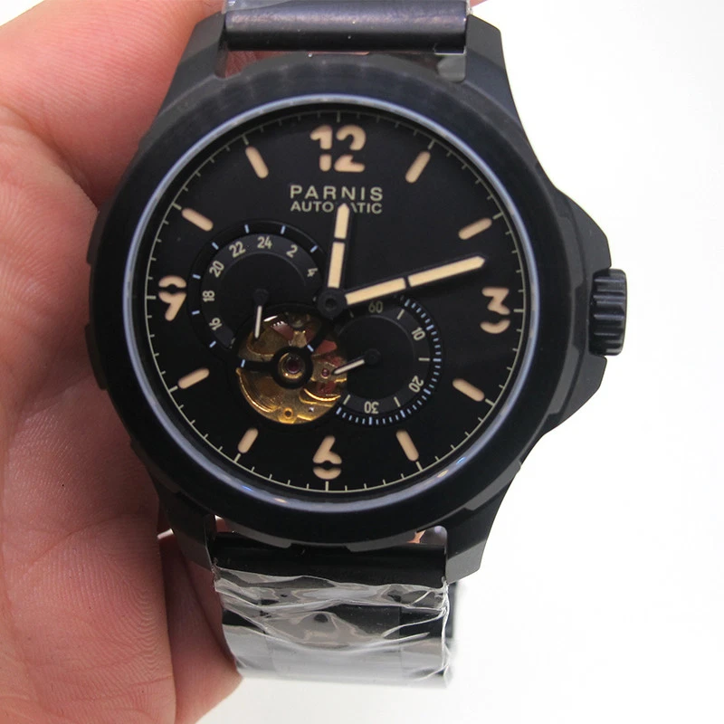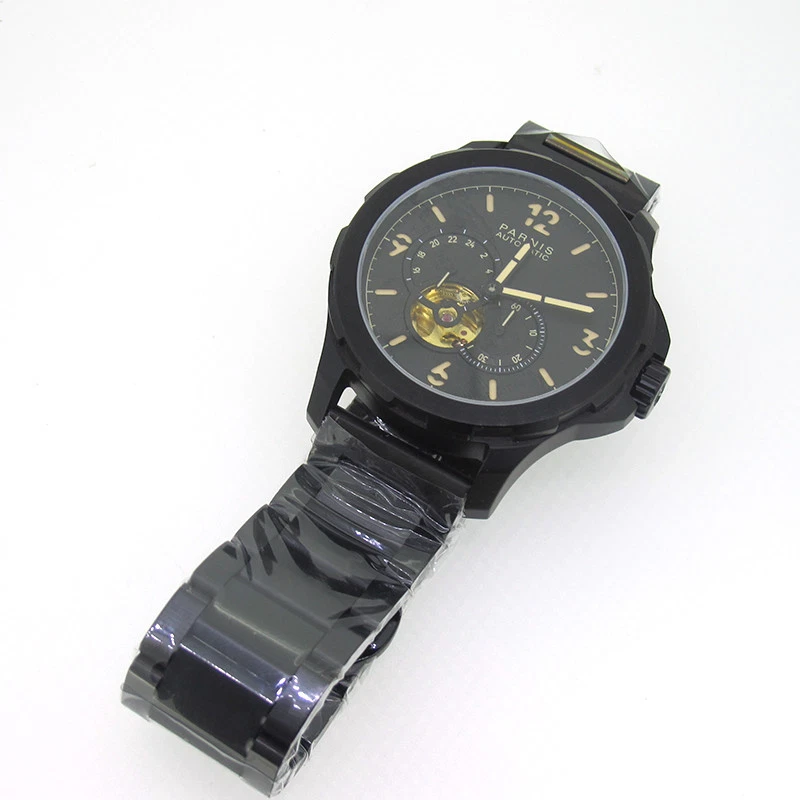 44mm Parnis Sapphire Crystal Miyota Automatic Men Watch PVD Black Case Bracelet