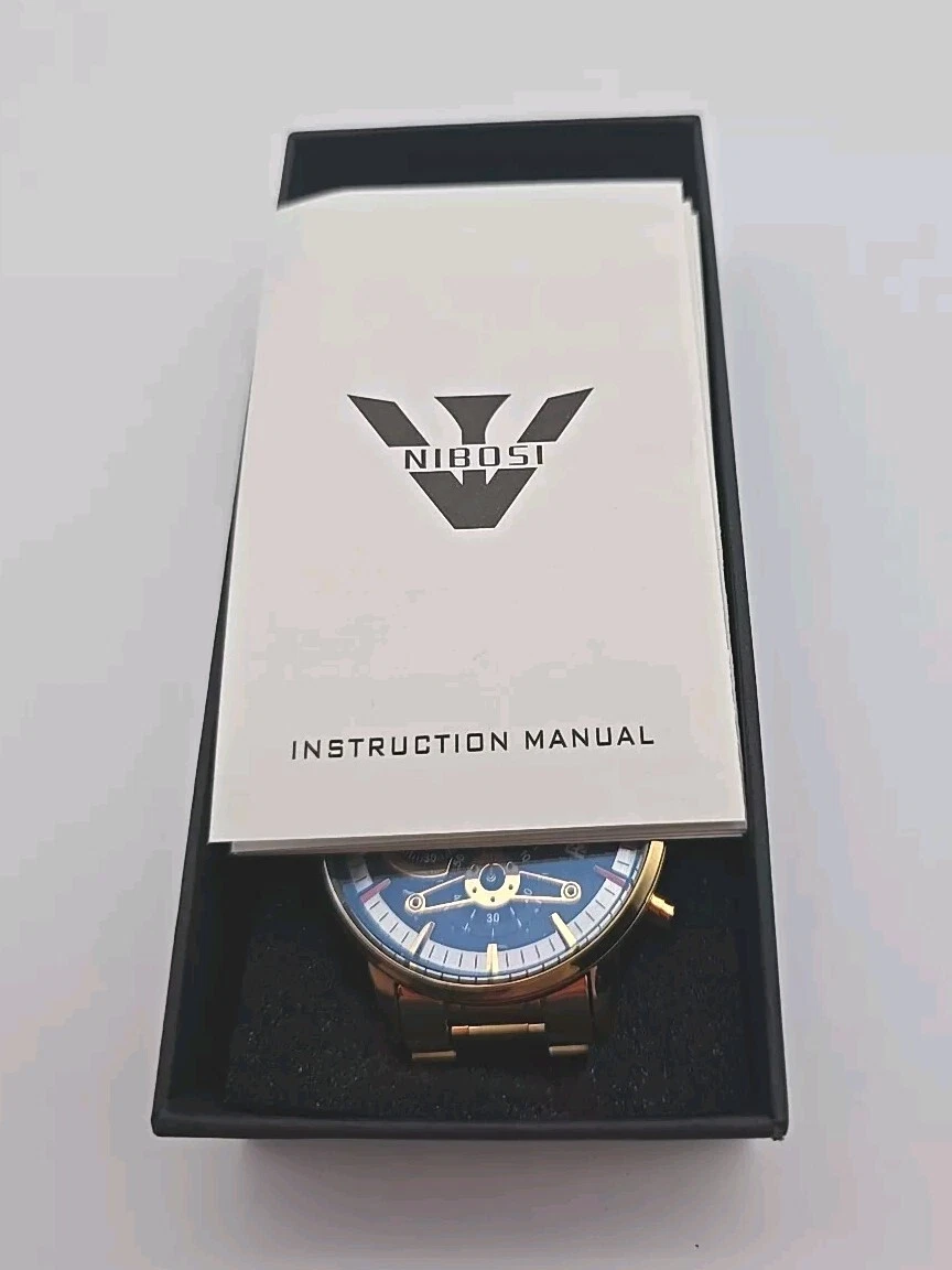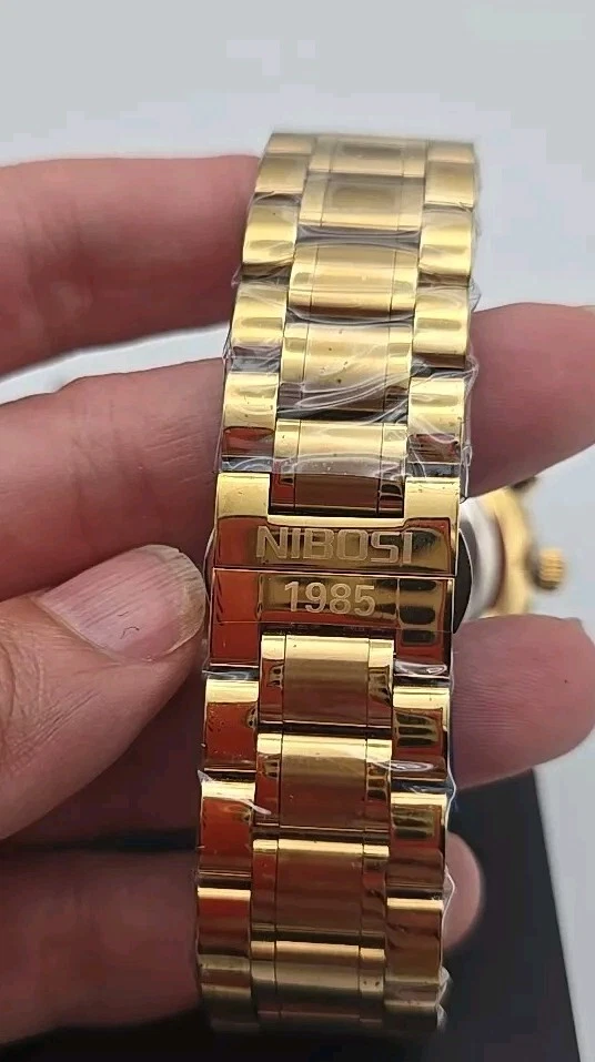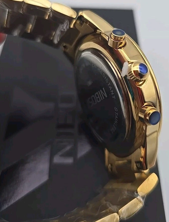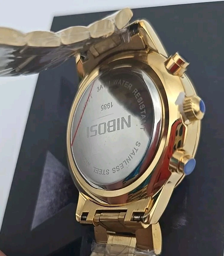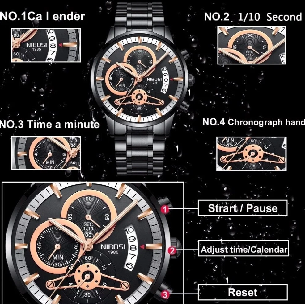 NIBOSI Men's Gold/Black Color Watch Chronograph Waterproof 30M Full Steel Quartz