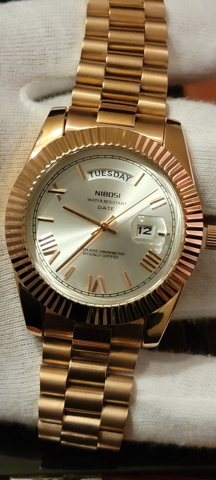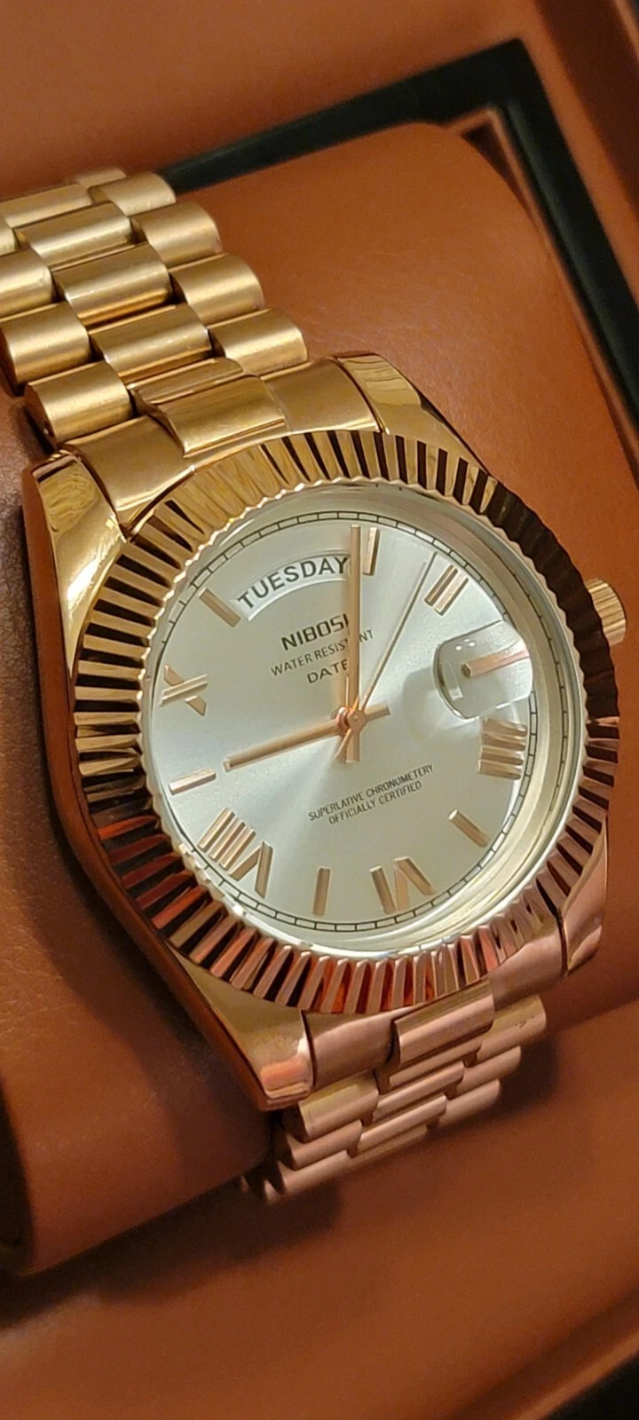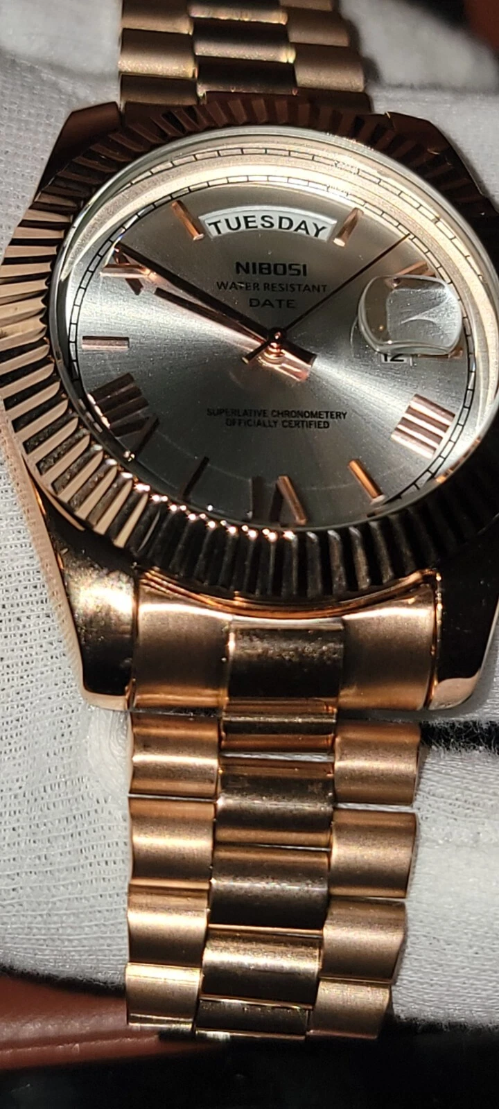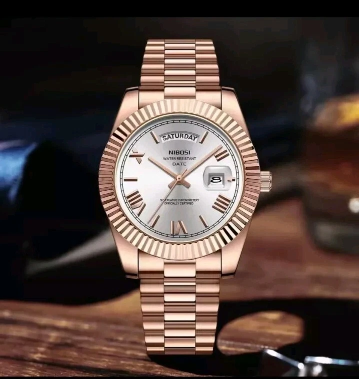Luxury Rose Gold Day Date Pale MINT Chambray Dial Watch 72Hrs Post UK 🇬🇧 STOCK