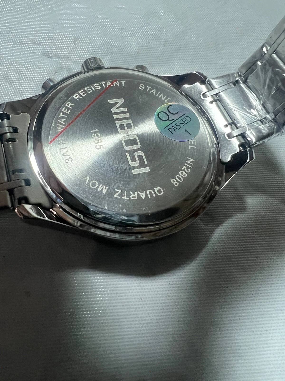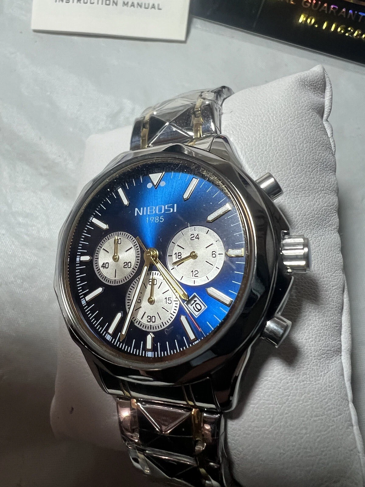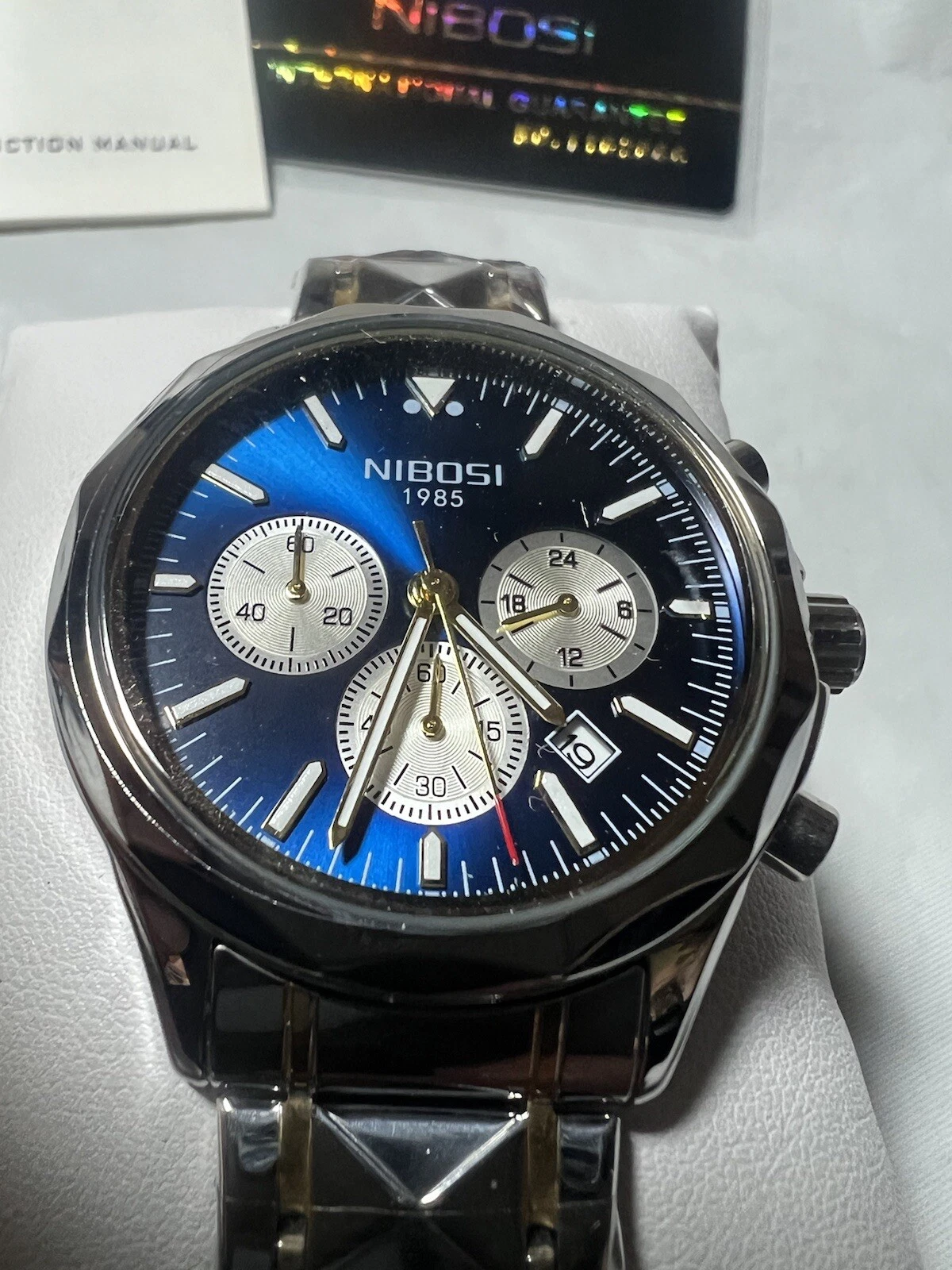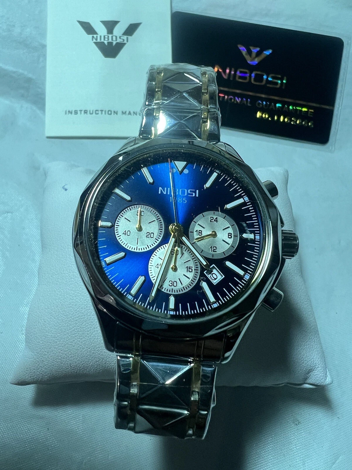 NIBOSI, chronograph date, Beautiful Navy Blue, stainless Steel,44mm,N12608,mens