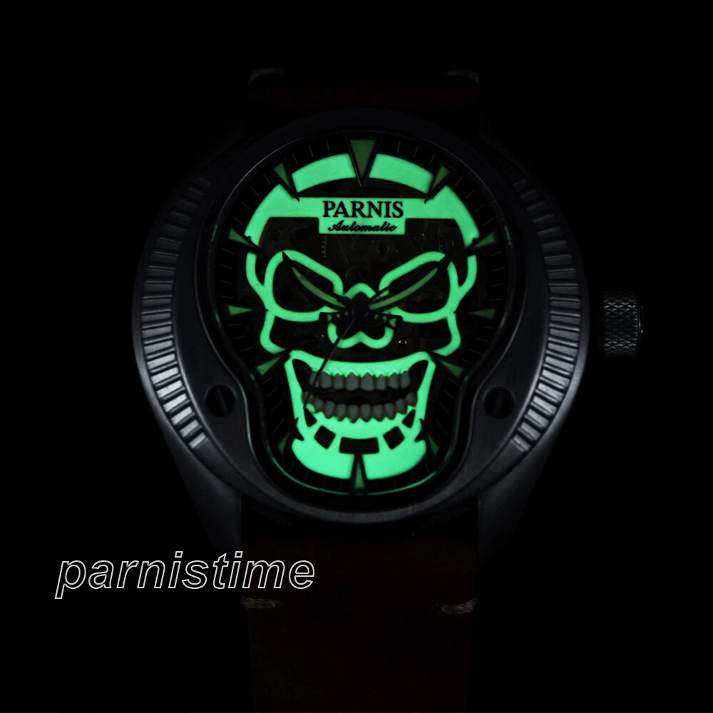 43mm Parnis Skull Dial Miyota Automatic Men's Mechanical Watch Sapphire Crystal
