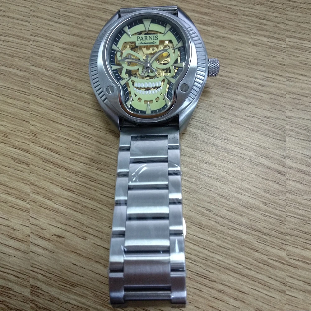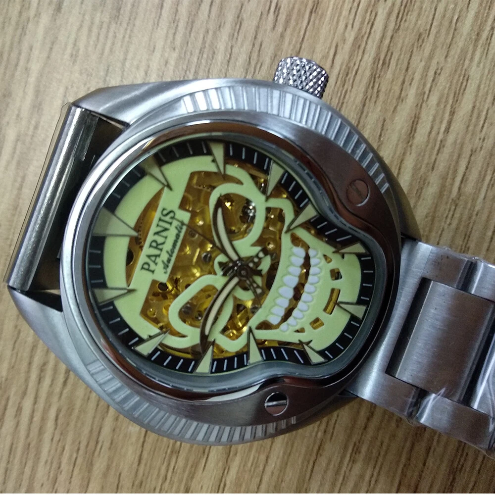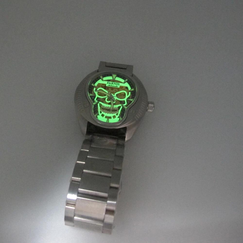 43mm Parnis Sapphire 21 Jewels Miyota 8N24 Automatic Men's Watch Luminous Skull