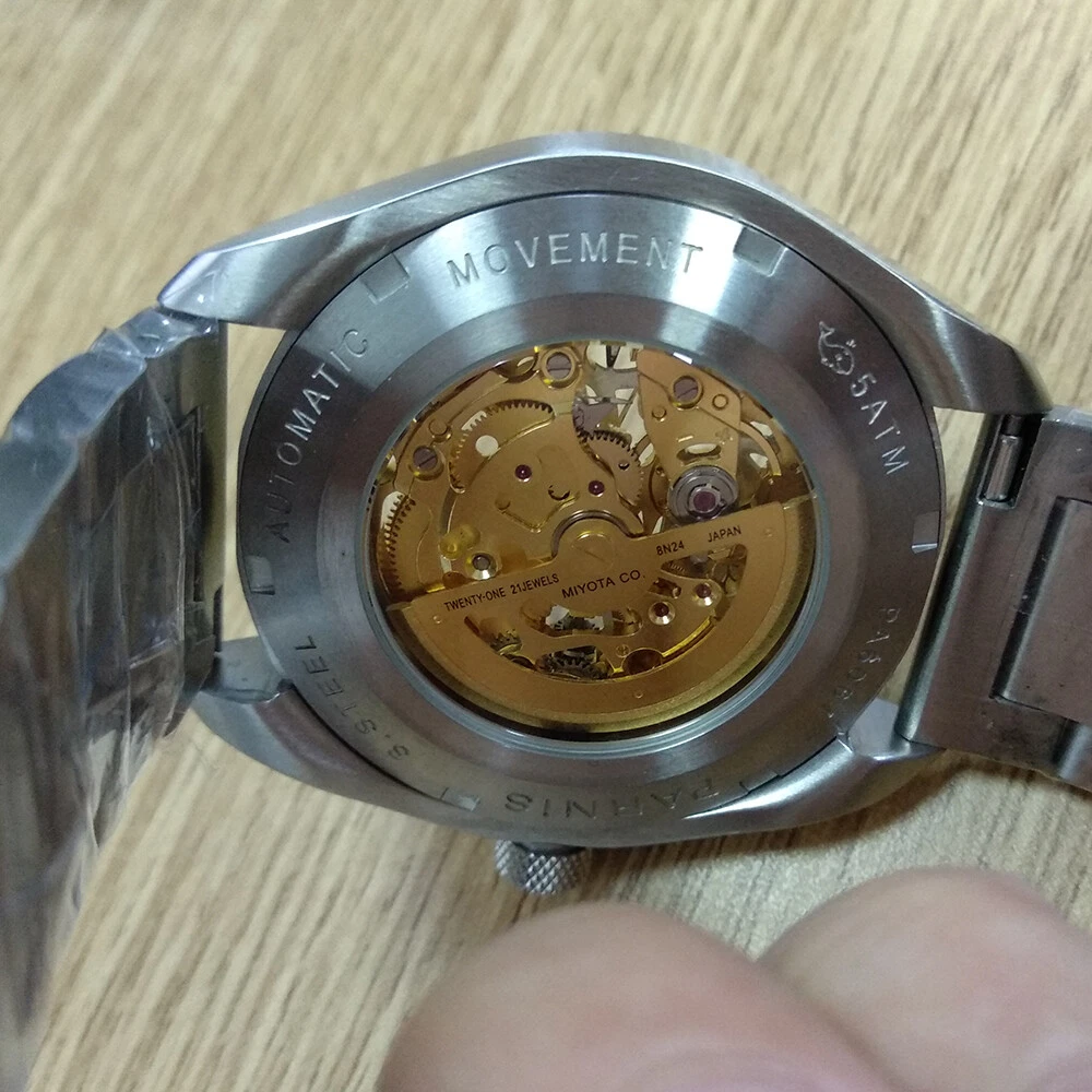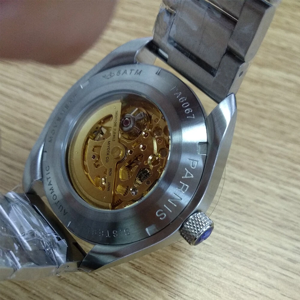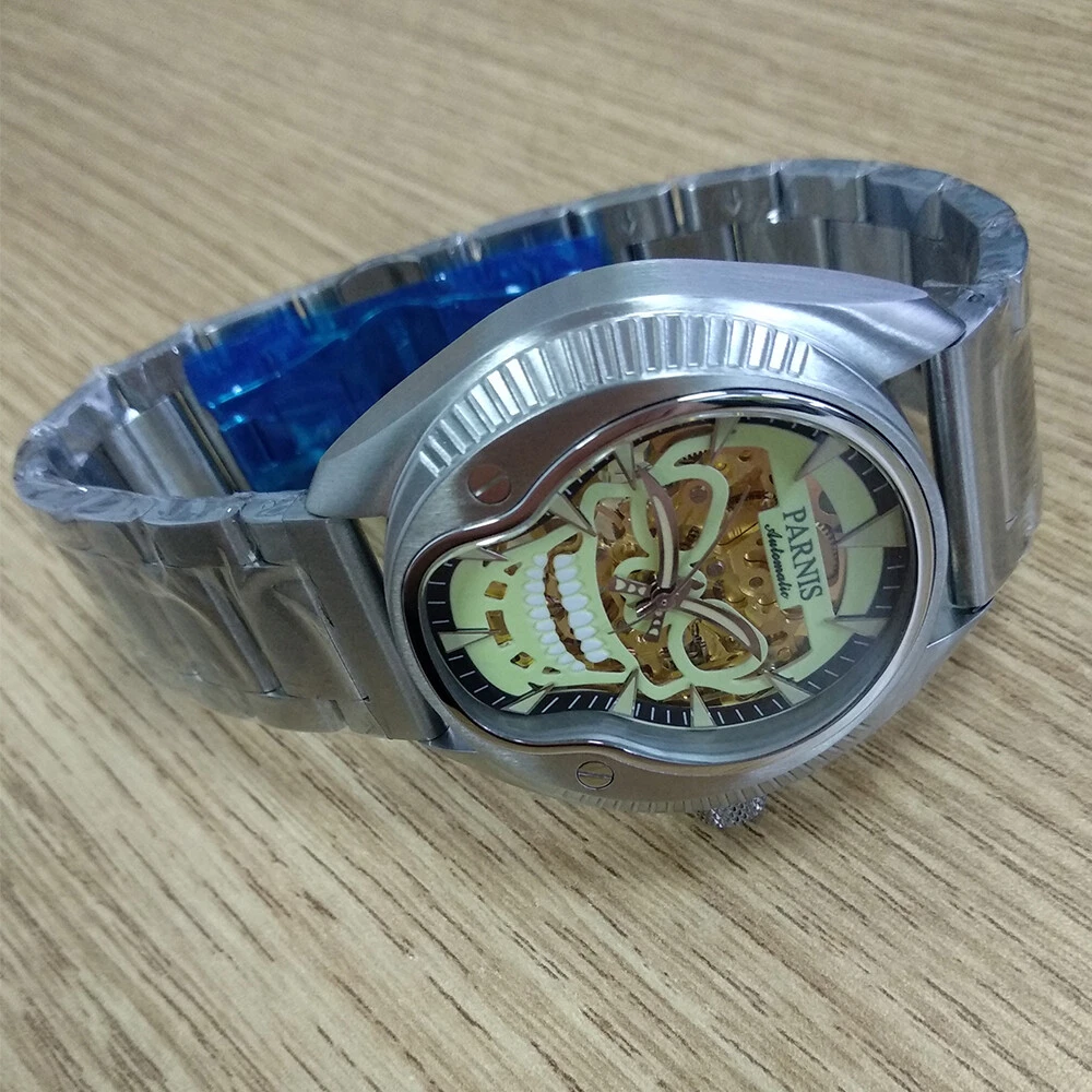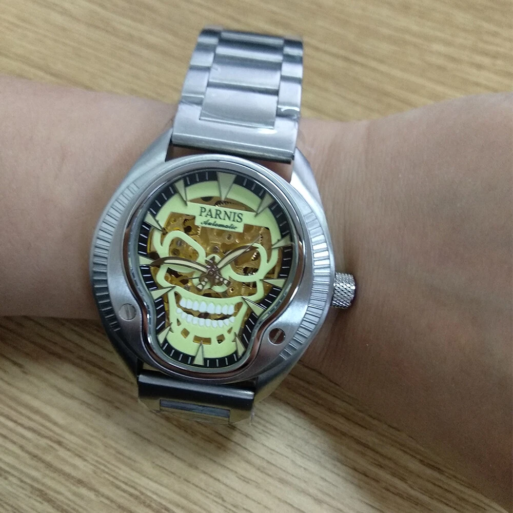 43mm Parnis Sapphire 21 Jewels Miyota 8N24 Automatic Men's Watch Luminous Skull