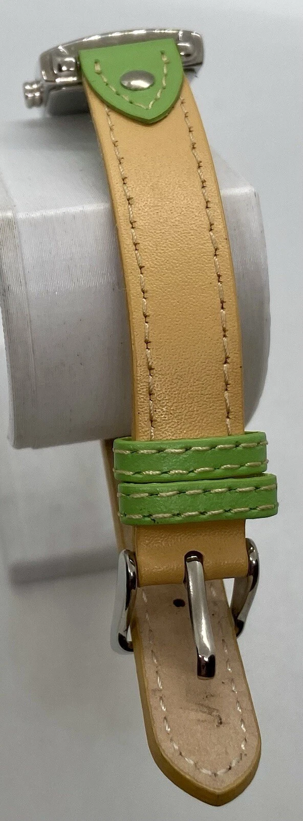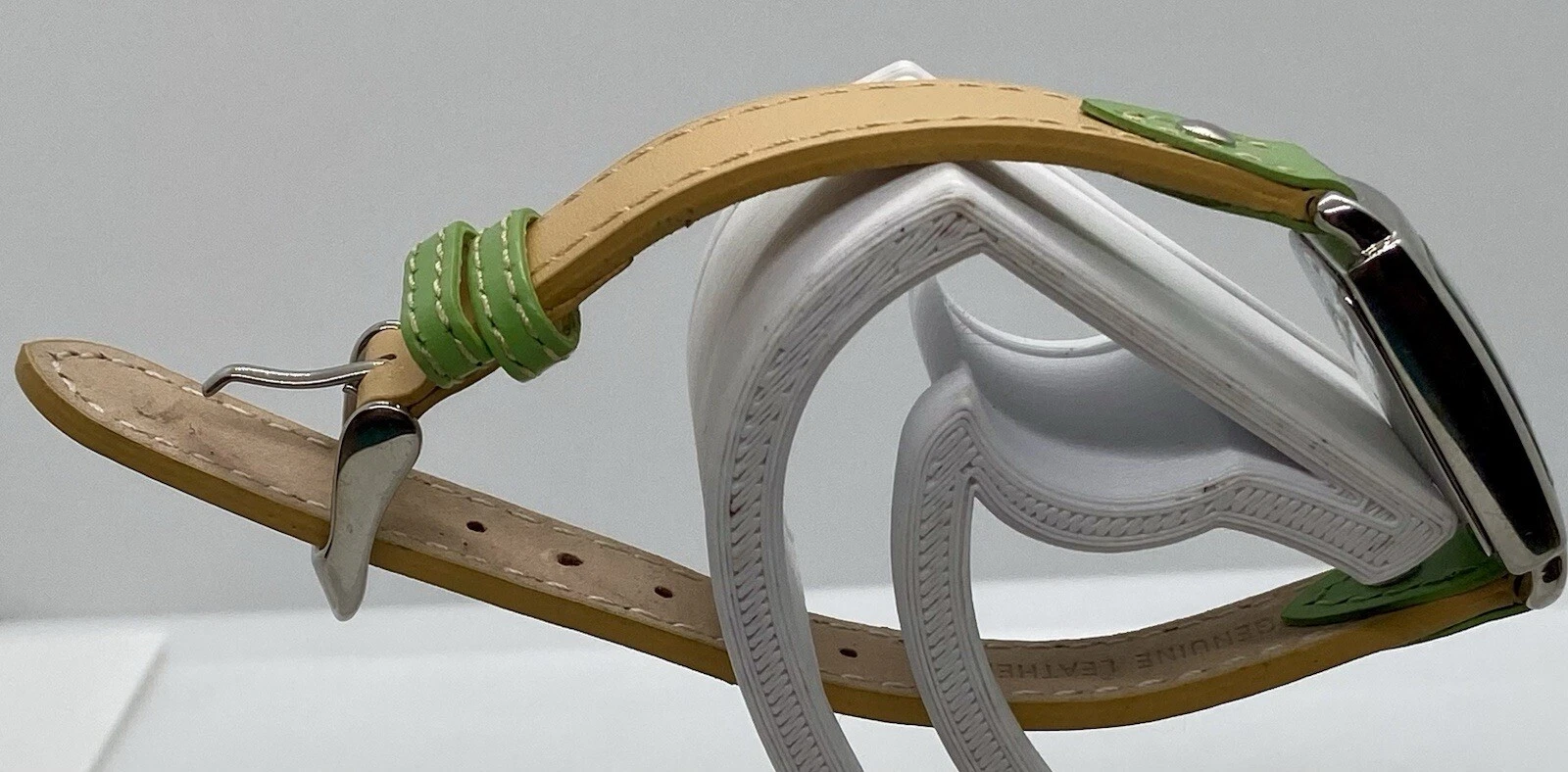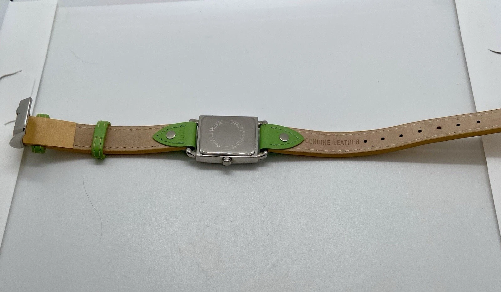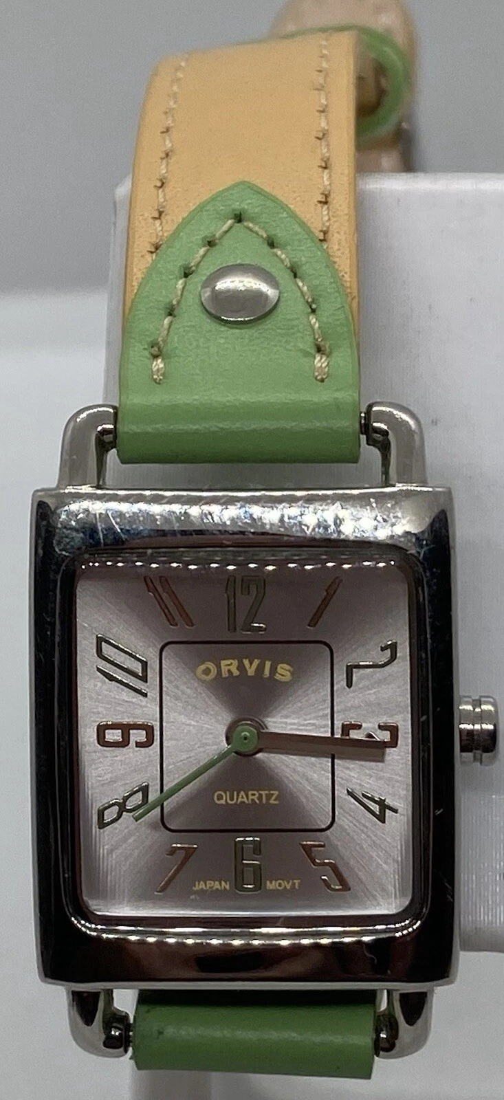 NEW ORVIS Ladies Watch Fresh Battery  Green/Gold Leather Silver Rectangle WR3ATM