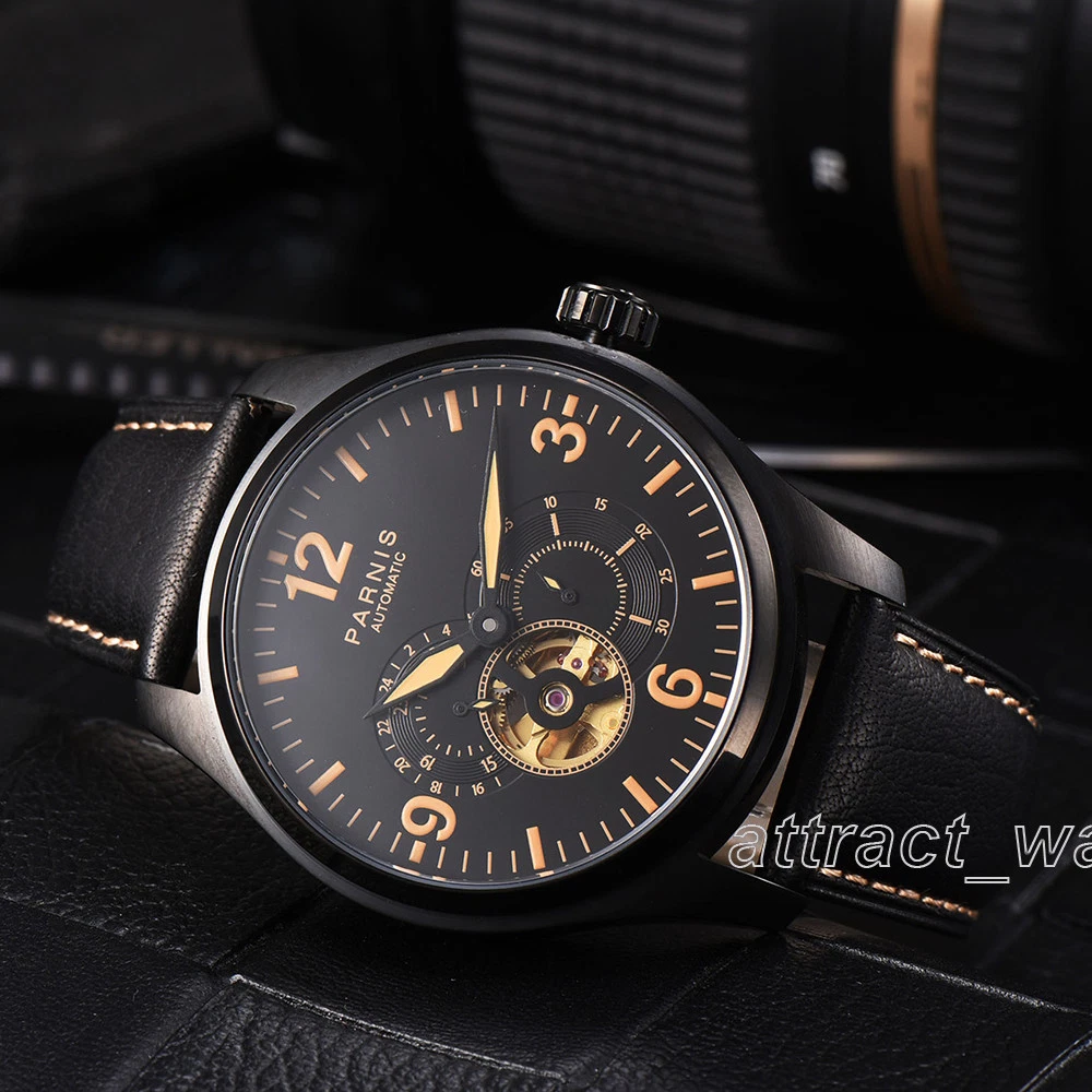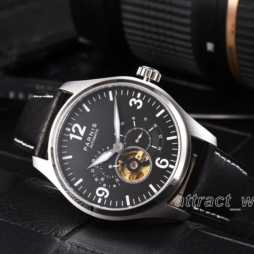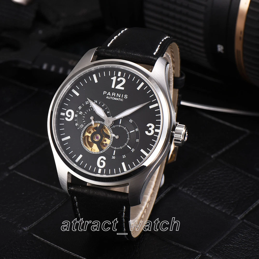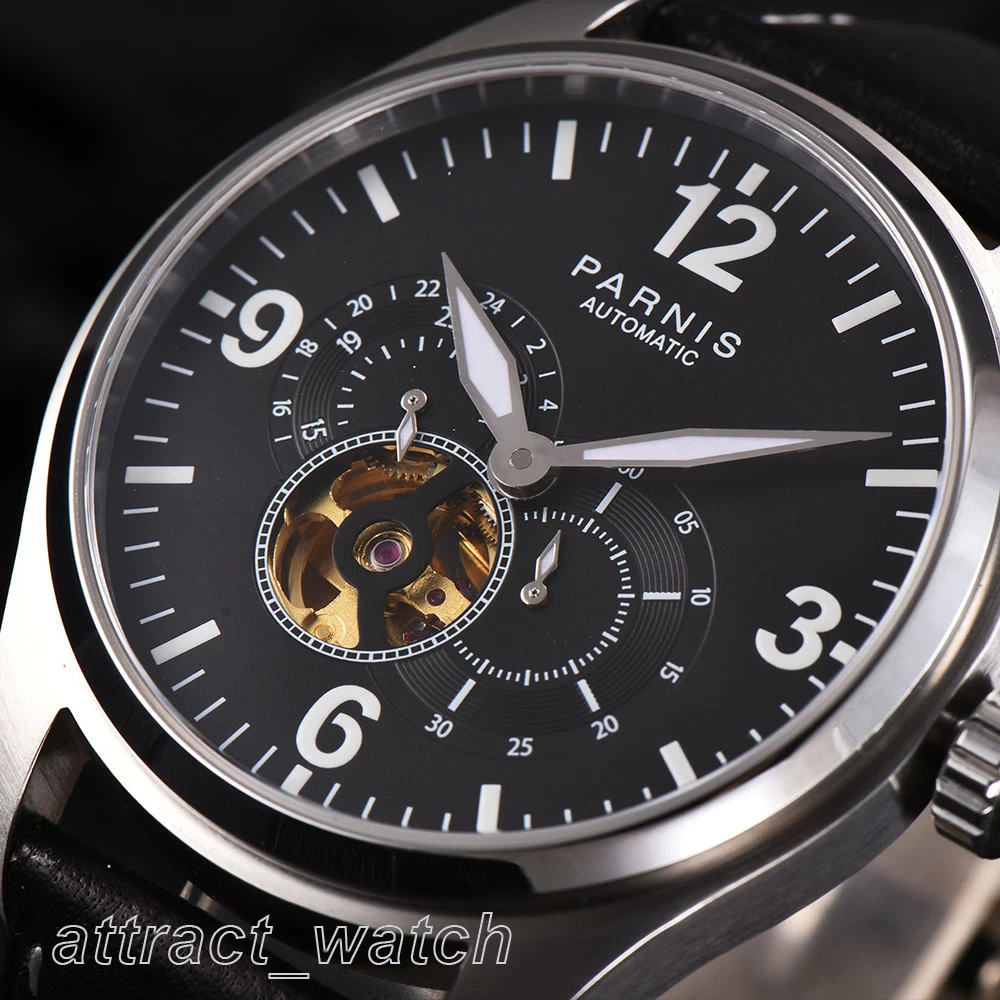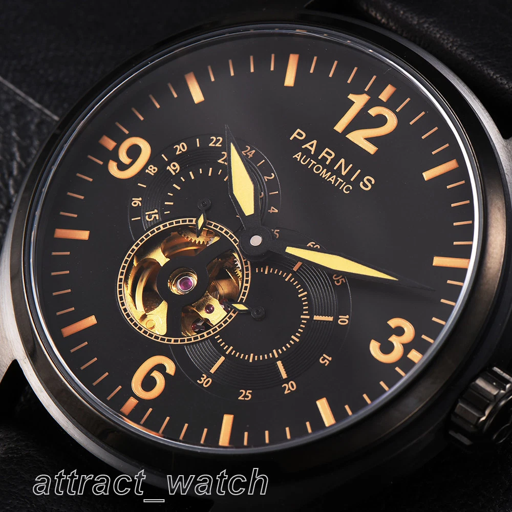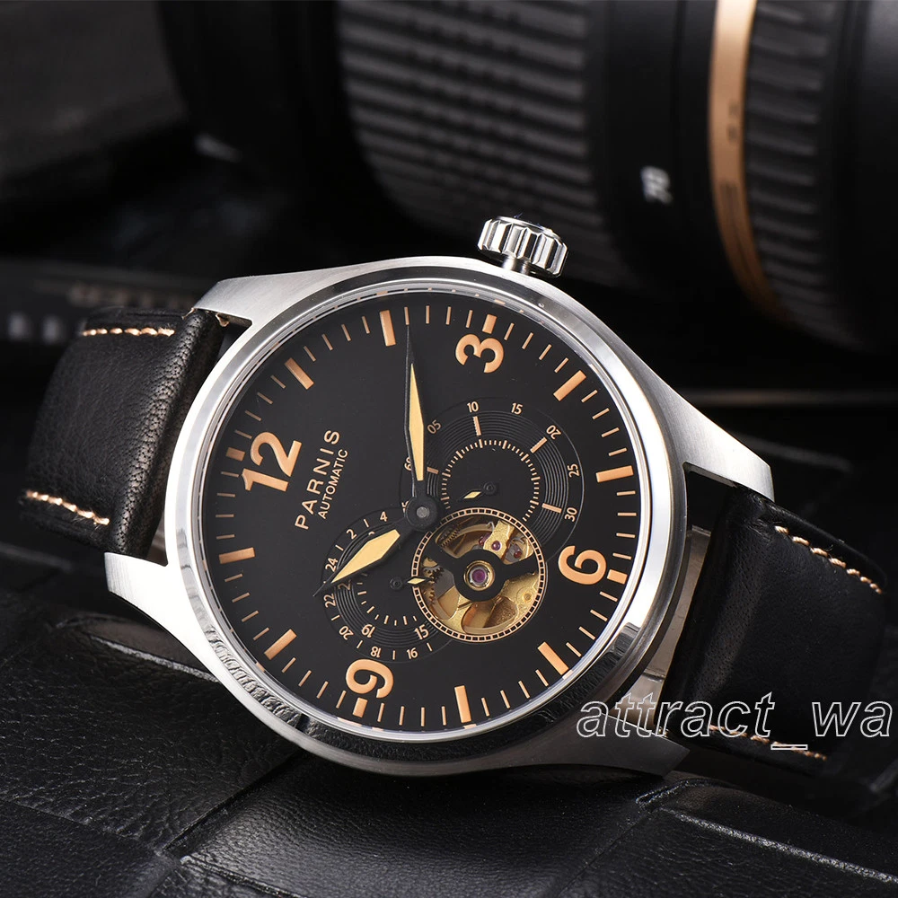44mm Parnis Miyota Automatic Men's Mechnical Watch 24-hour Dial Sapphire Crystal