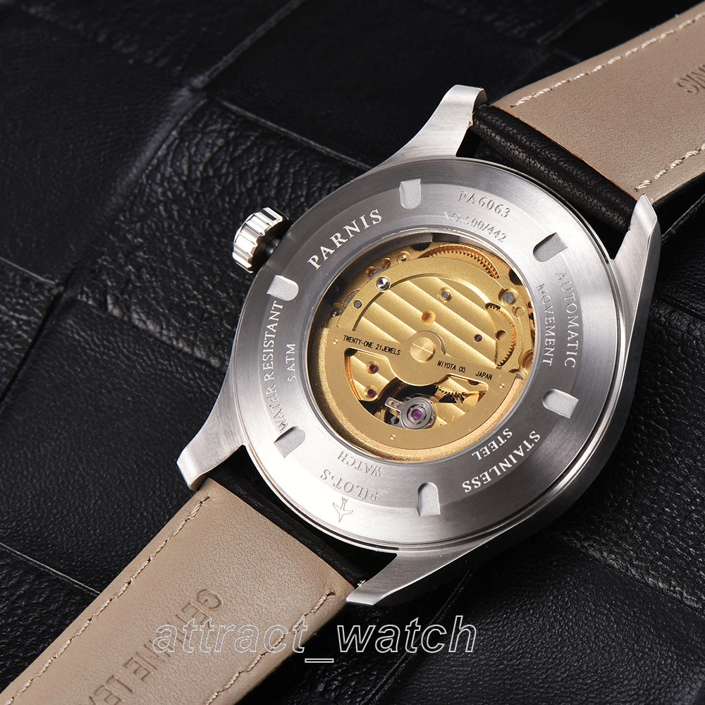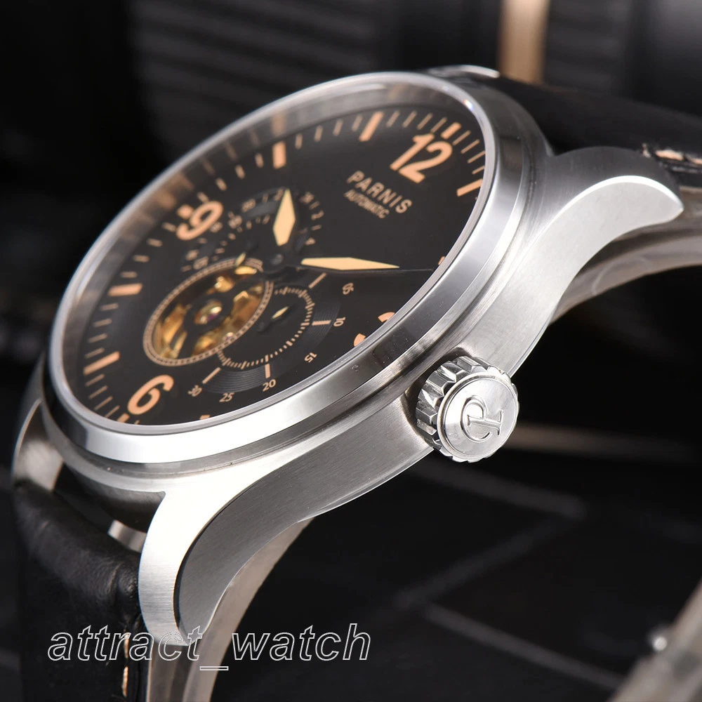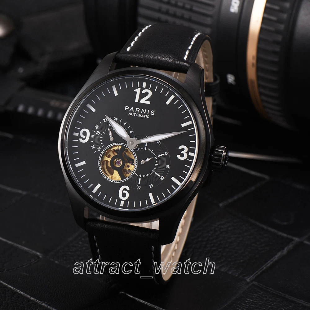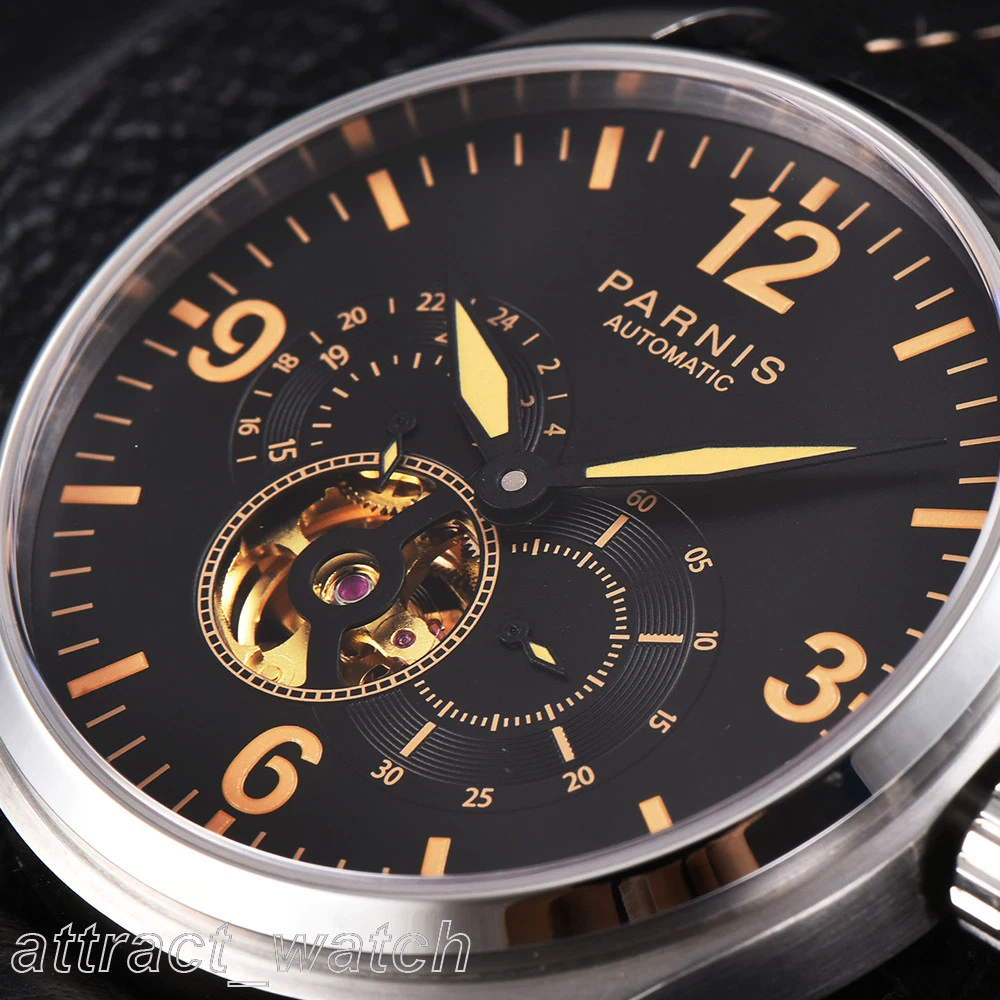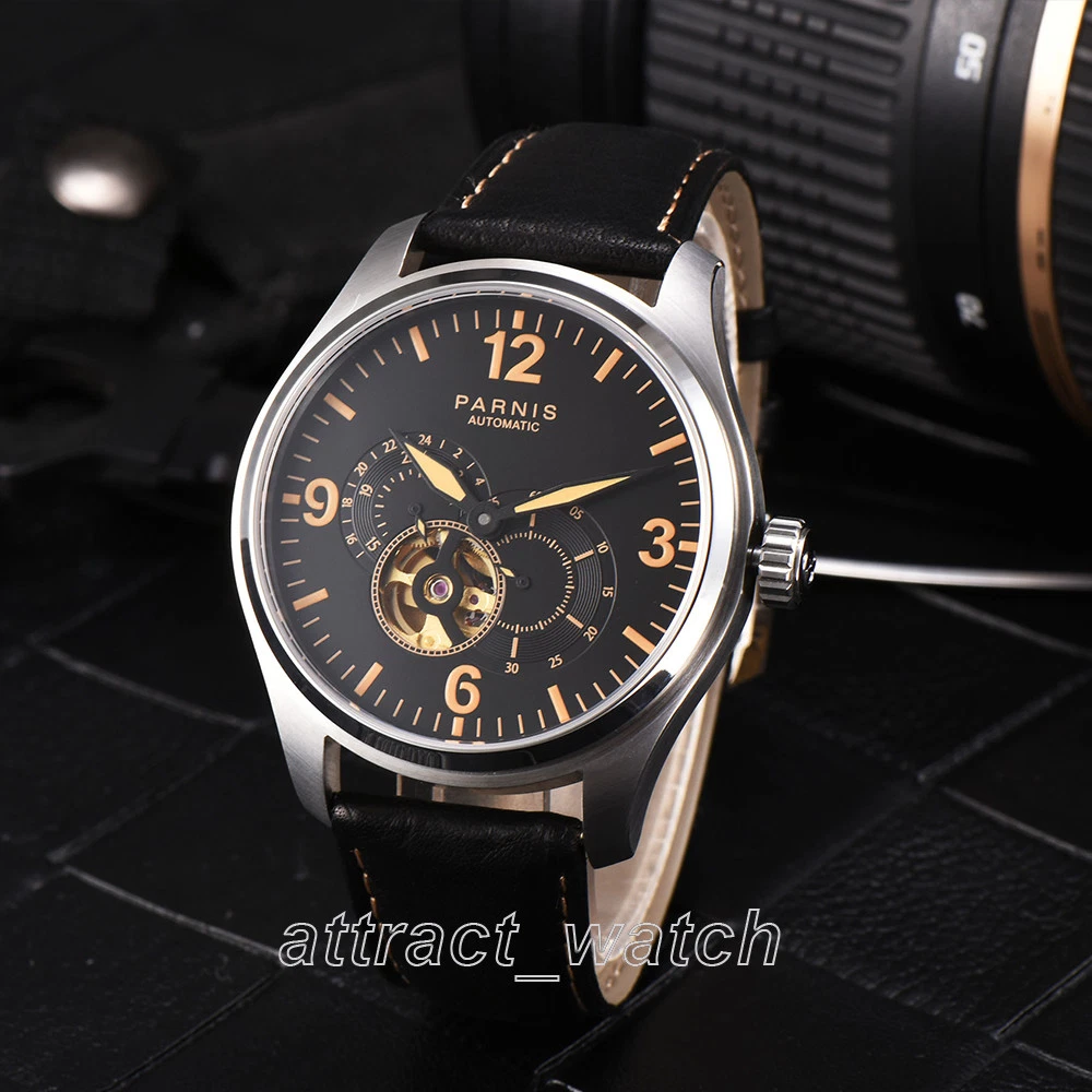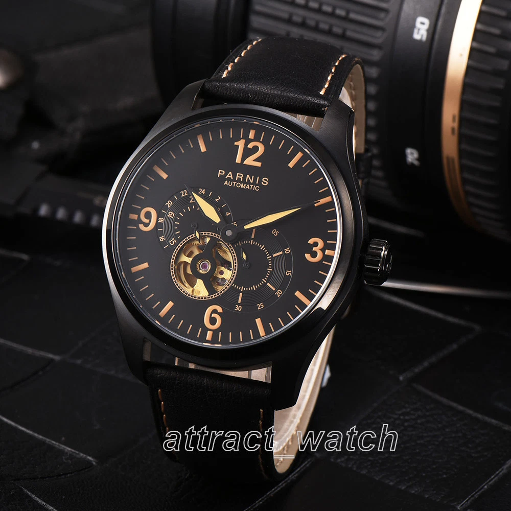 44mm Parnis Miyota Automatic Men's Mechnical Watch 24-hour Dial Sapphire Crystal