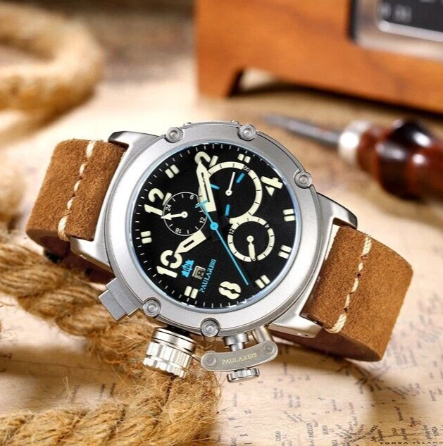 PAULAREIS Military Mechanical Automatic Leather Watch Men's 30M Waterproof Diver