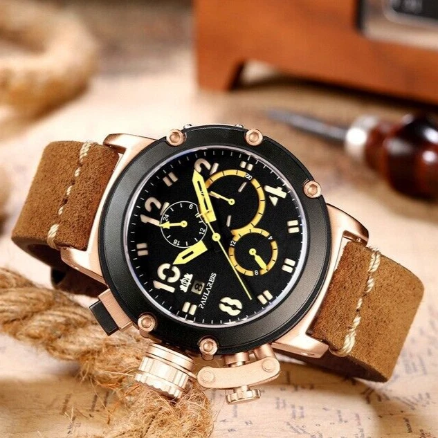 PAULAREIS Military Mechanical Automatic Leather Watch Men's 30M Waterproof Diver