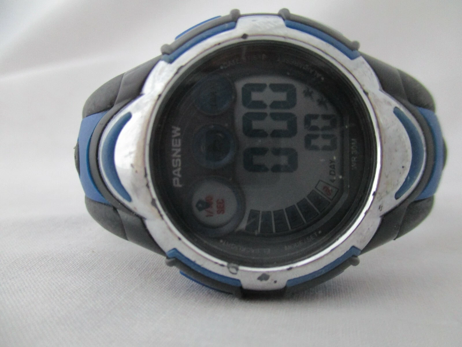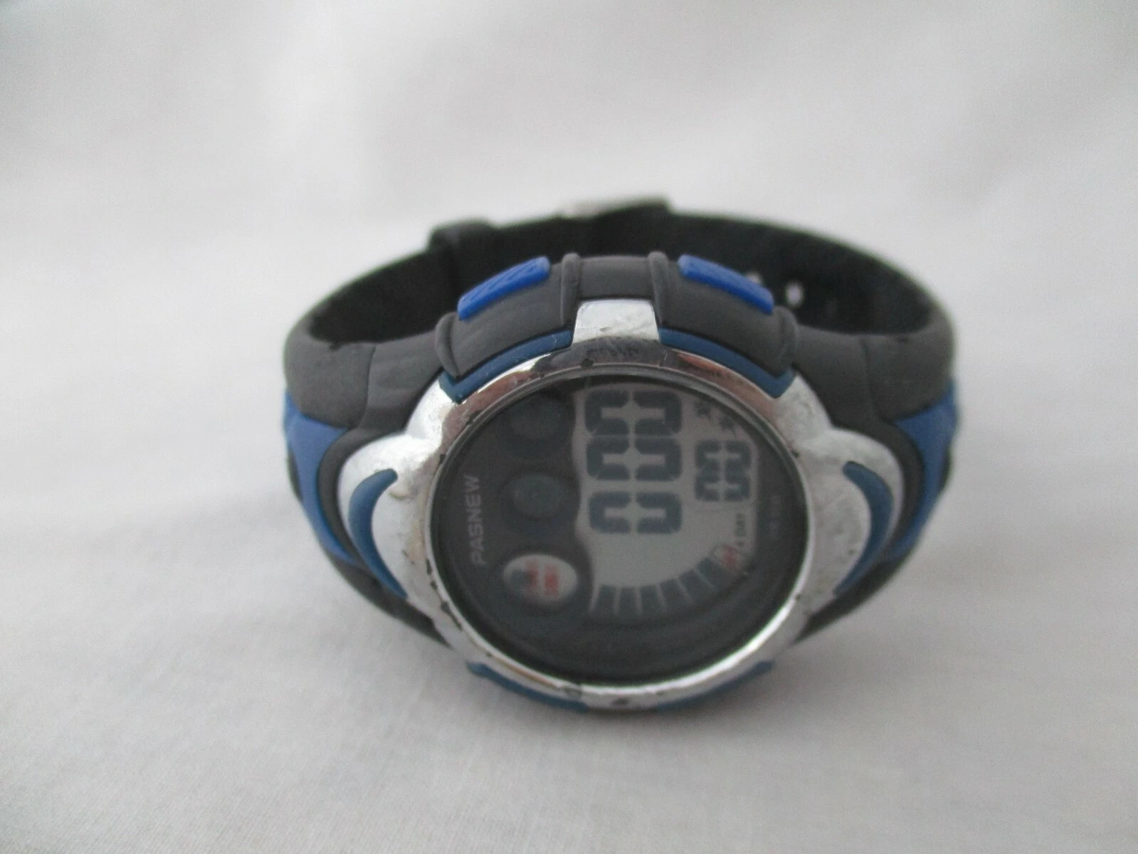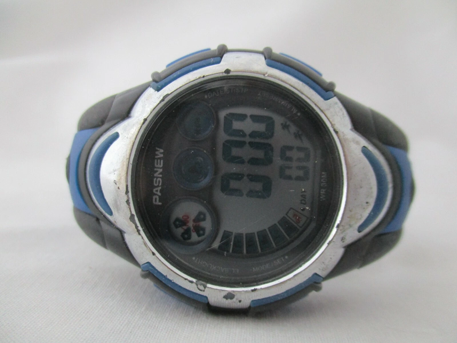 Pasnew Unisex Black Blue Buckle Band Watch Digital WR 30M