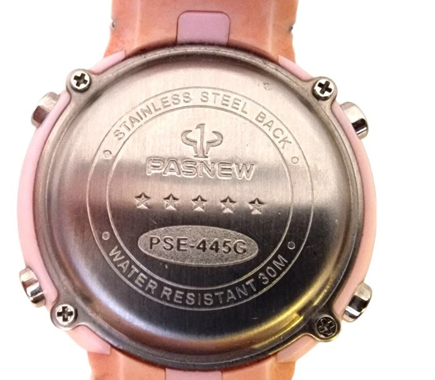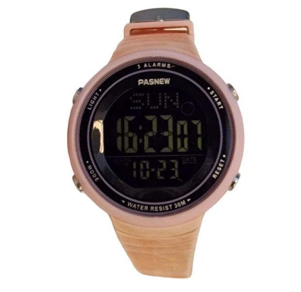 Pasnew Women 30m Pink Reverse LCD Digital Alarm Chrono Watch