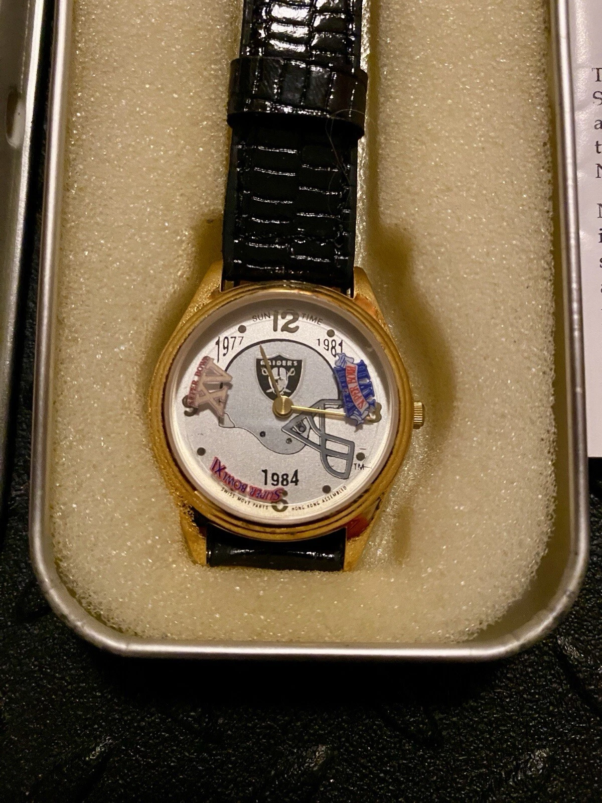 Sun Time Vintage Oakland LA Raiders NFL Super Bowl Watch With Collectible Tin