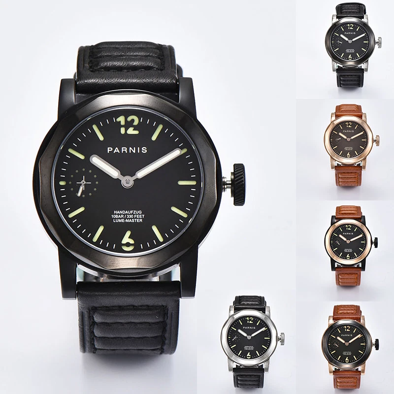 44mm Parnis Hand Winding Sapphire Glass Men Mechanical Watch Lume Master 10BAR