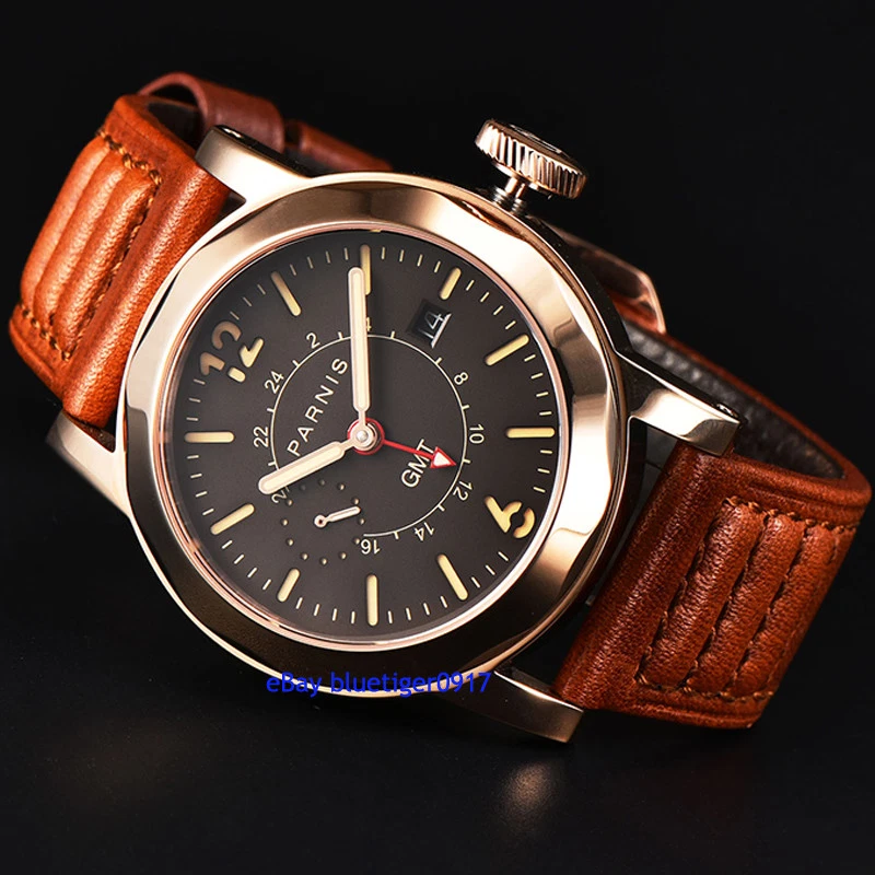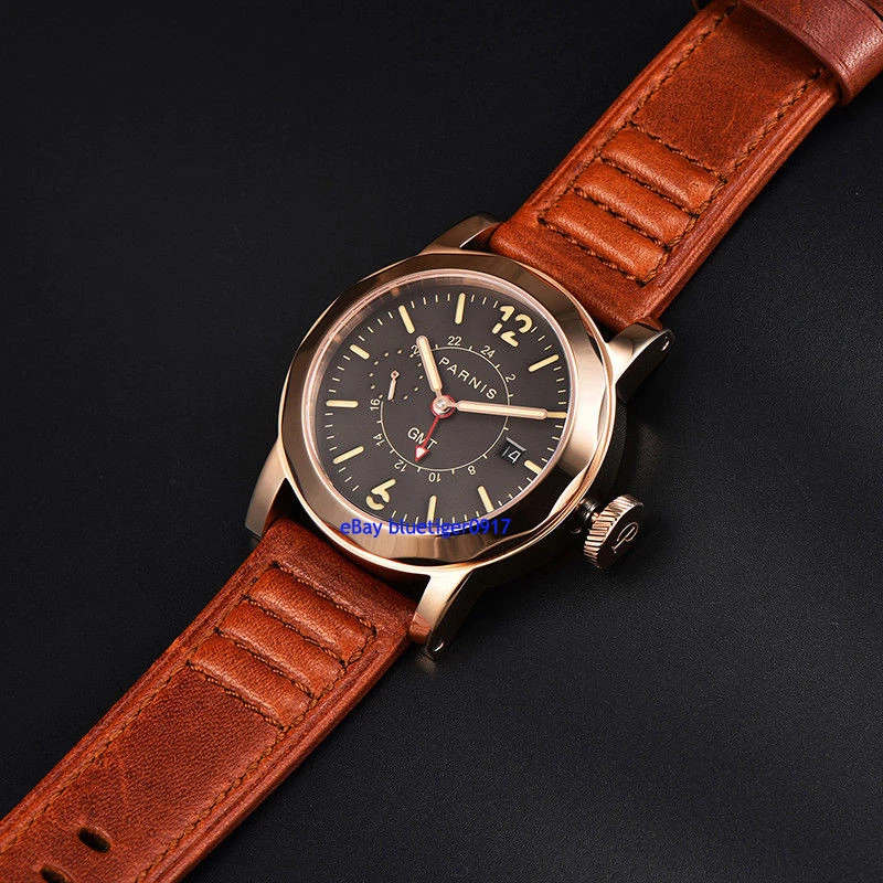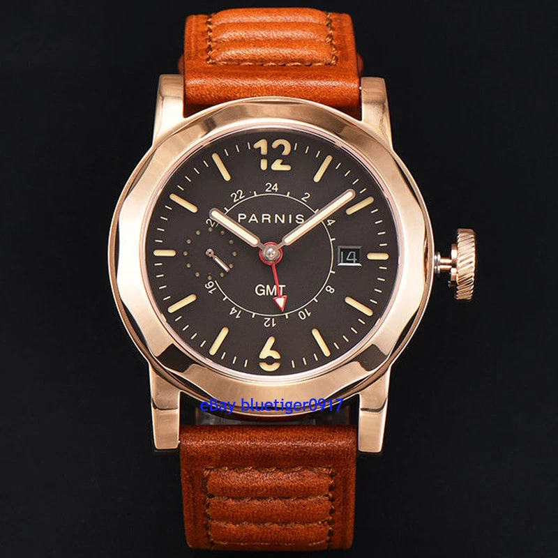 Sapphire Glass Parnis Men's Gents 44mm Automatic Date Window Movement GMT Watch
