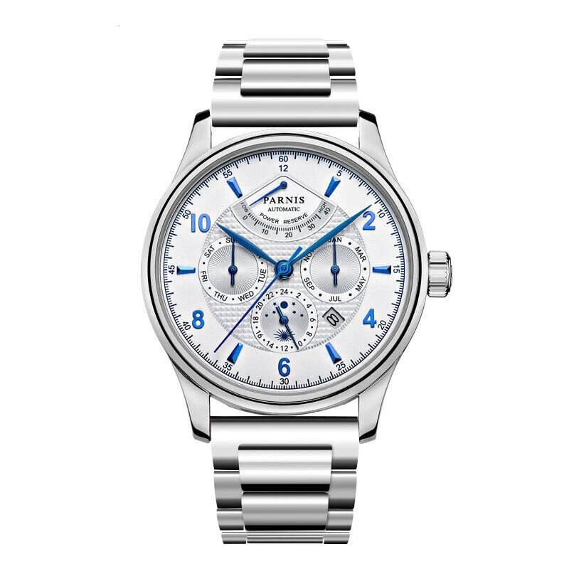 Miyota 9100 Movement Sapphire Glass 43mm PARNIS Power Reserve Automatic Watch