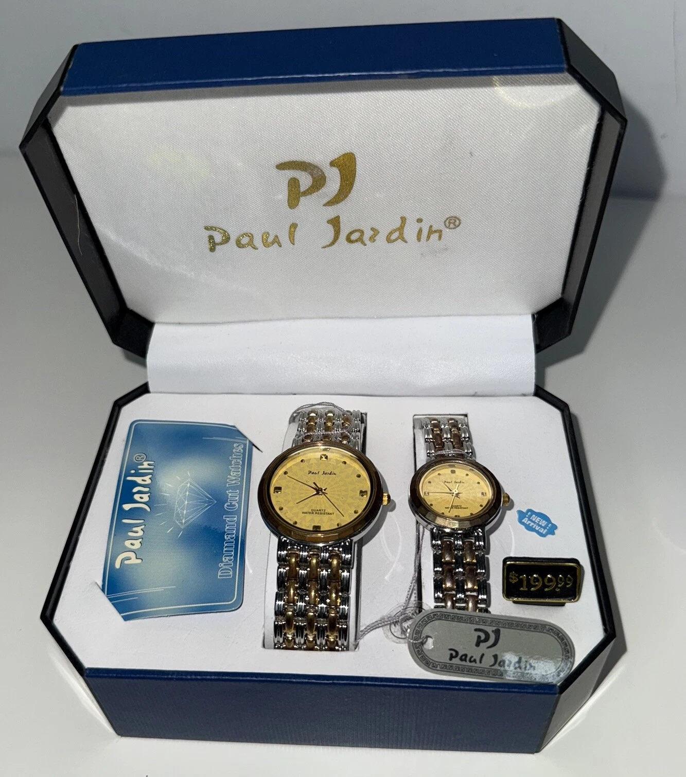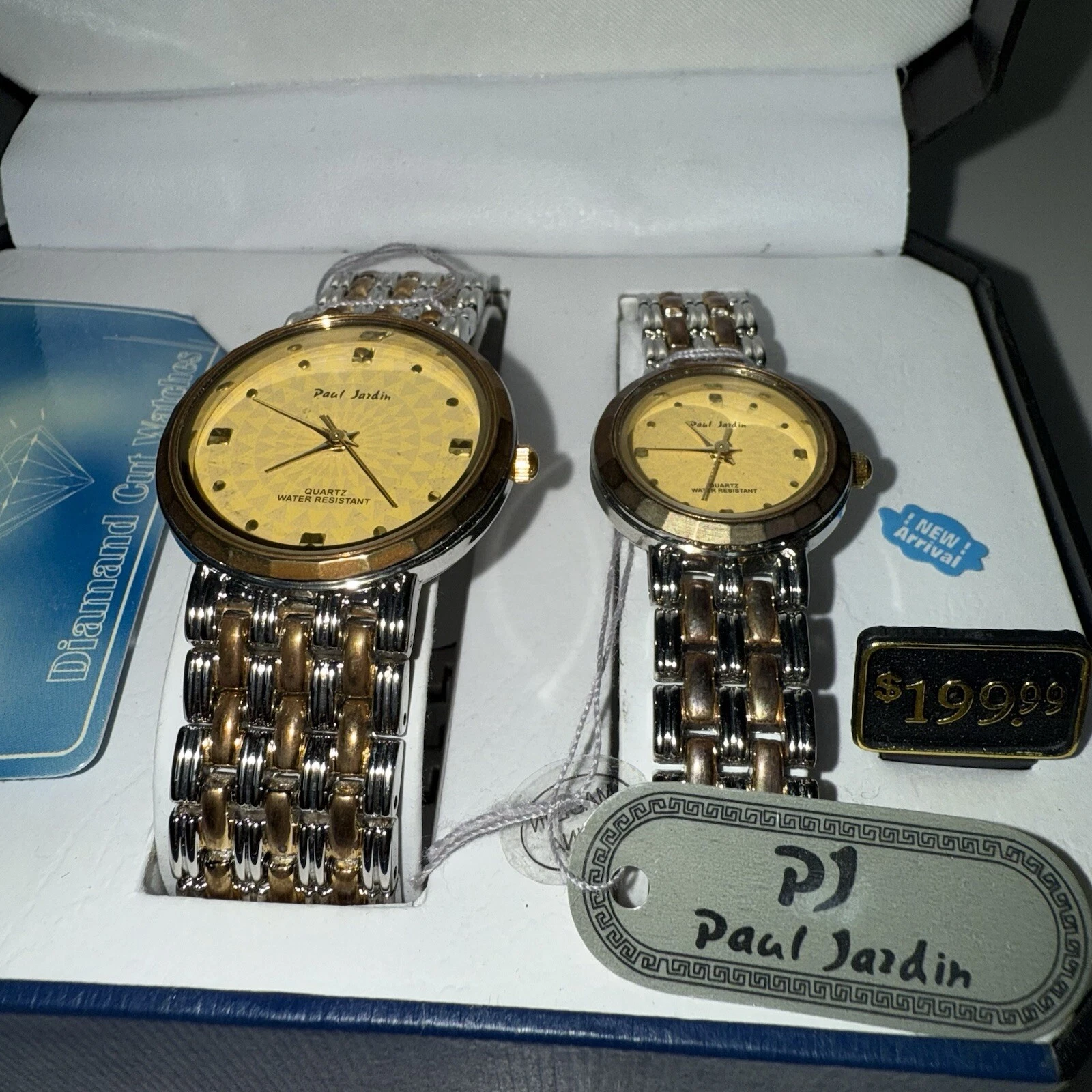 Paul Jardin His And Hers Watch Set Gold Diamond Cut Mens Womens Need Batteries