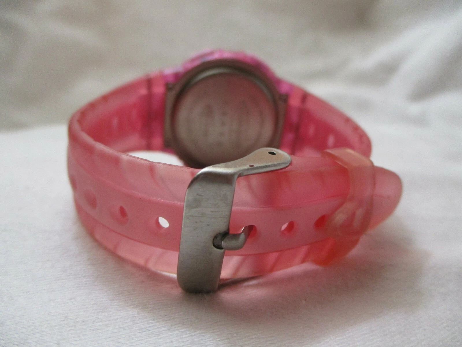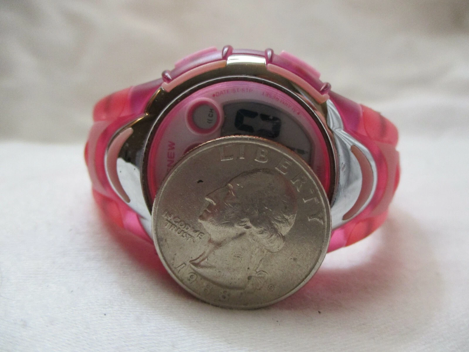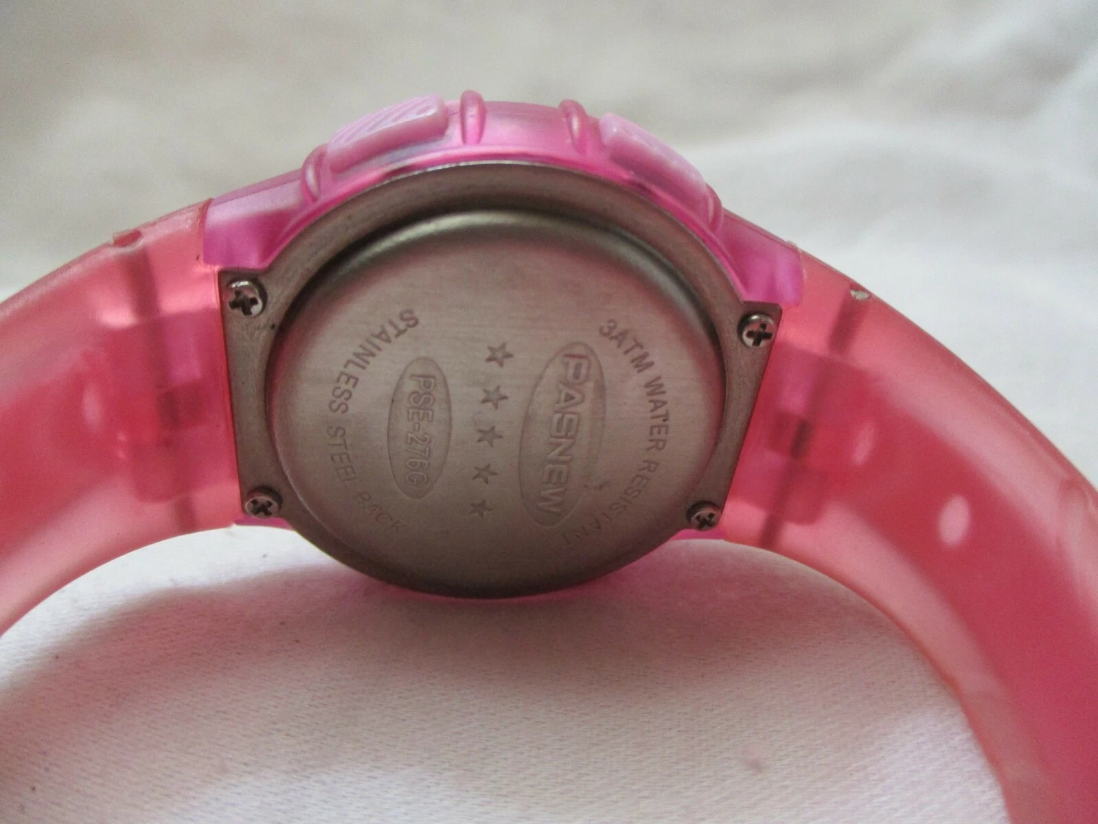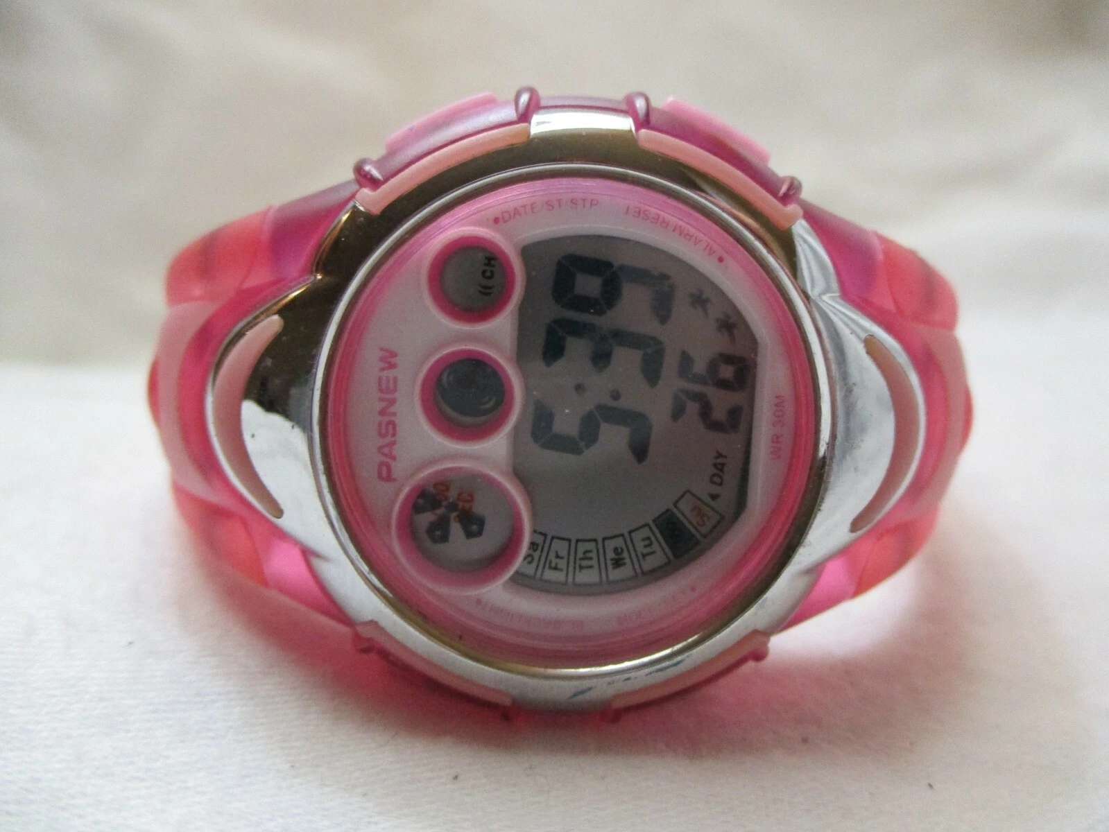 Pasnew Digital Wristwatch Pink Buckle Band Silver Tone WR 30M